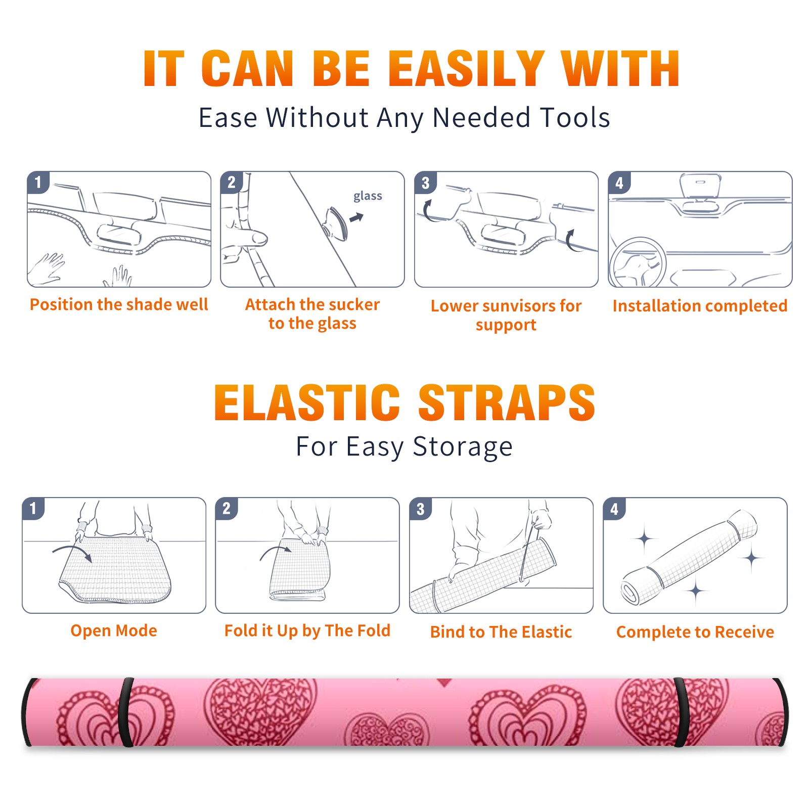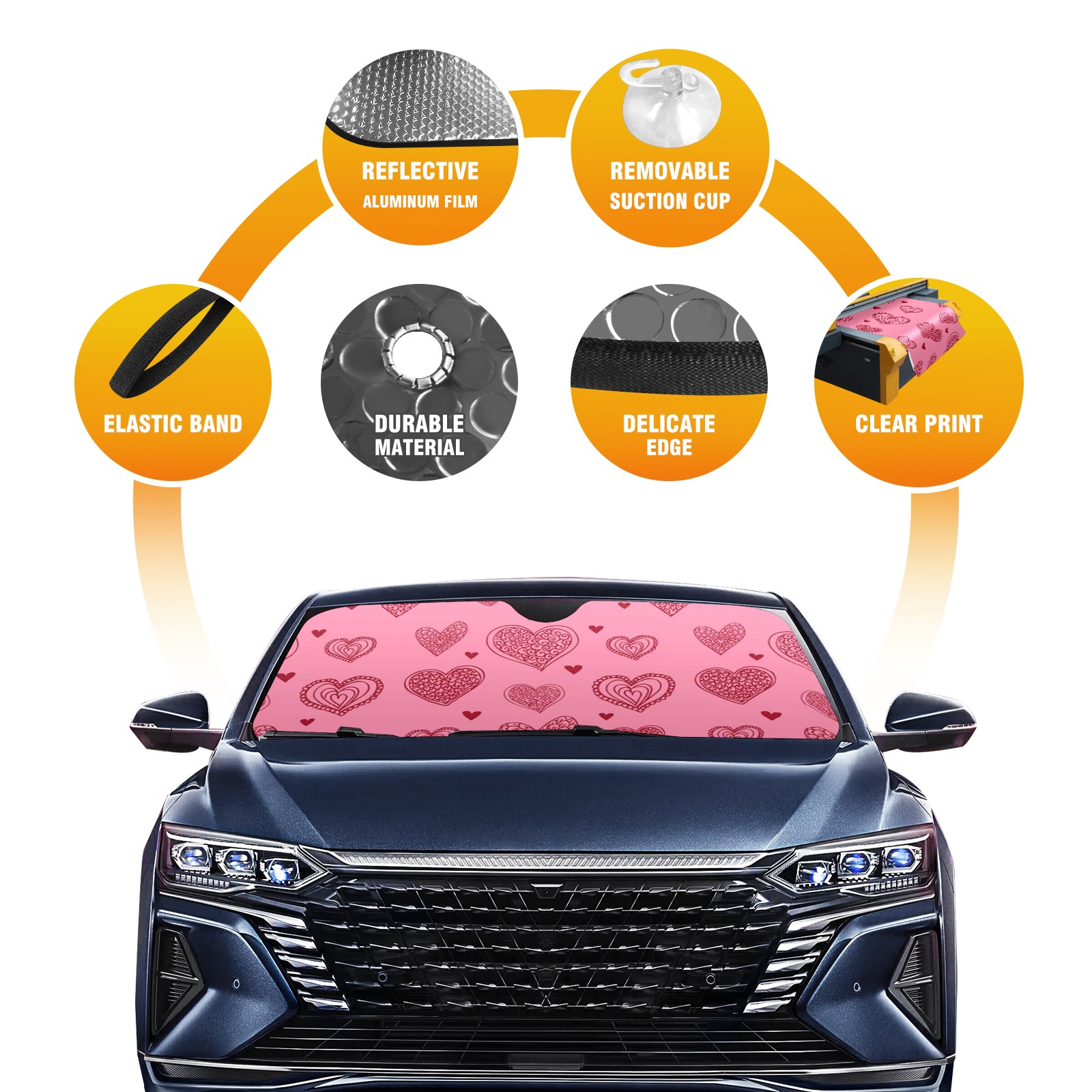 Car Windshield Sun Shade for Front Window Love Foldable Vehicle Windshield Car Sun Visor Covers Automotive Window Protector Car Camping Privacy Sun Blocker