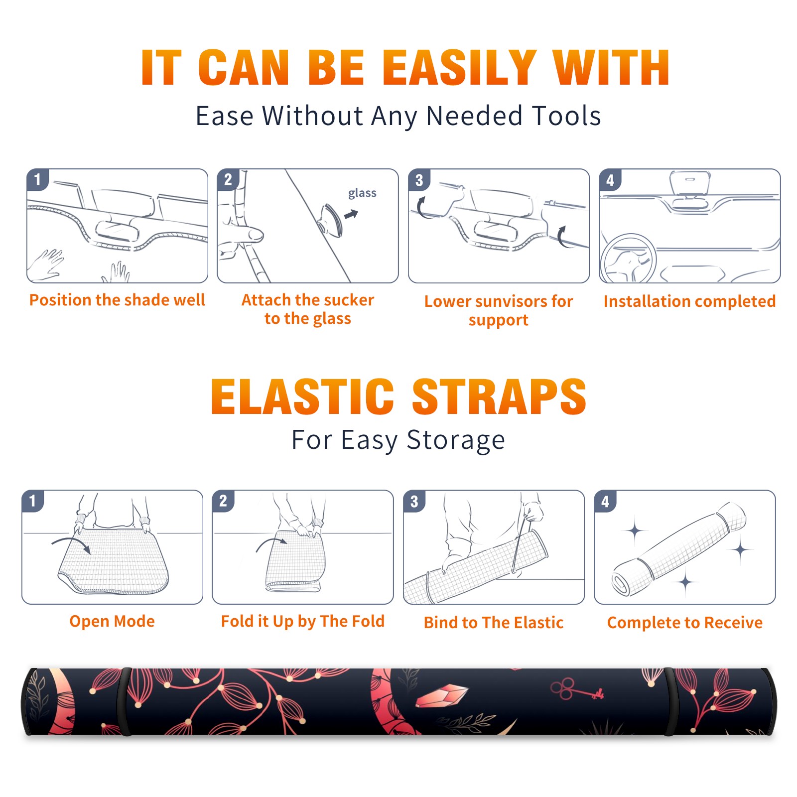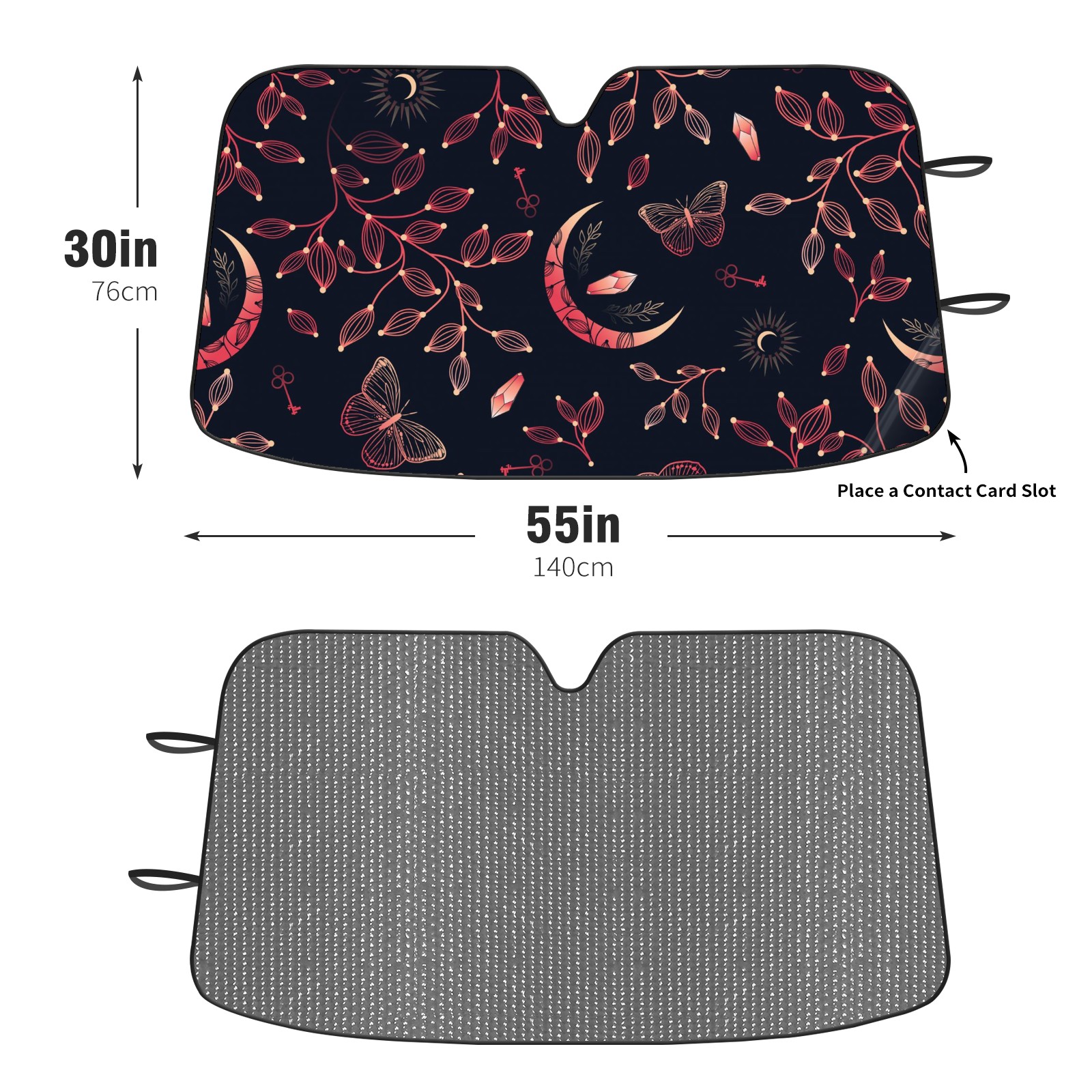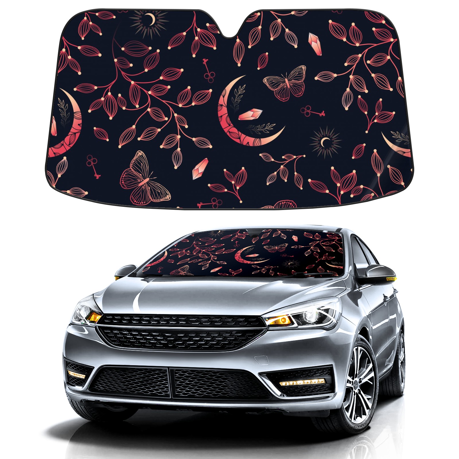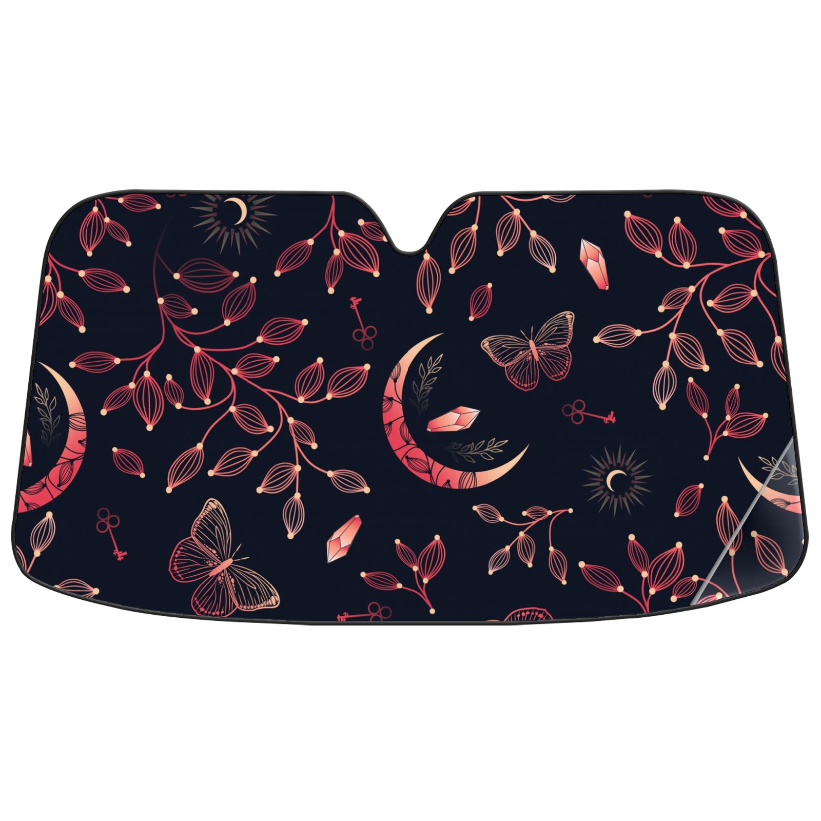 Car Windshield Sun Shade for Front Window Red Moon Butterfly Leaves Foldable Vehicle Windshield Car Sun Visor Covers Automotive Window Protector Car Camping Privacy Sun Blocker