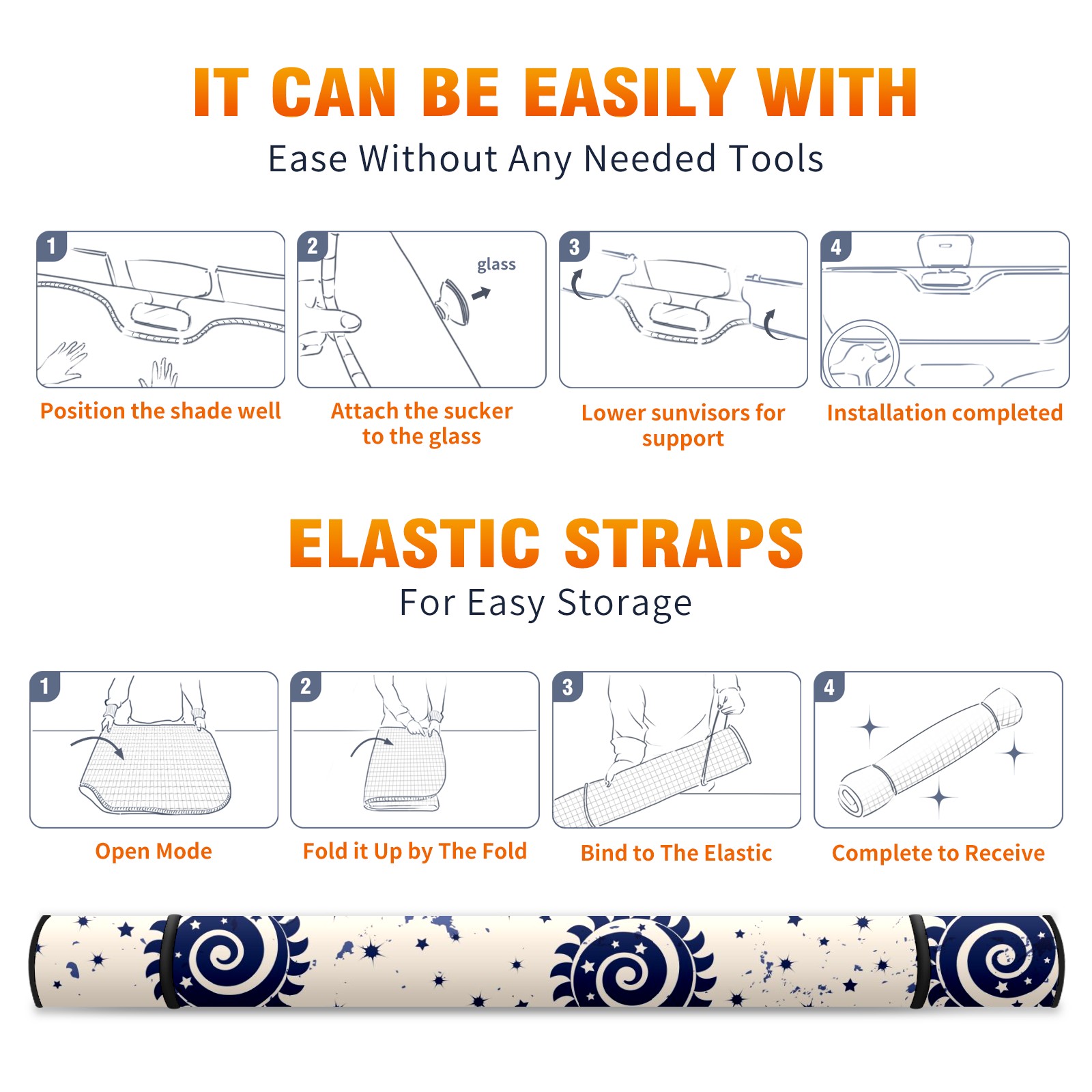 Diameter /Size 63"L x 33.5"W</b><br> Made from excellent materials which makes it sturdy and protects the car from the sun. Easy to use and pack. Makes the interior of the car cooler.You can easily stash the sunshade in the storage bag or store long term.It open and closes easy. Also the leather storage bag is durable and easy to put the umbrella back into.This windshield sunshade provides complete coverage and keeps your car interior cool under direct sun. It is easy to open and position under the windshield and around the rear-view mirror. Makes Your Car Easy To Identify, Perfect For Finding Your Car In Crowded Parking Lots And Garages.Great Choice: It Is A Great Gift For Dad, Boyfriend, Brother, Brother And Uncle, Friends, Classmates, Family And So On.<br> Notice:</b><br> Due To Difference Computer Monitors, The Color Maybe Slightly Different From Picture. As Different Measurement Methods, Measurement Data Will Float Within 2%.I Hope You Understand.<br> If You Have Any Question About The Item Please Do Not Hesitate To Contact Us Immediately And We Will Give You A Satisfactory Reply Within 24 Hours.