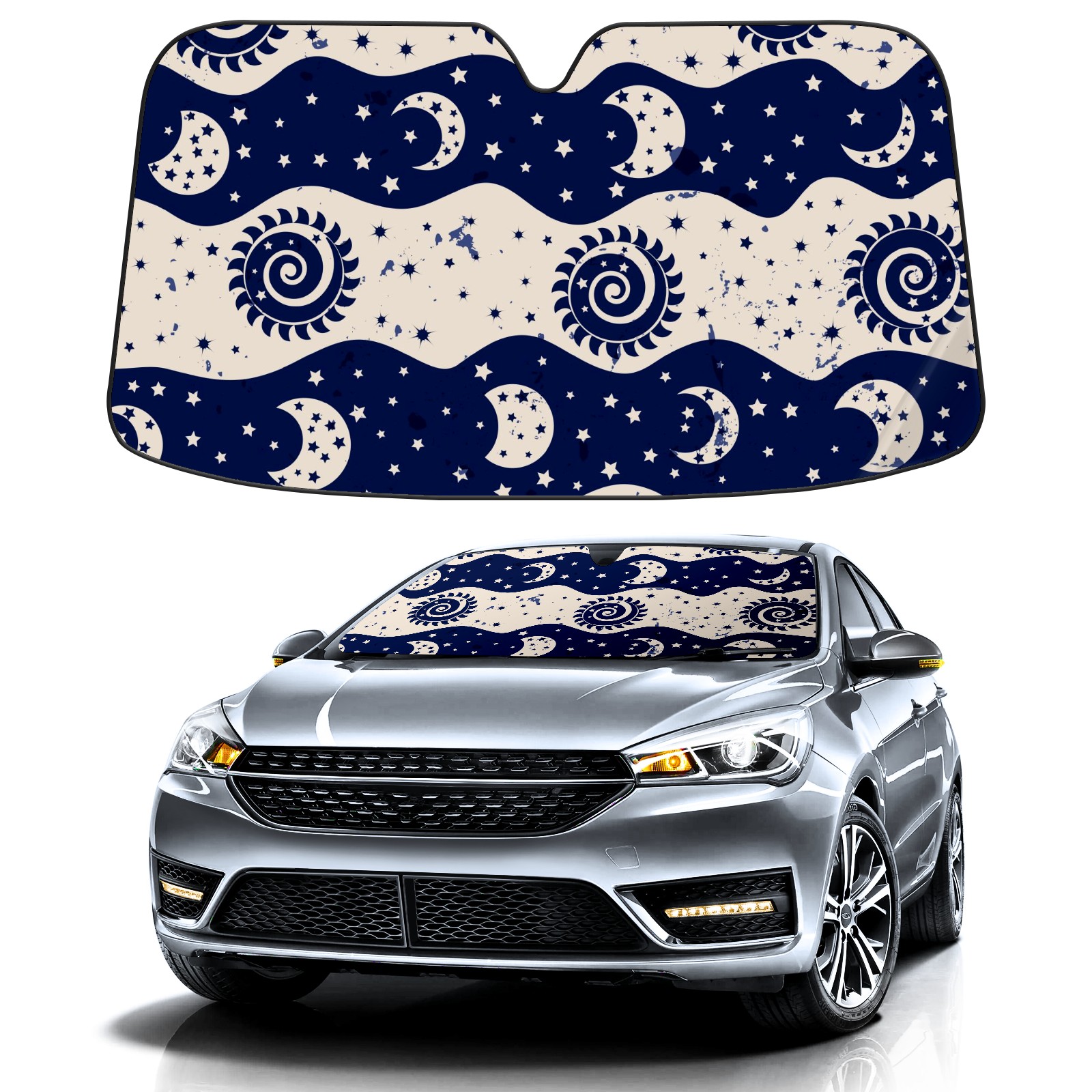 Car Windshield Sun Shade for Front Window Blue Moon Sun Star Stripe Foldable Vehicle Windshield Car Sun Visor Covers Automotive Window Protector Car Camping Privacy Sun Blocker