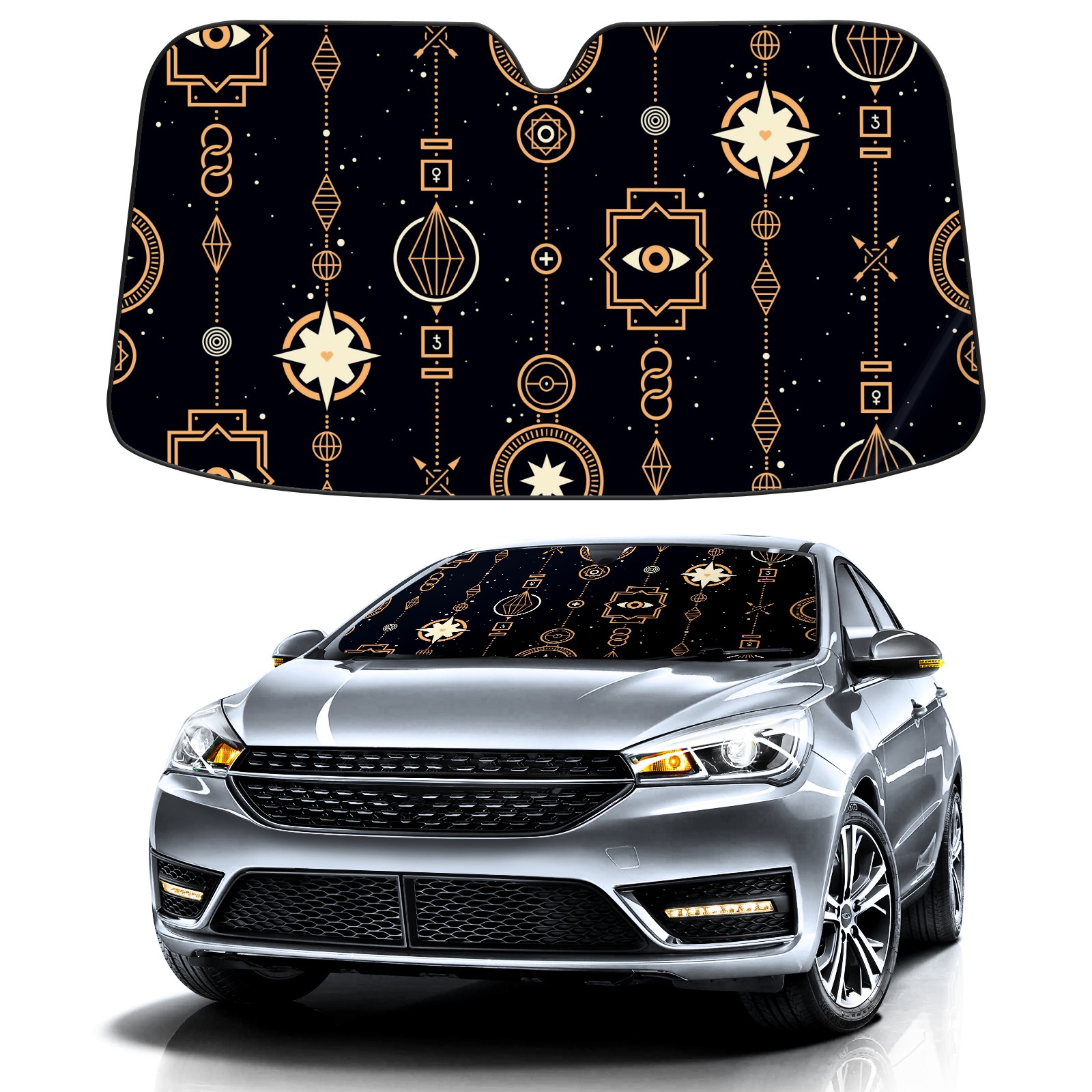 Car Windshield Sun Shade for Front Window Stars And Magic Golden Wreath Foldable Vehicle Windshield Car Sun Visor Covers Automotive Window Protector Car Camping Privacy Sun Blocker