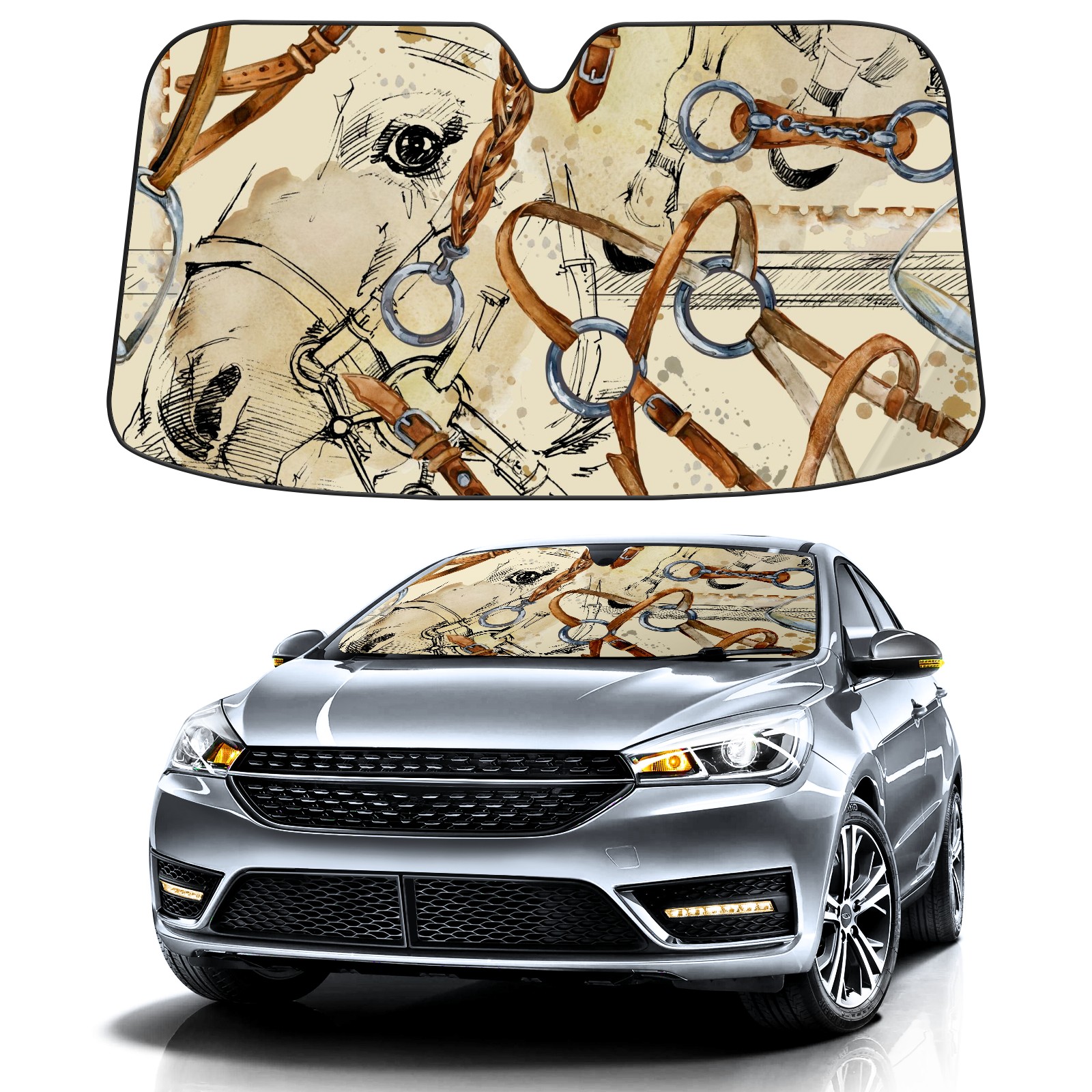 Car Windshield Sun Shade for Front Window Vintage Horse Watercolor Foldable Vehicle Windshield Car Sun Visor Covers Automotive Window Protector Car Camping Privacy Sun Blocker
