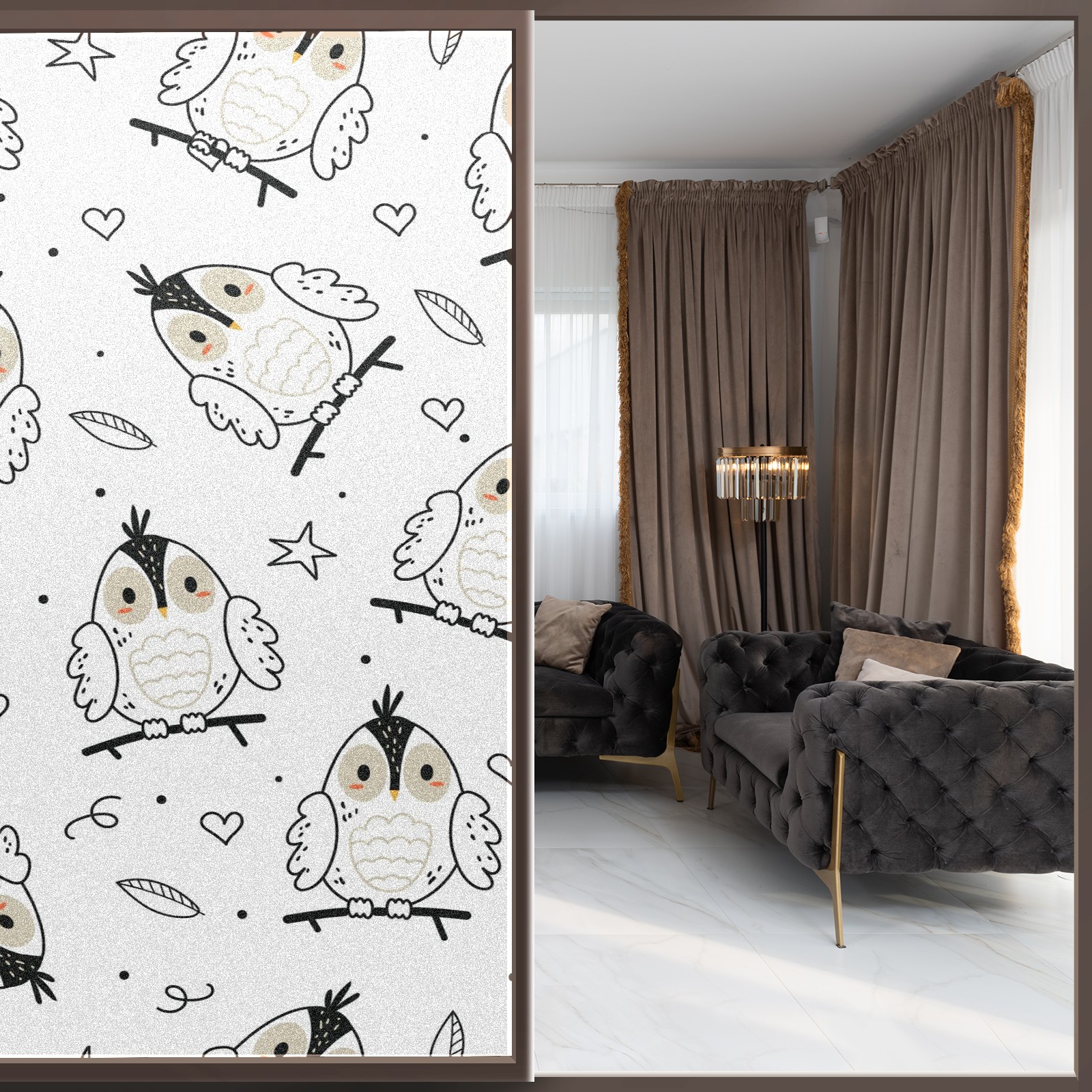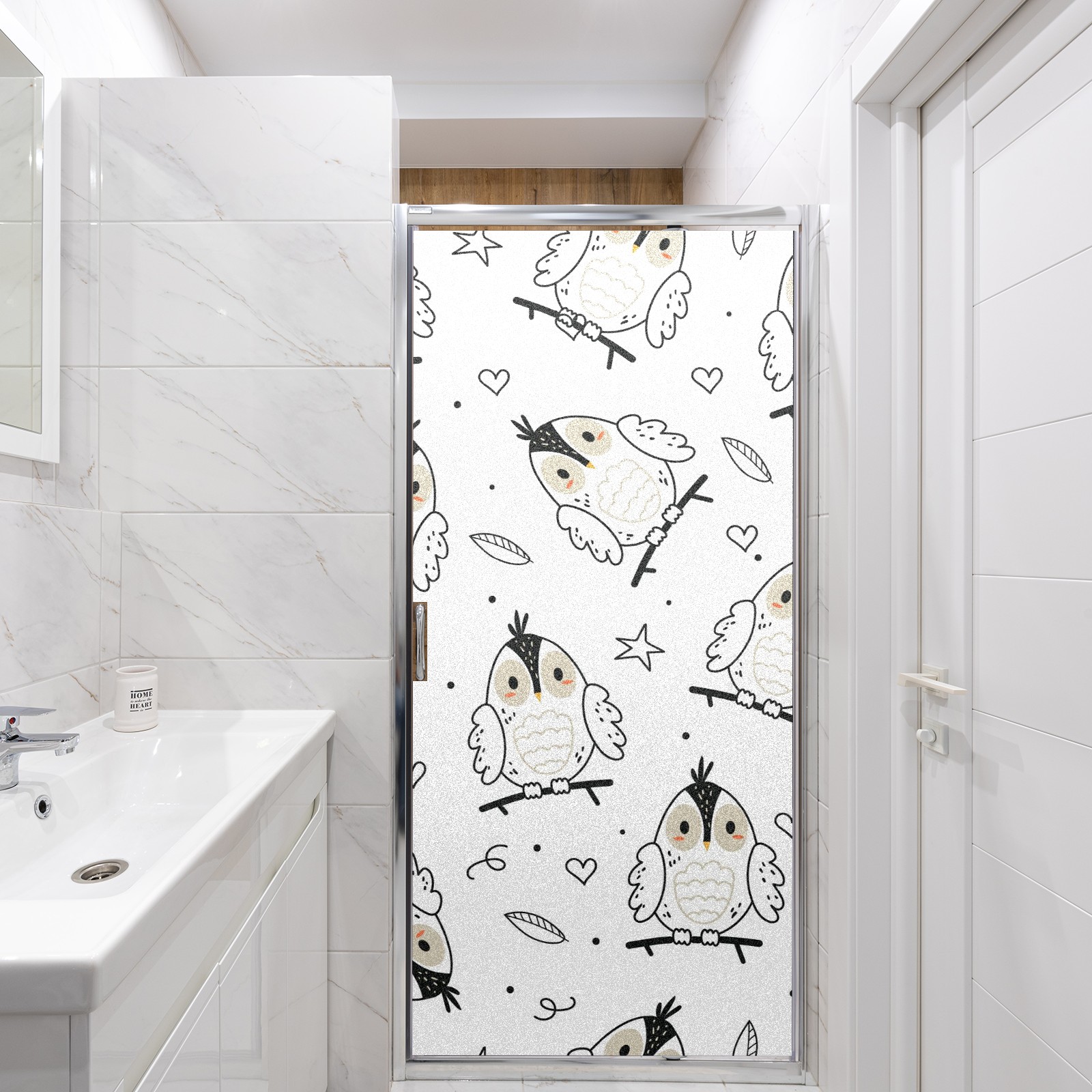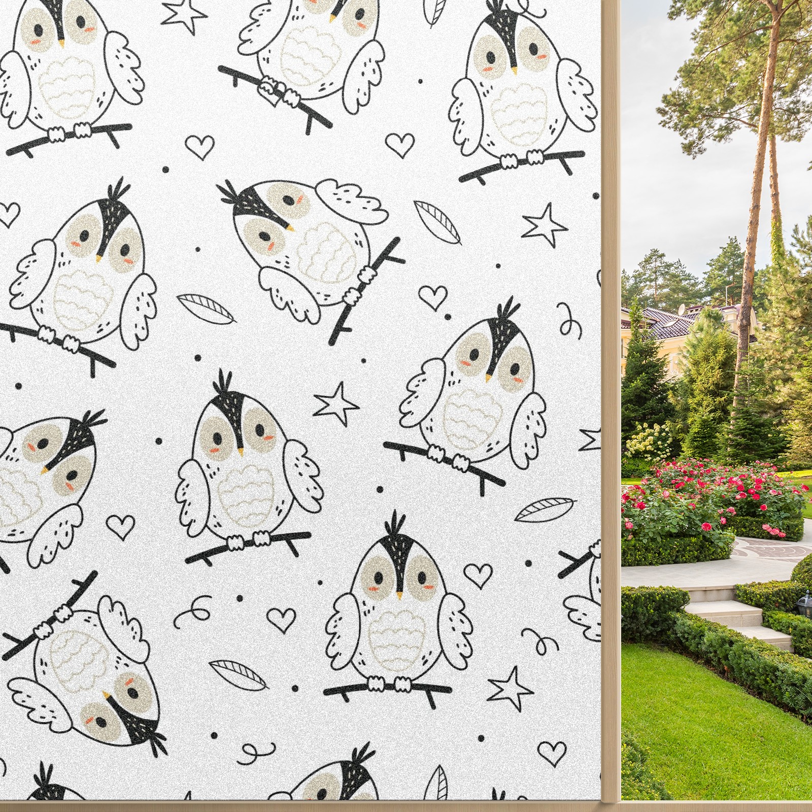 Static Cling Decorative Window Film Frosted Privacy Film Window Clings for Glass Windows No Glue Window Sticker for Bathroom Bedroom Office Forest Owl Star