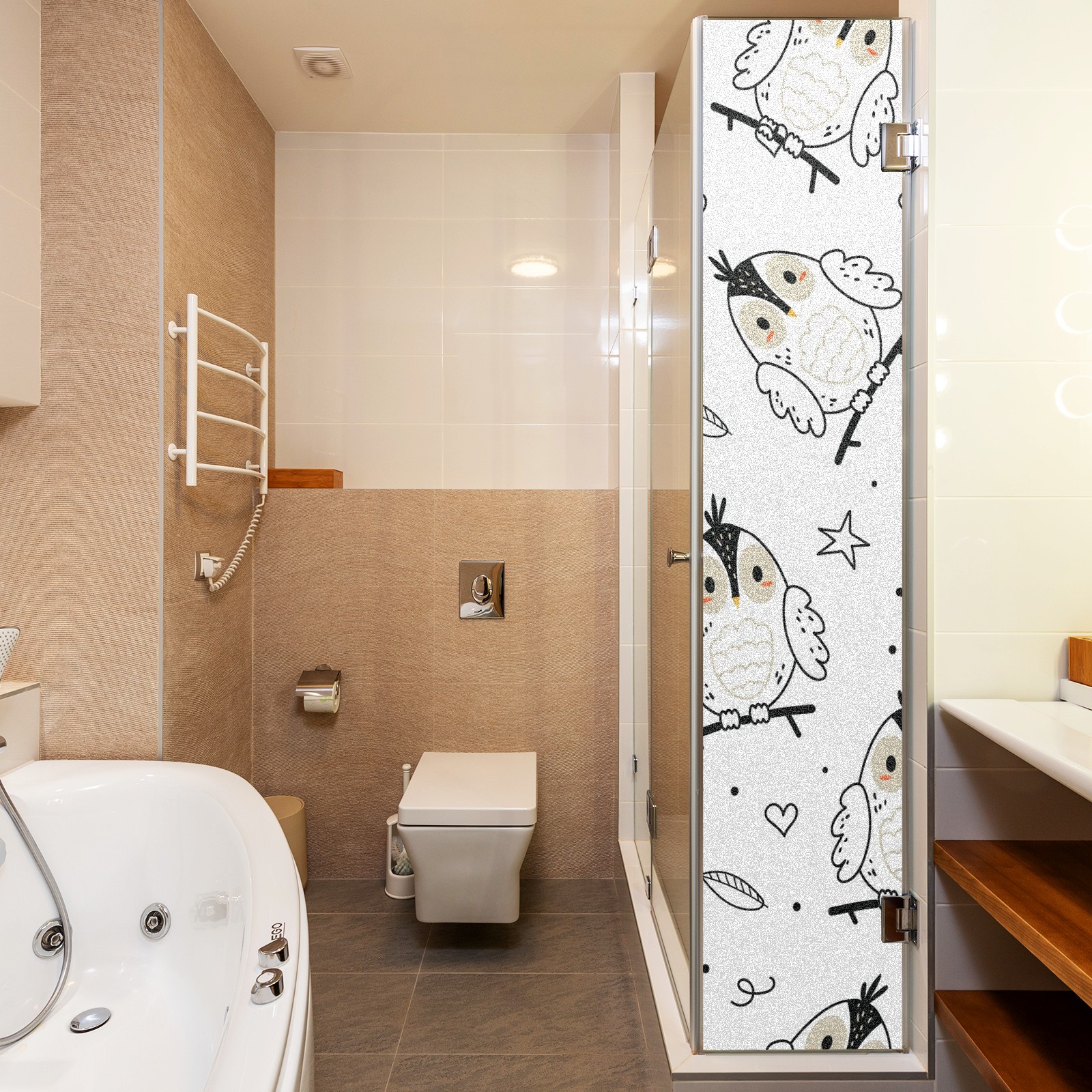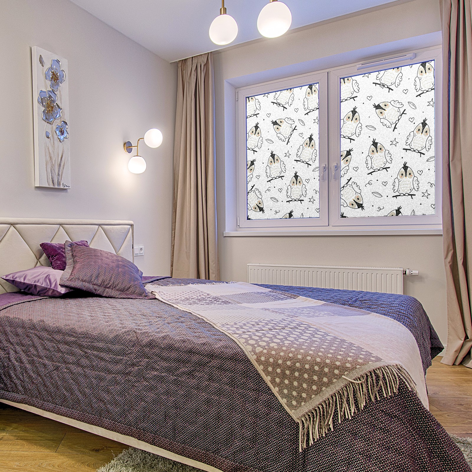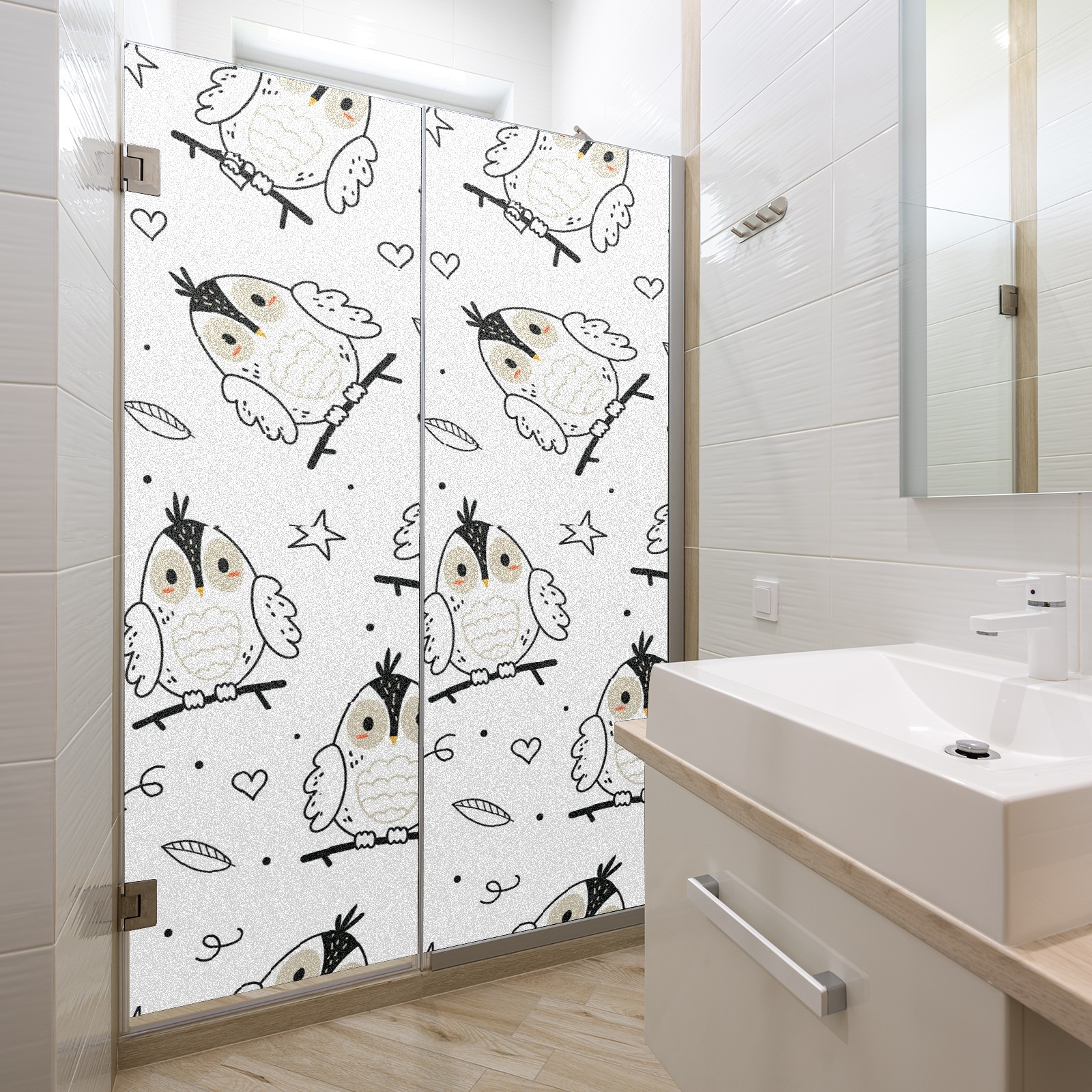 Static Cling Decorative Window Film Frosted Privacy Film Window Clings for Glass Windows No Glue Window Sticker for Bathroom Bedroom Office Forest Owl Star