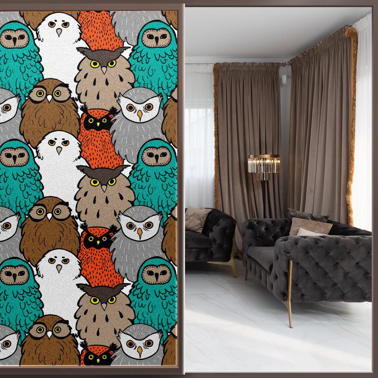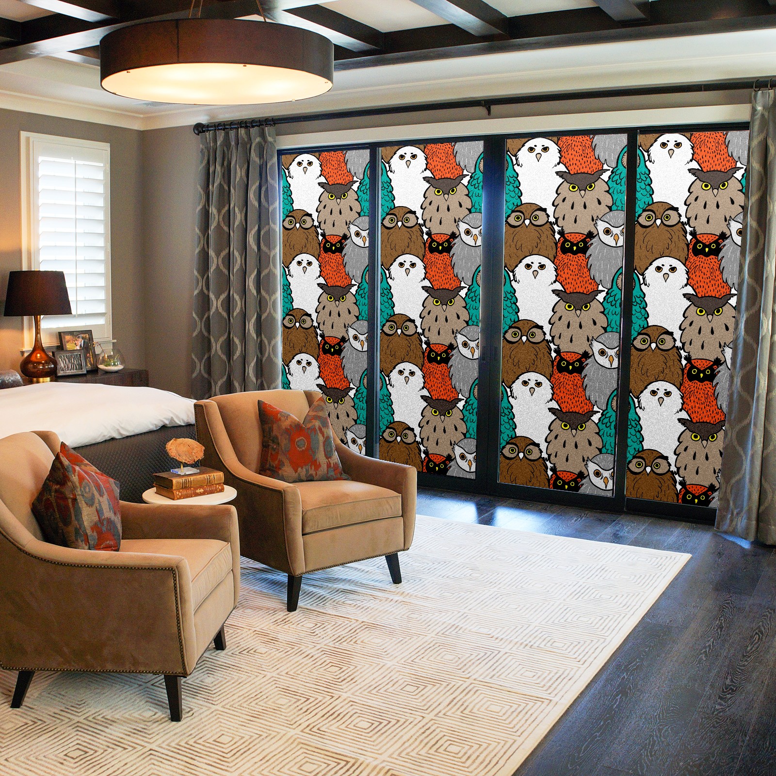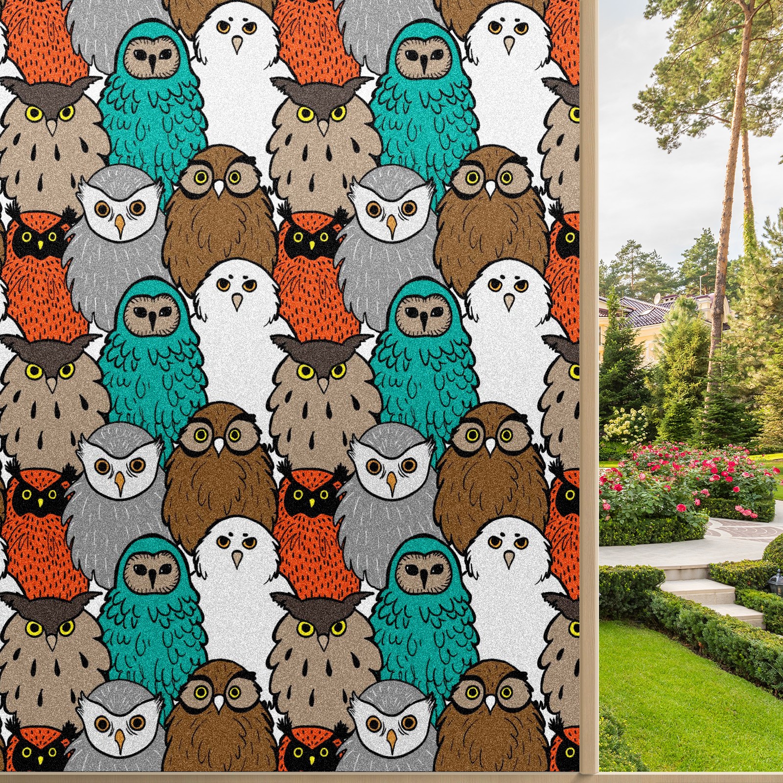 Static Cling Decorative Window Film Frosted Privacy Film Window Clings for Glass Windows No Glue Window Sticker for Bathroom Bedroom Office Cute Owls Doodle .