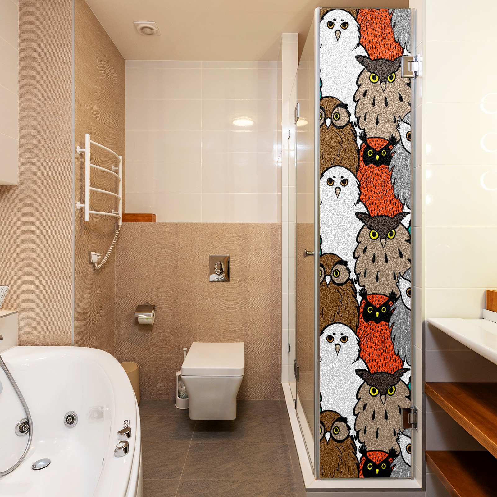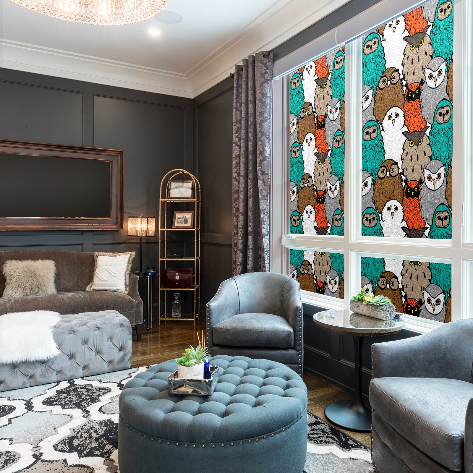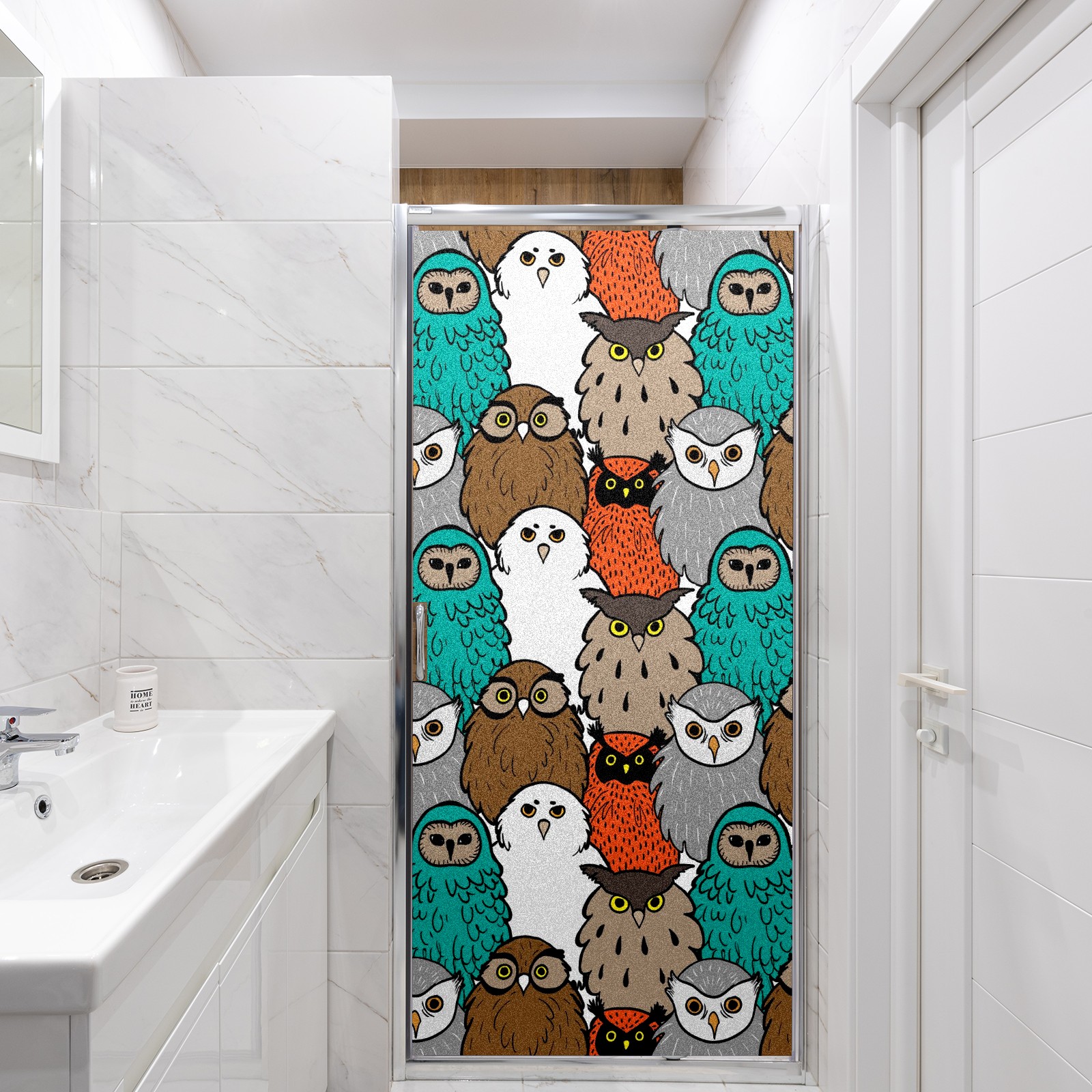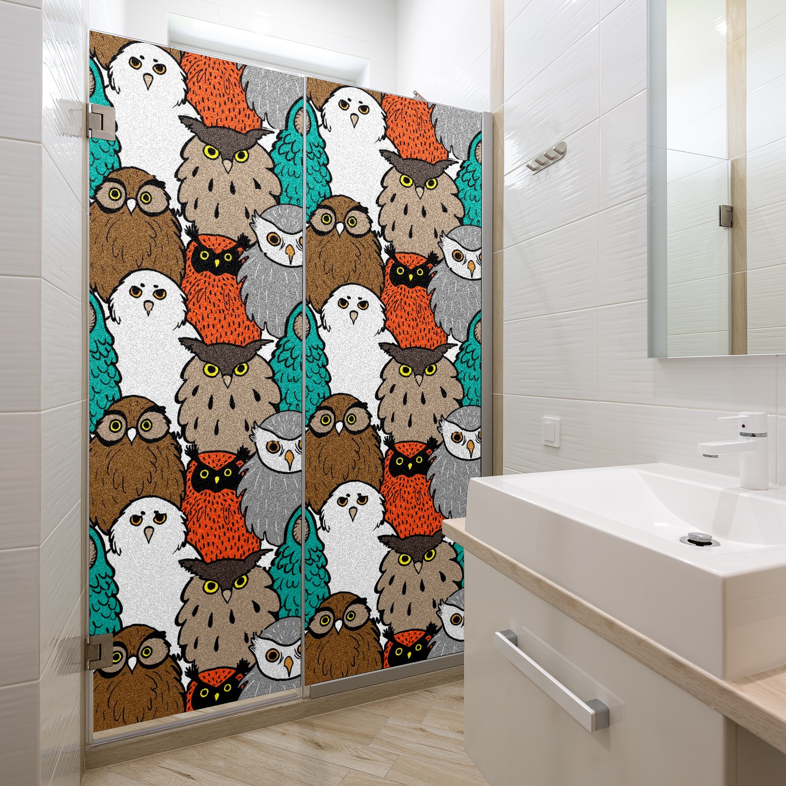 Static Cling Decorative Window Film Frosted Privacy Film Window Clings for Glass Windows No Glue Window Sticker for Bathroom Bedroom Office Cute Owls Doodle .