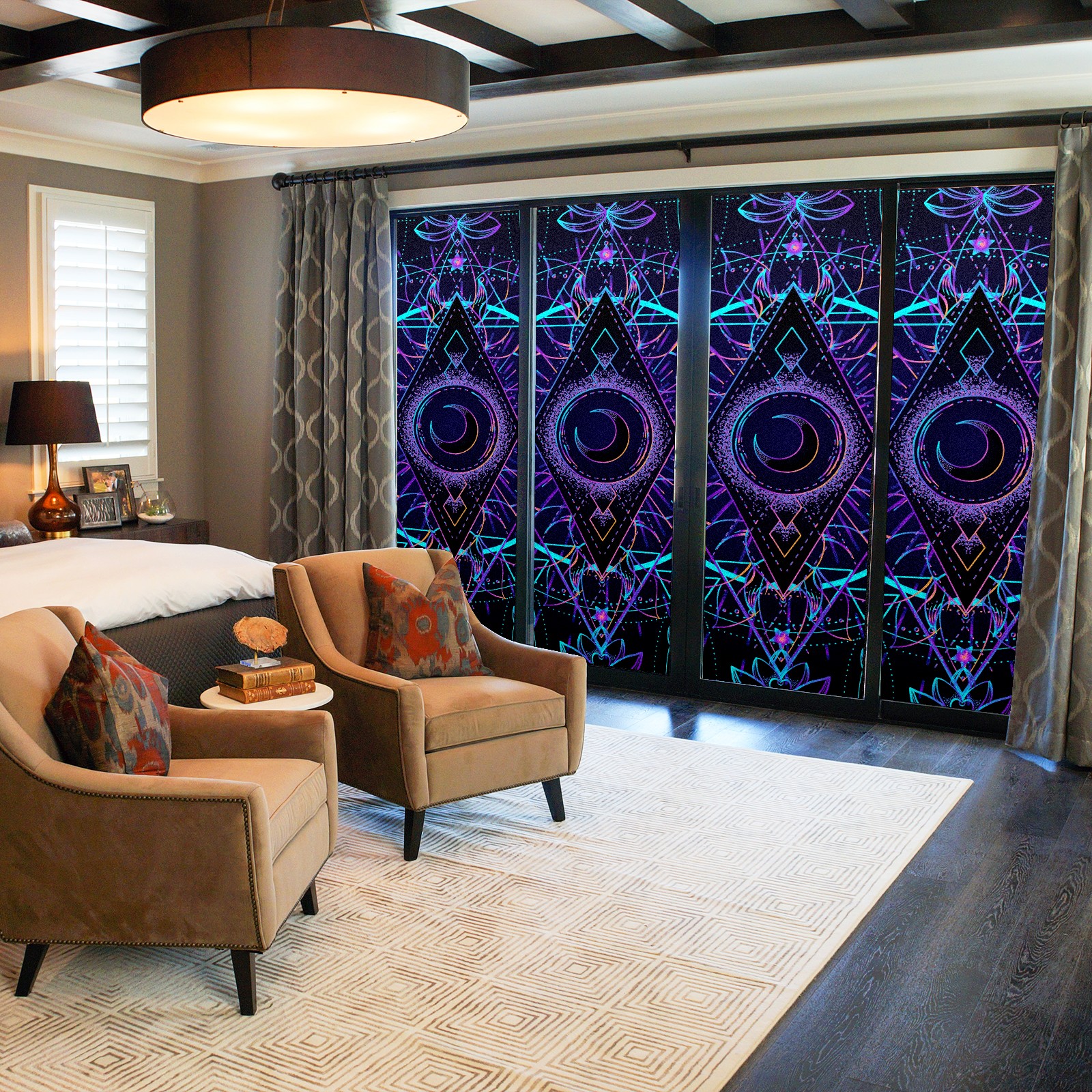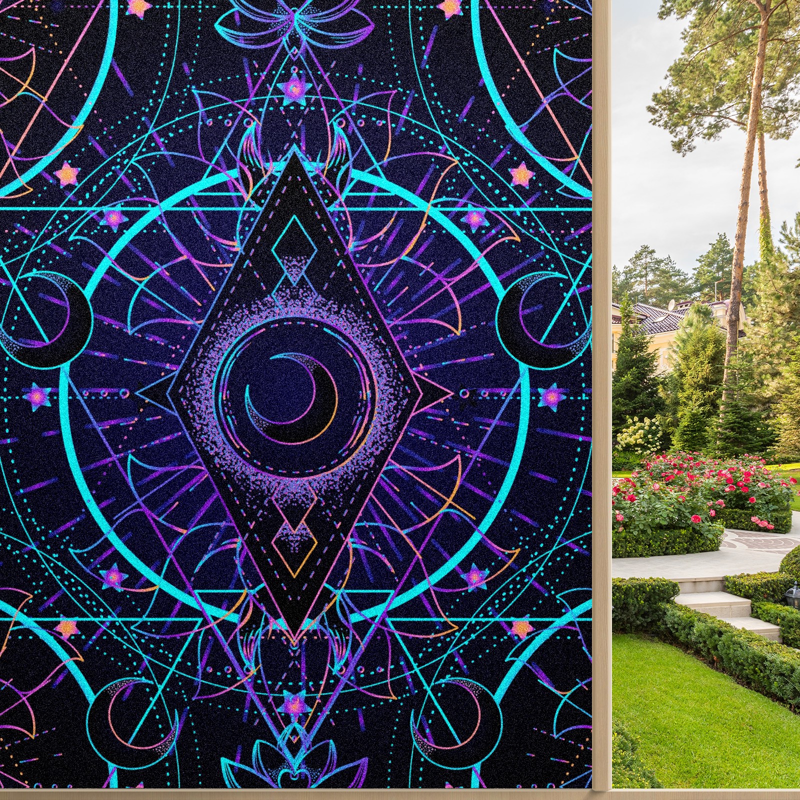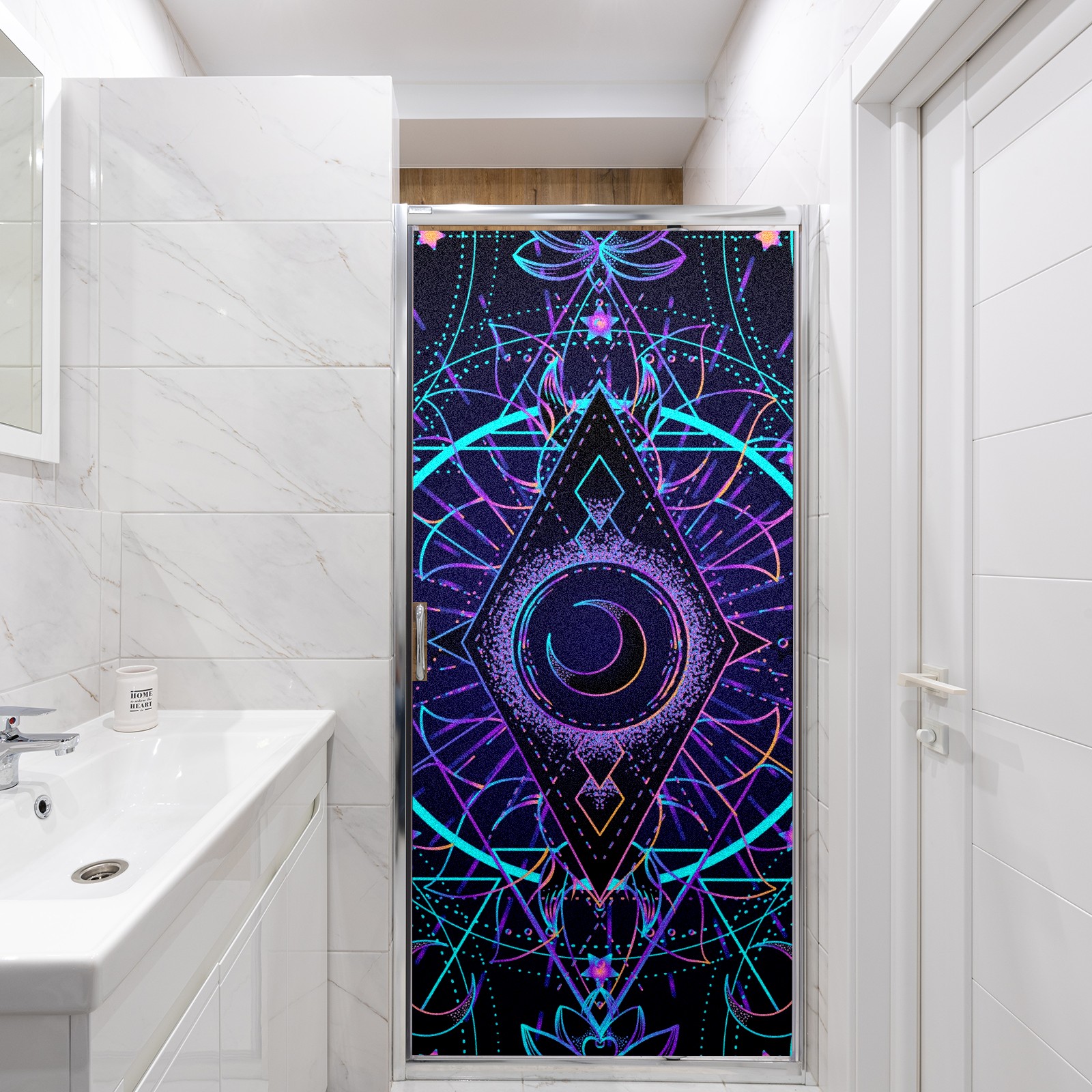 Static Cling Decorative Window Film Frosted Privacy Film Window Clings for Glass Windows No Glue Window Sticker for Bathroom Bedroom Office Sacred Geometry Moon Star