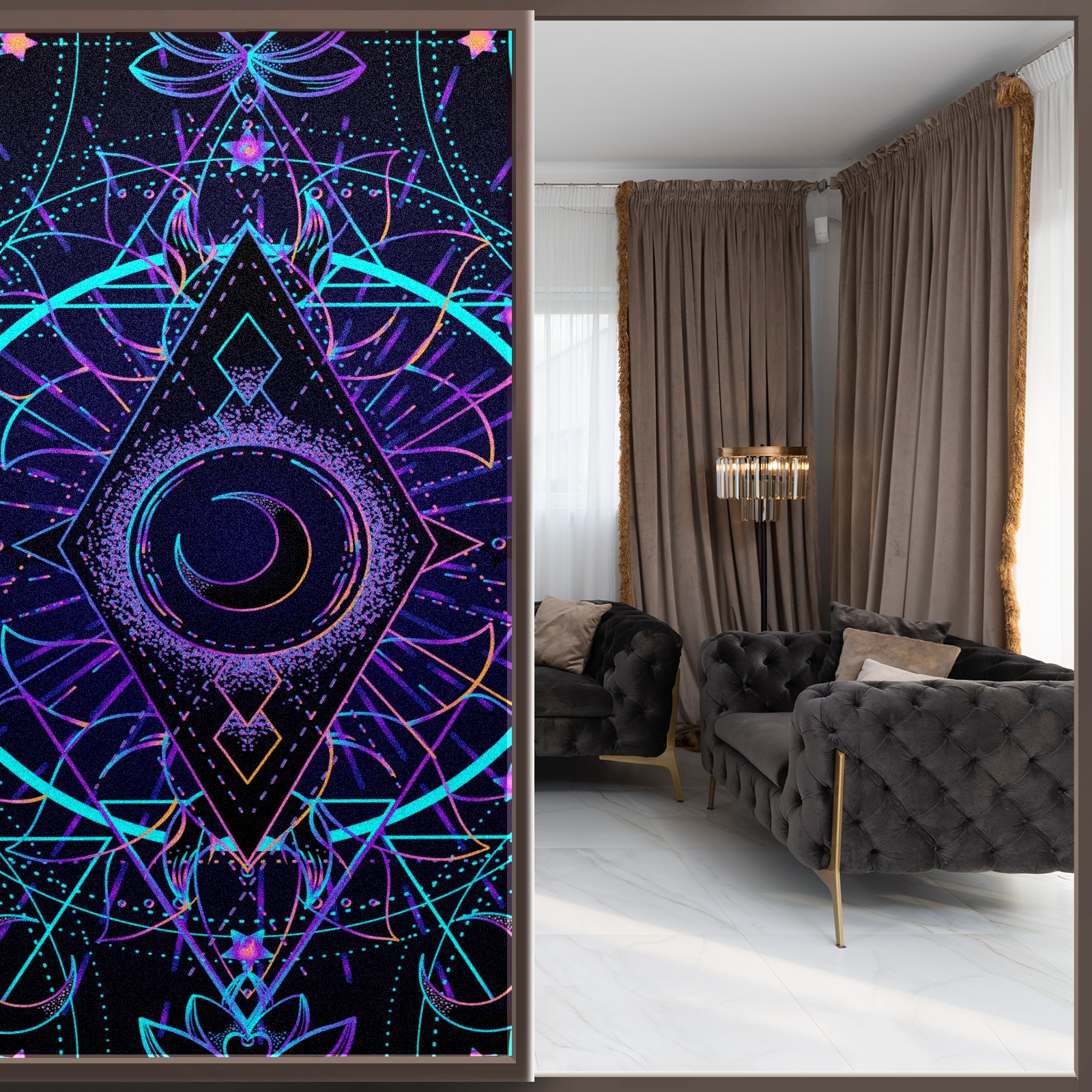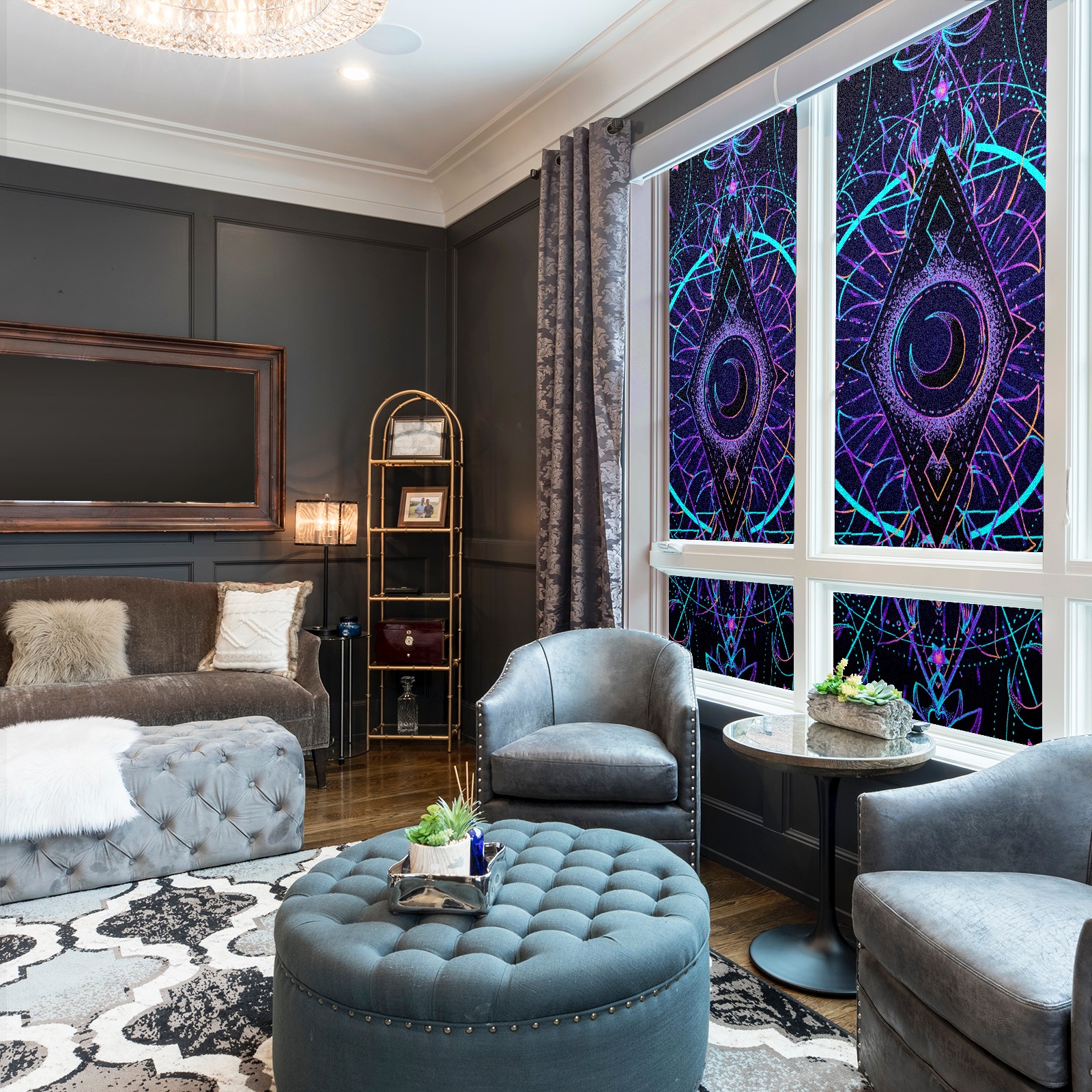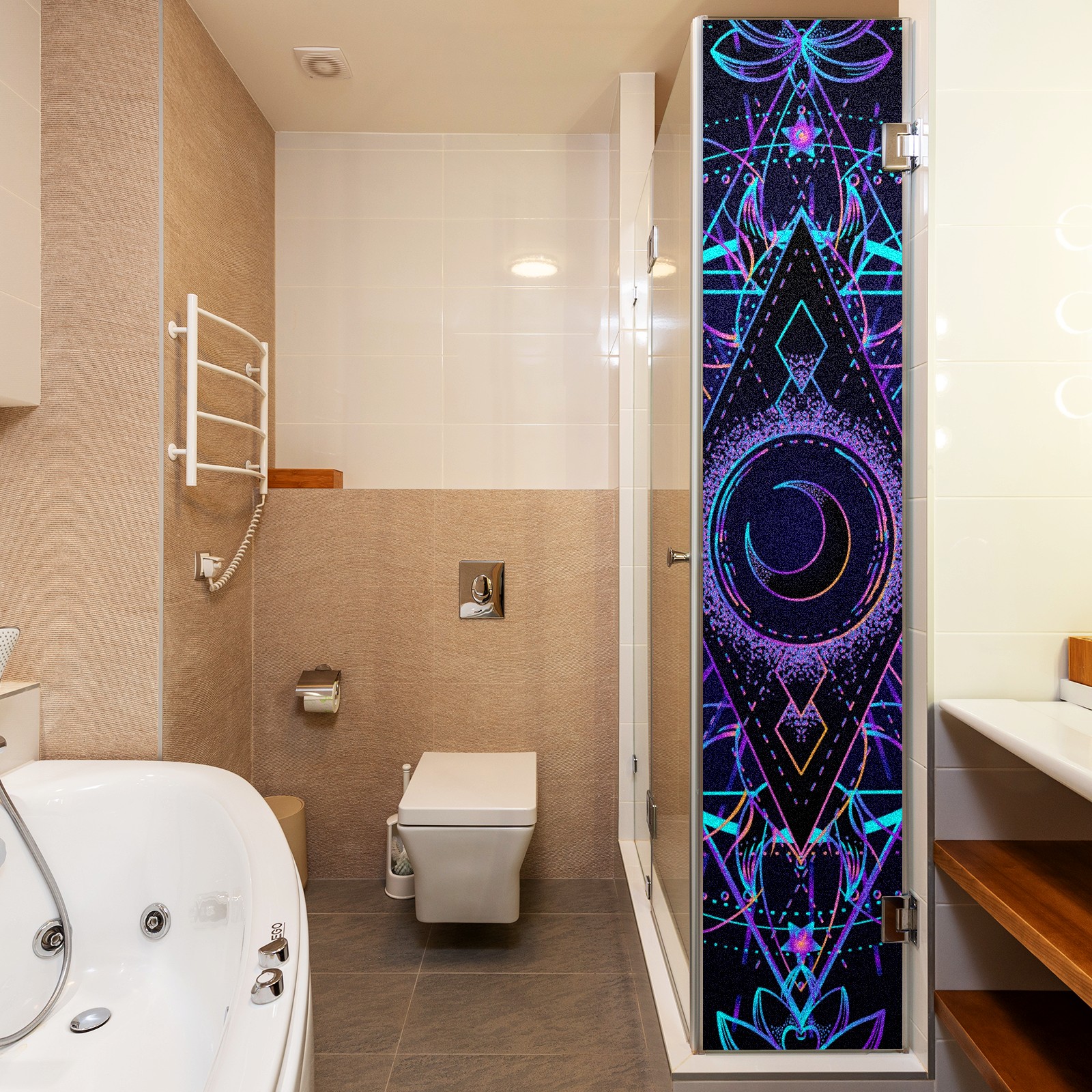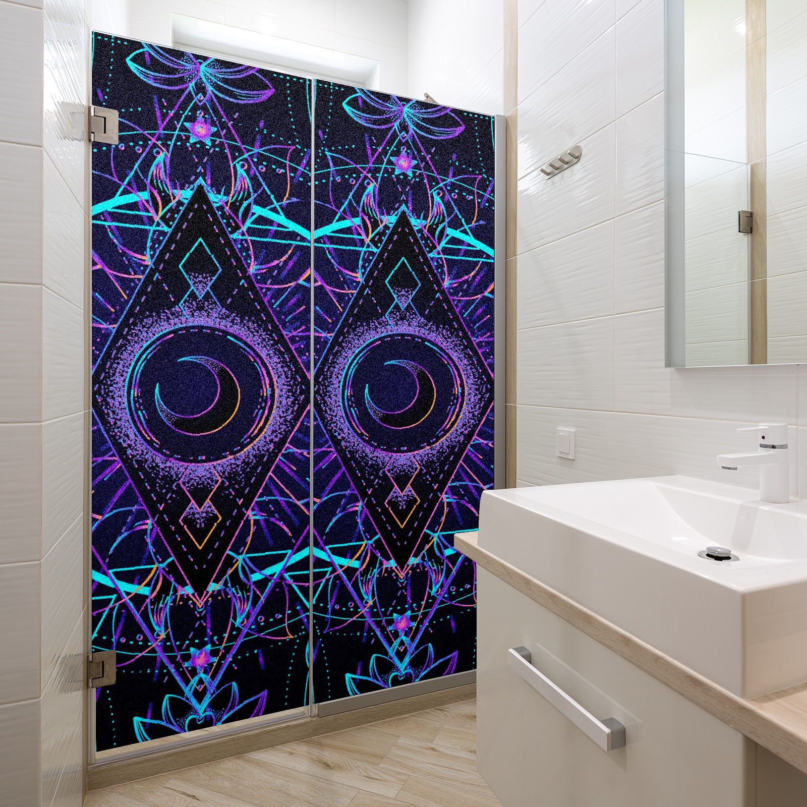 Static Cling Decorative Window Film Frosted Privacy Film Window Clings for Glass Windows No Glue Window Sticker for Bathroom Bedroom Office Sacred Geometry Moon Star