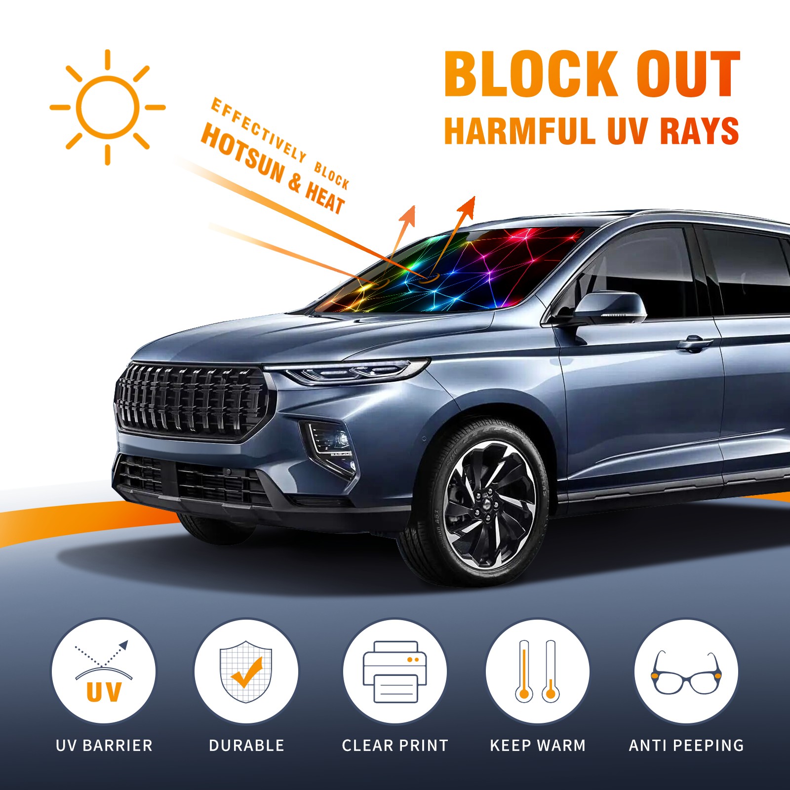 Car Windshield Sun Shade for Front Window Neon Rainbow Foldable Vehicle Windshield Car Sun Visor Covers Automotive Window Protector Car Camping Privacy Sun Blocker