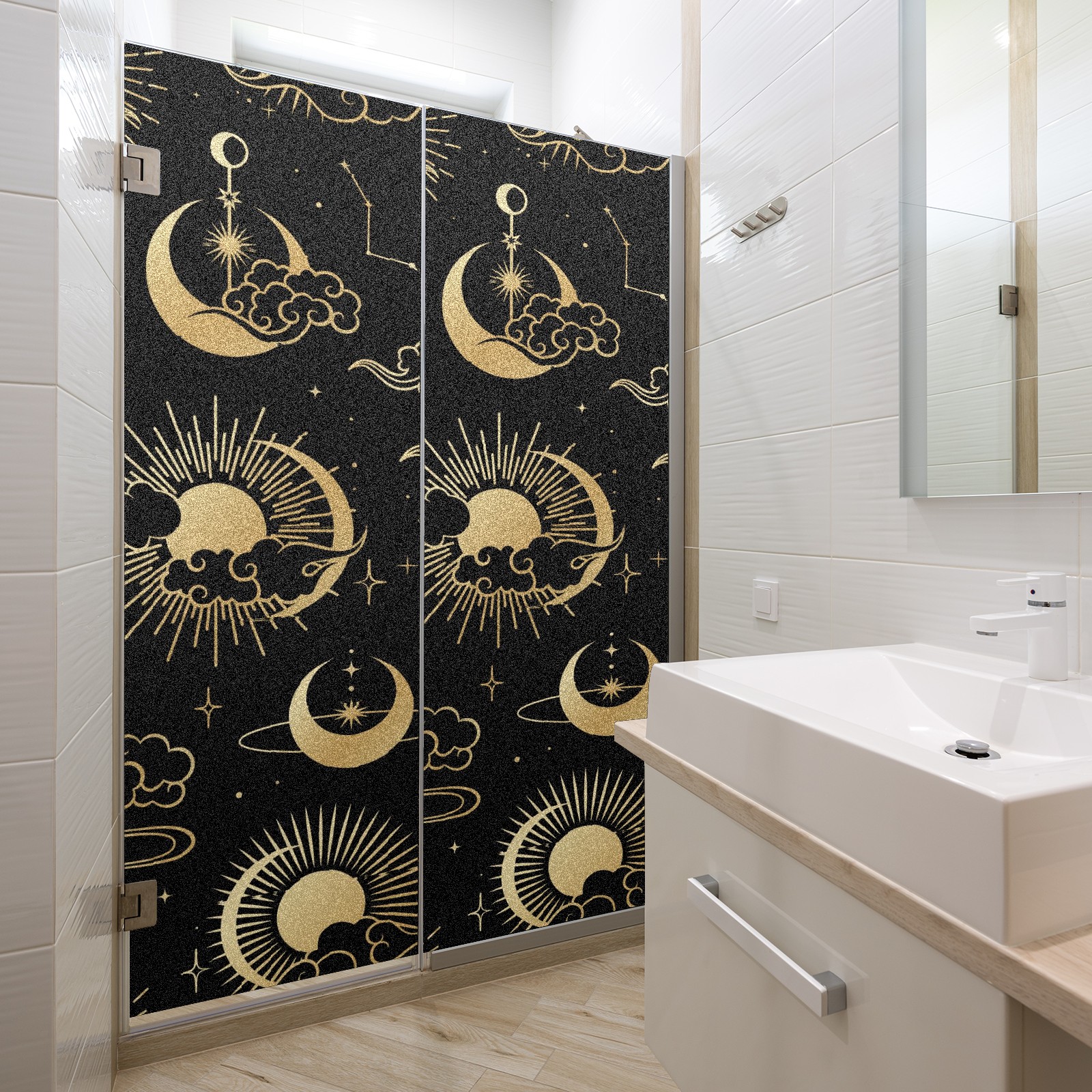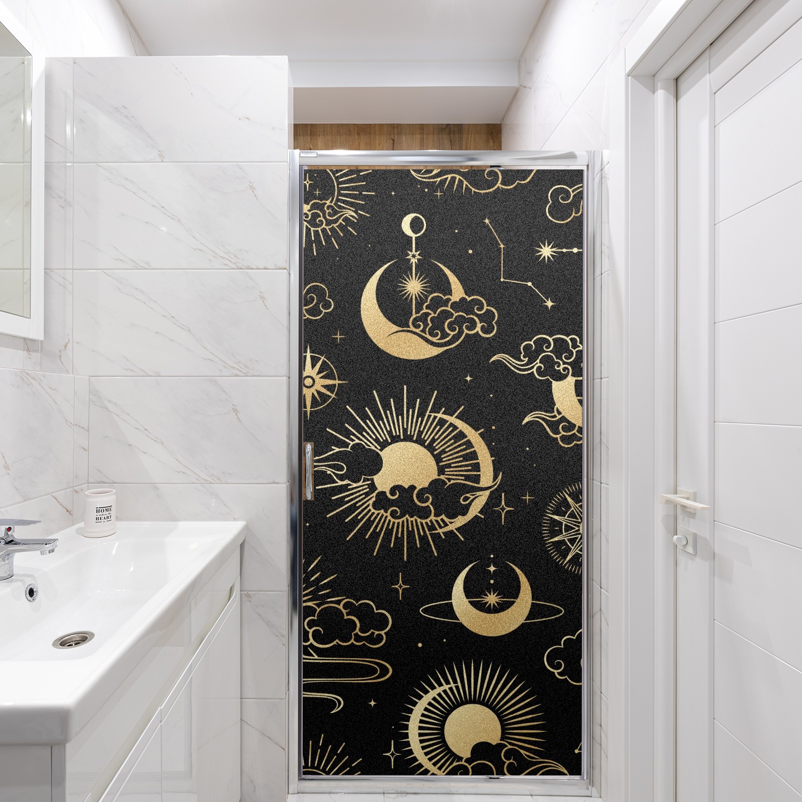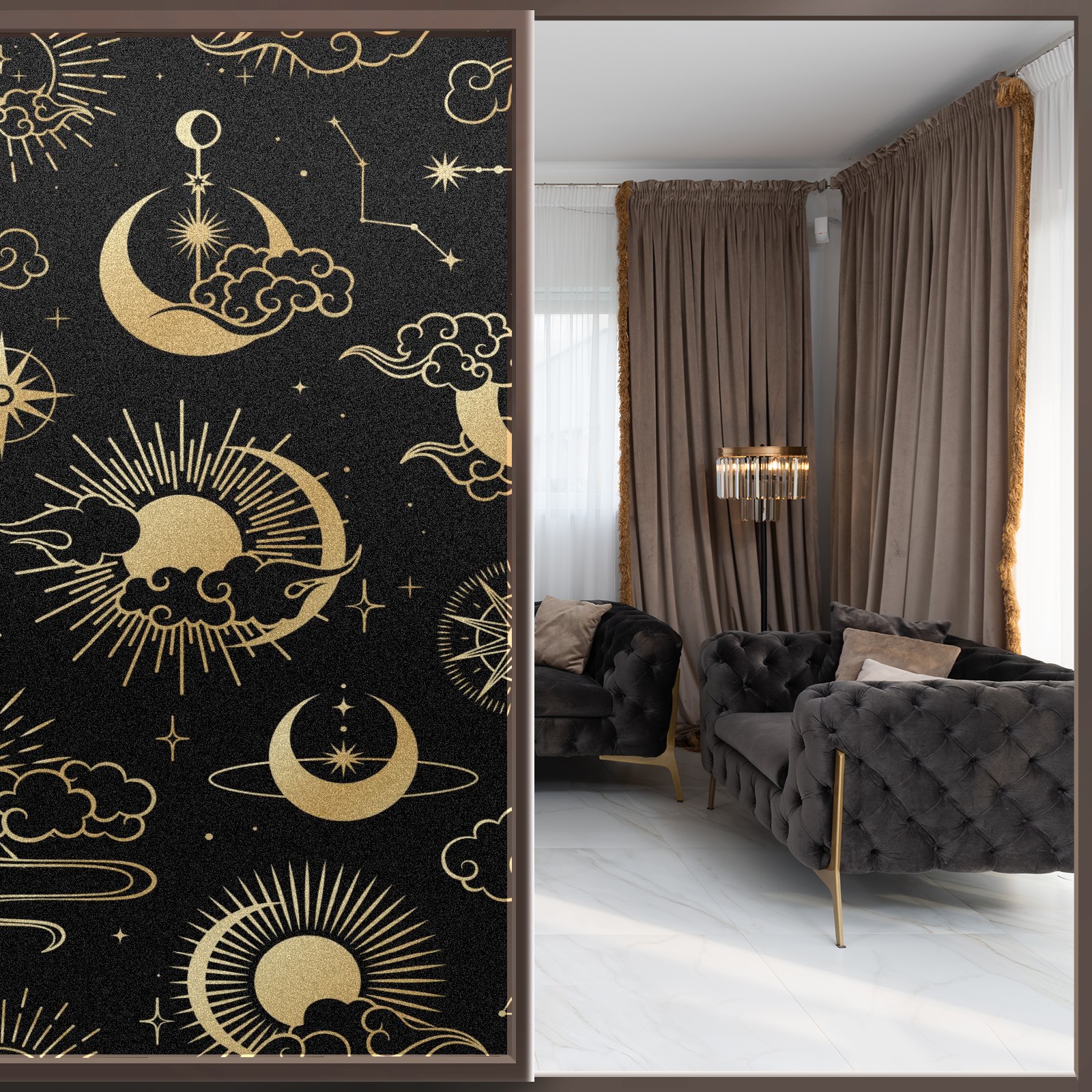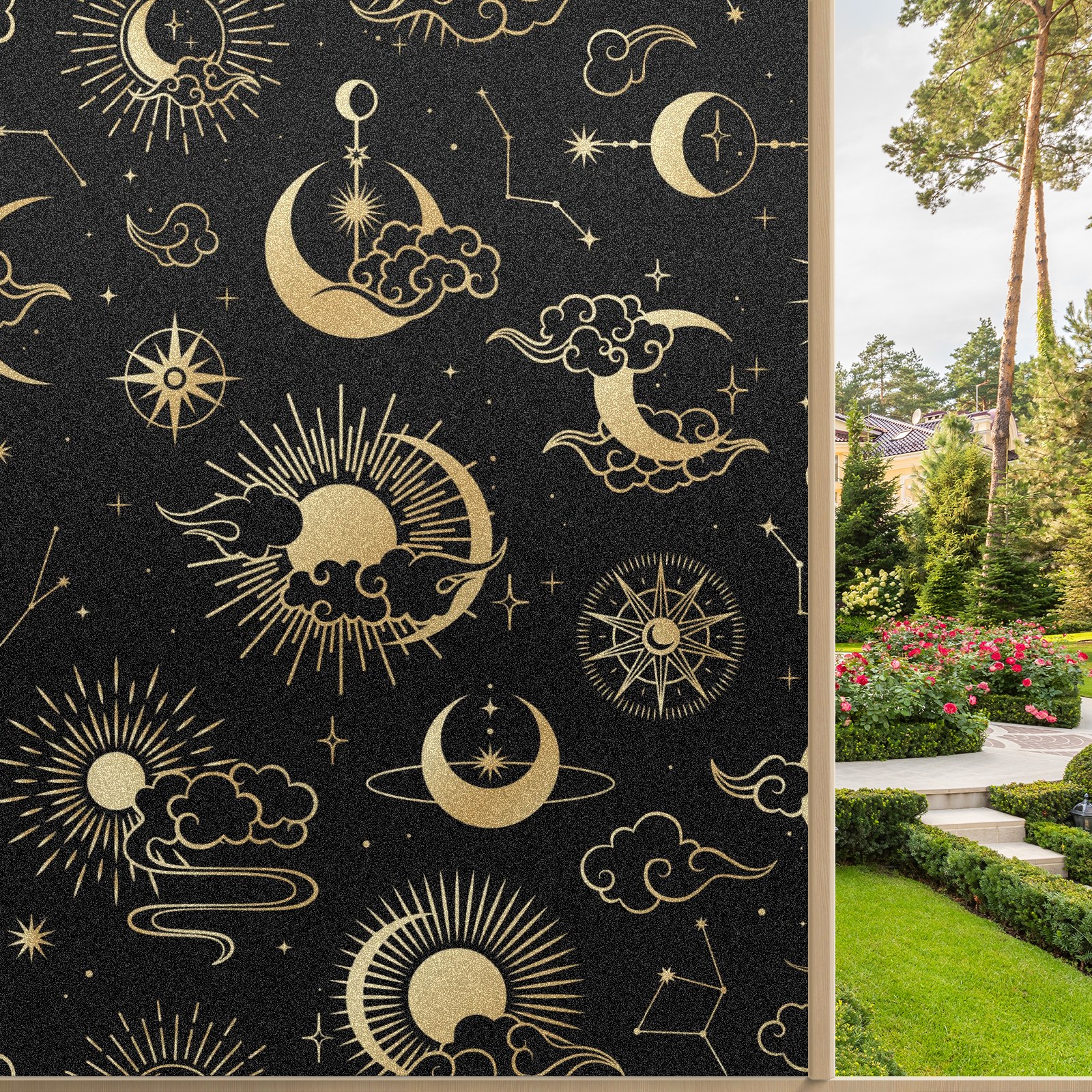 Static Cling Decorative Window Film Frosted Privacy Film Window Clings for Glass Windows No Glue Window Sticker for Bathroom Bedroom Office Retro Moon Sun Stars Clouds