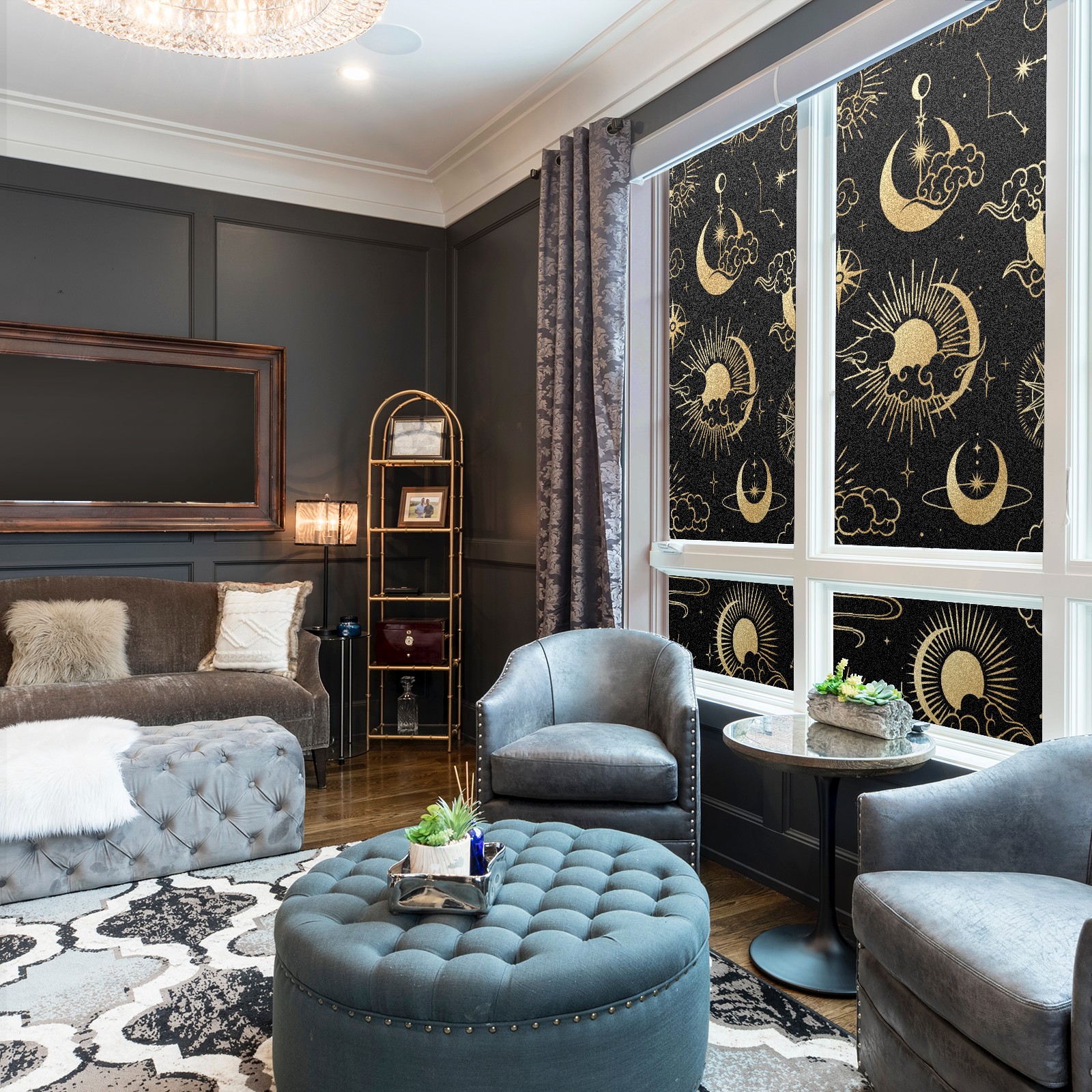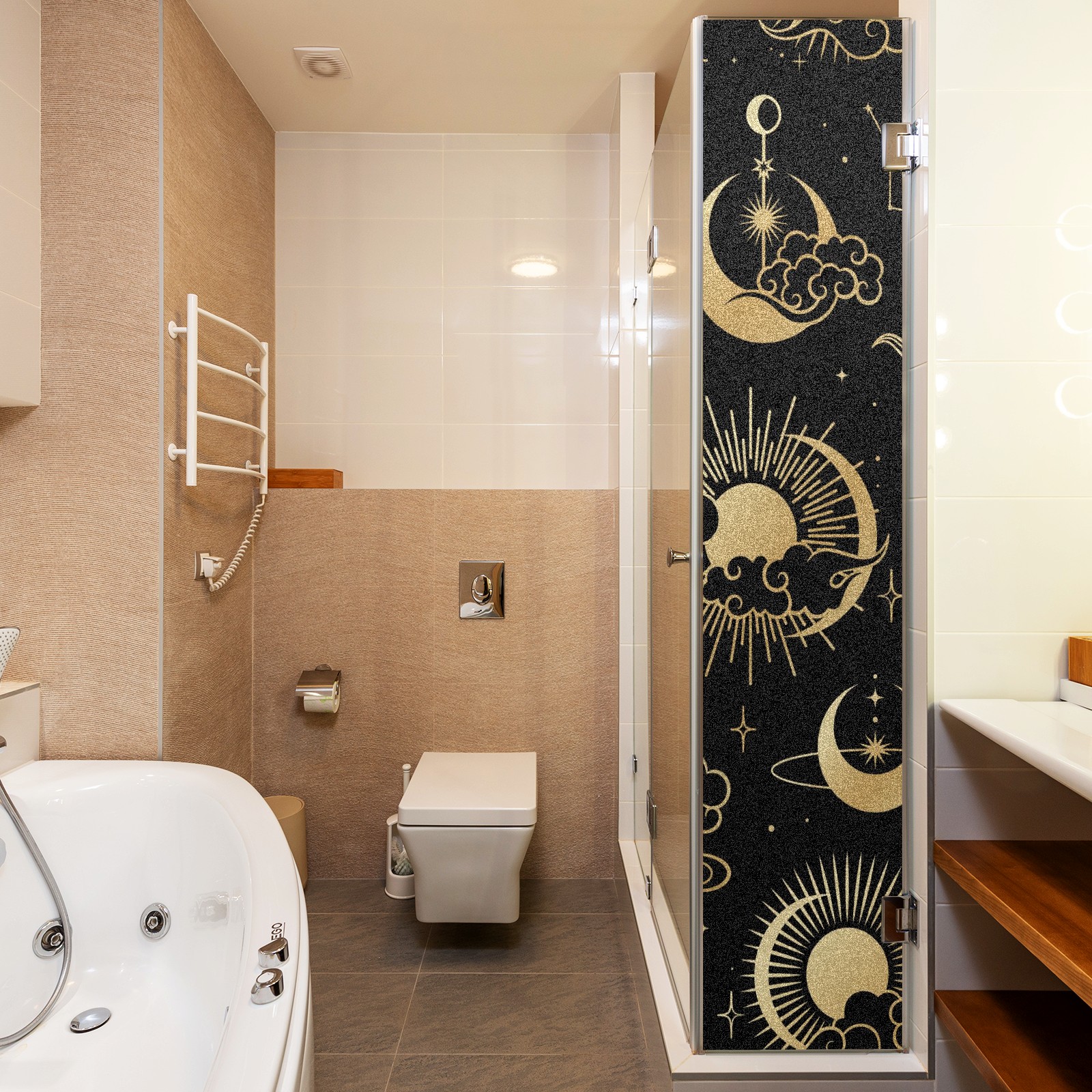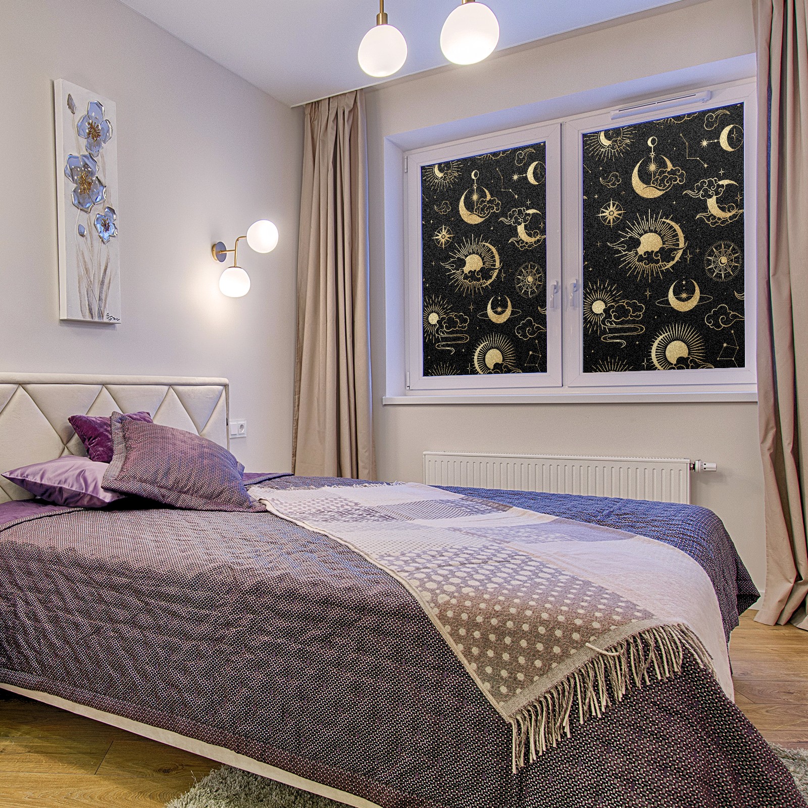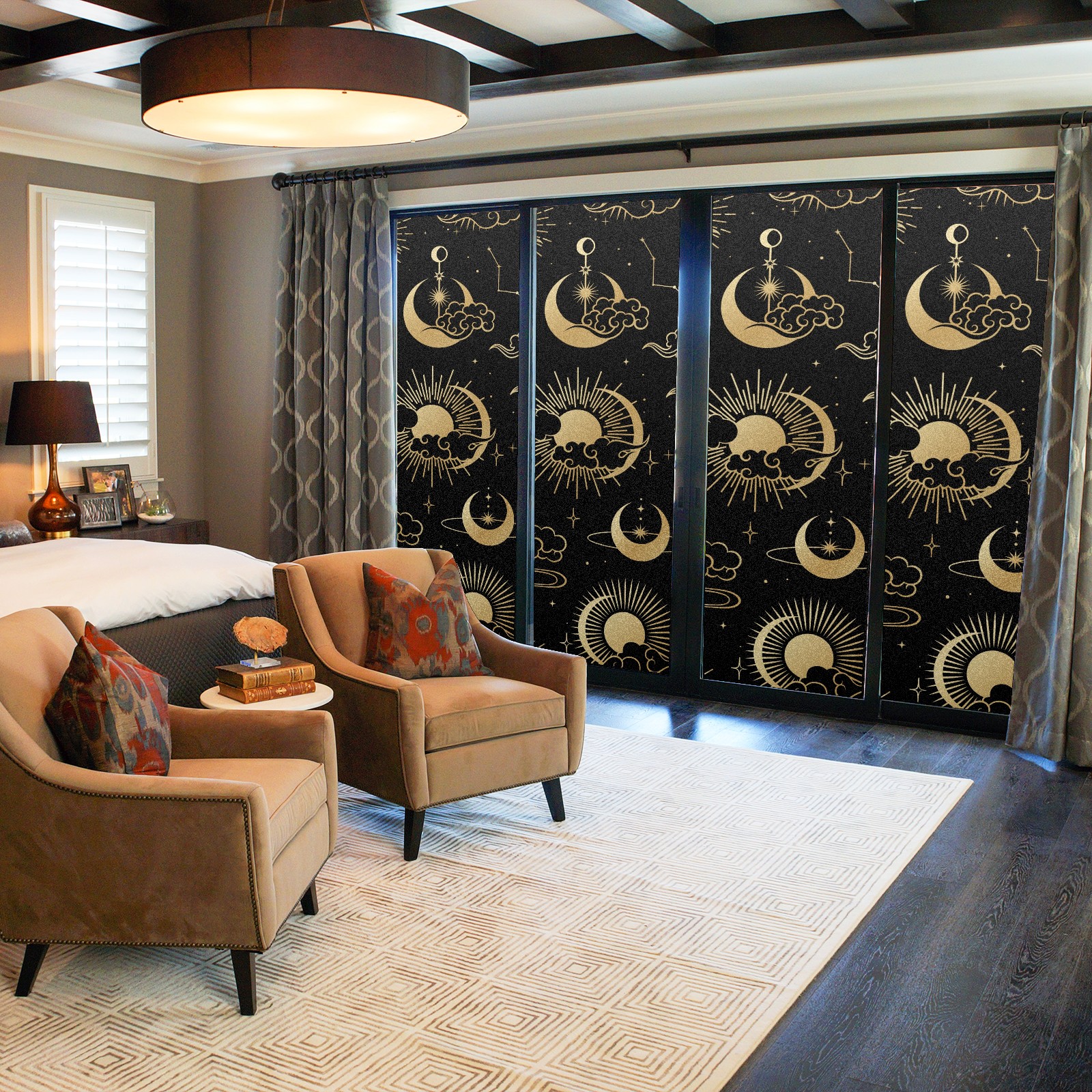 Static Cling Decorative Window Film Frosted Privacy Film Window Clings for Glass Windows No Glue Window Sticker for Bathroom Bedroom Office Retro Moon Sun Stars Clouds