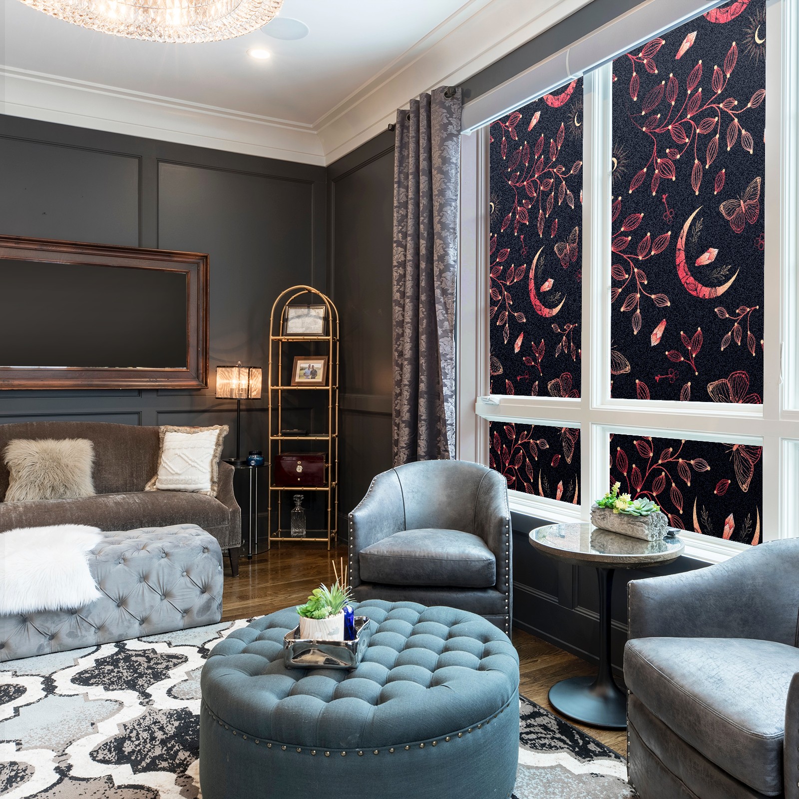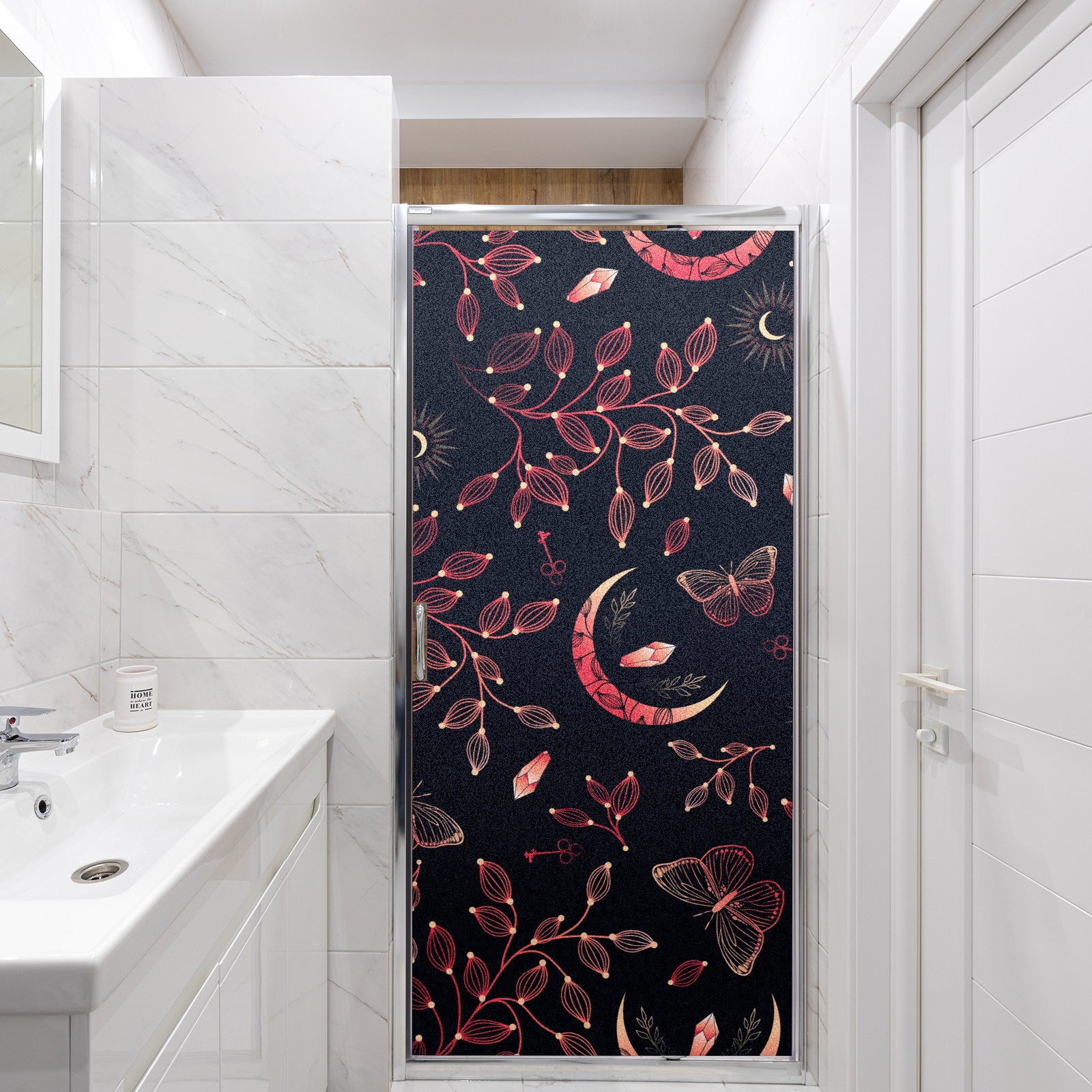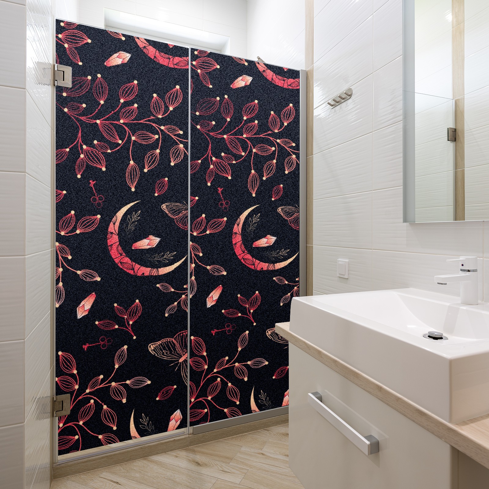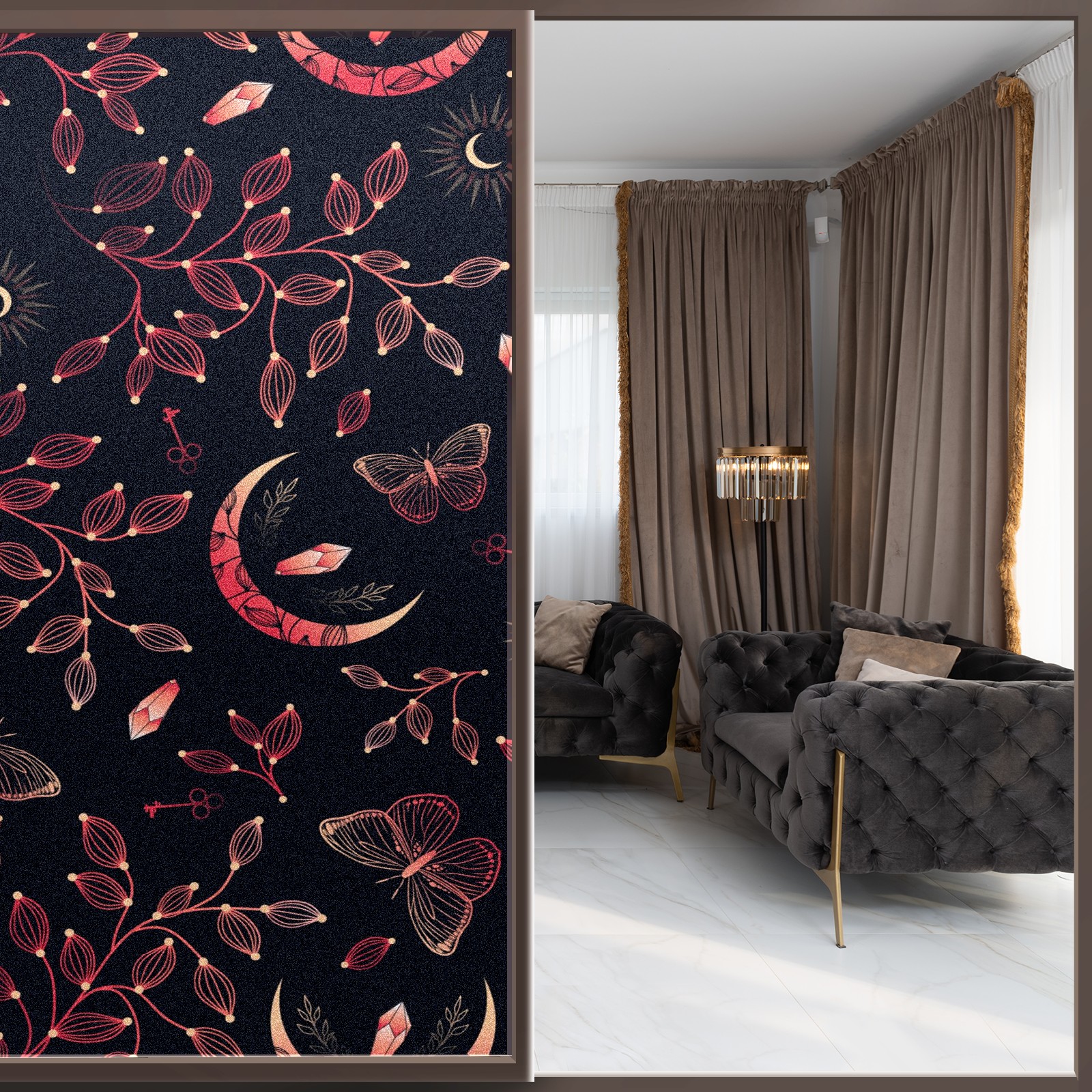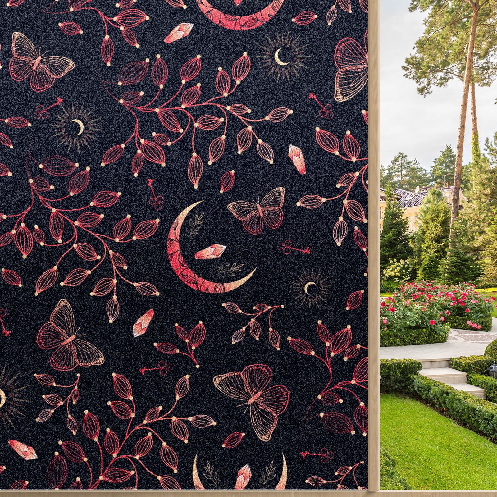 Static Cling Decorative Window Film Frosted Privacy Film Window Clings for Glass Windows No Glue Window Sticker for Bathroom Bedroom Office Red Moon Butterfly Leaves