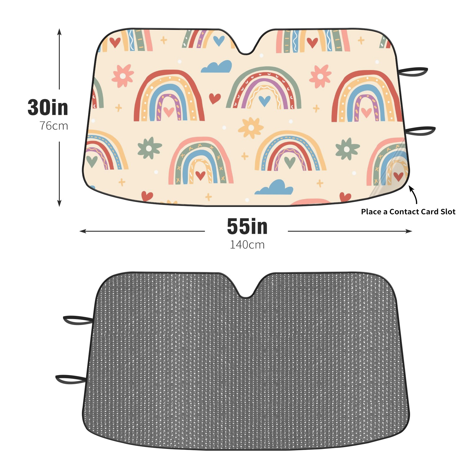 Car Windshield Sun Shade for Front Window Boho Rainbow Cloud Heart Foldable Vehicle Windshield Car Sun Visor Covers Automotive Window Protector Car Camping Privacy Sun Blocker