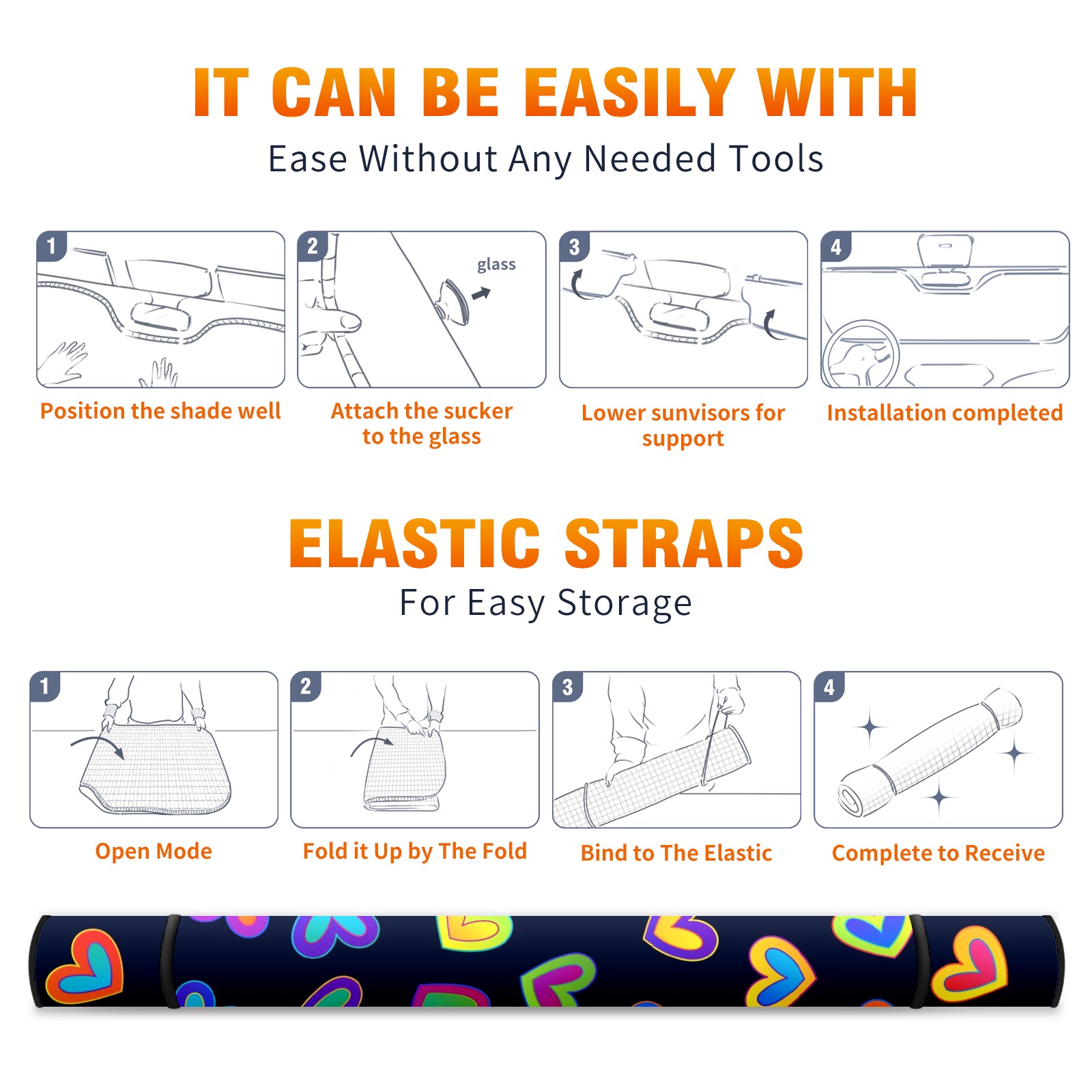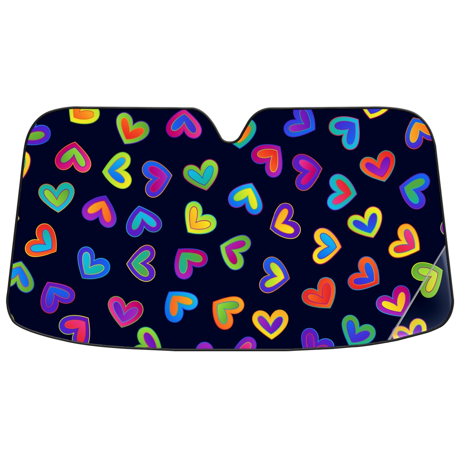 Car Windshield Sun Shade for Front Window Colorful Hearts On Dark Background Foldable Vehicle Windshield Car Sun Visor Covers Automotive Window Protector Car Camping Privacy Sun Blocker