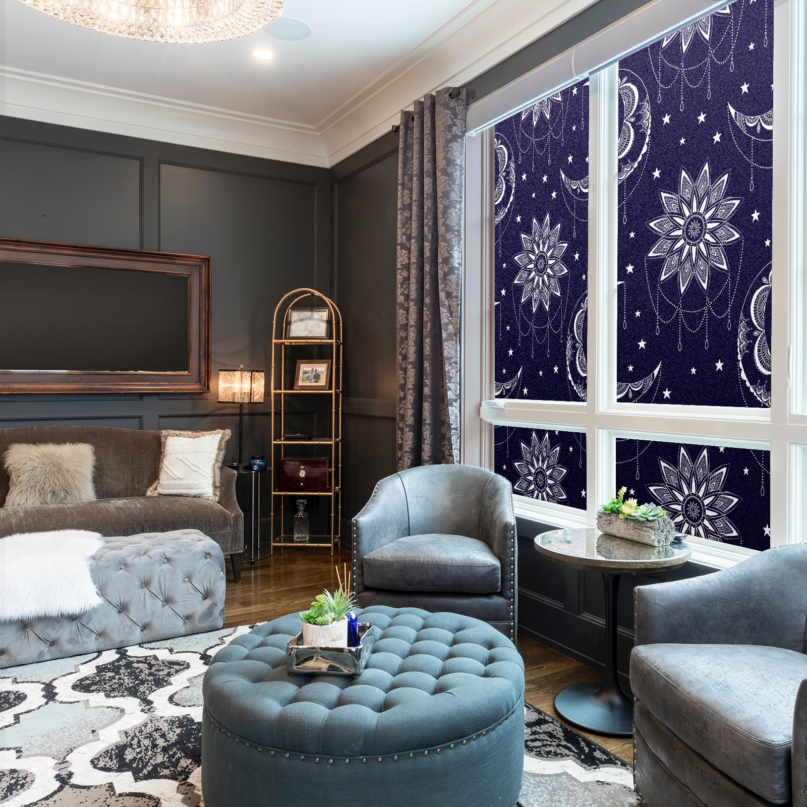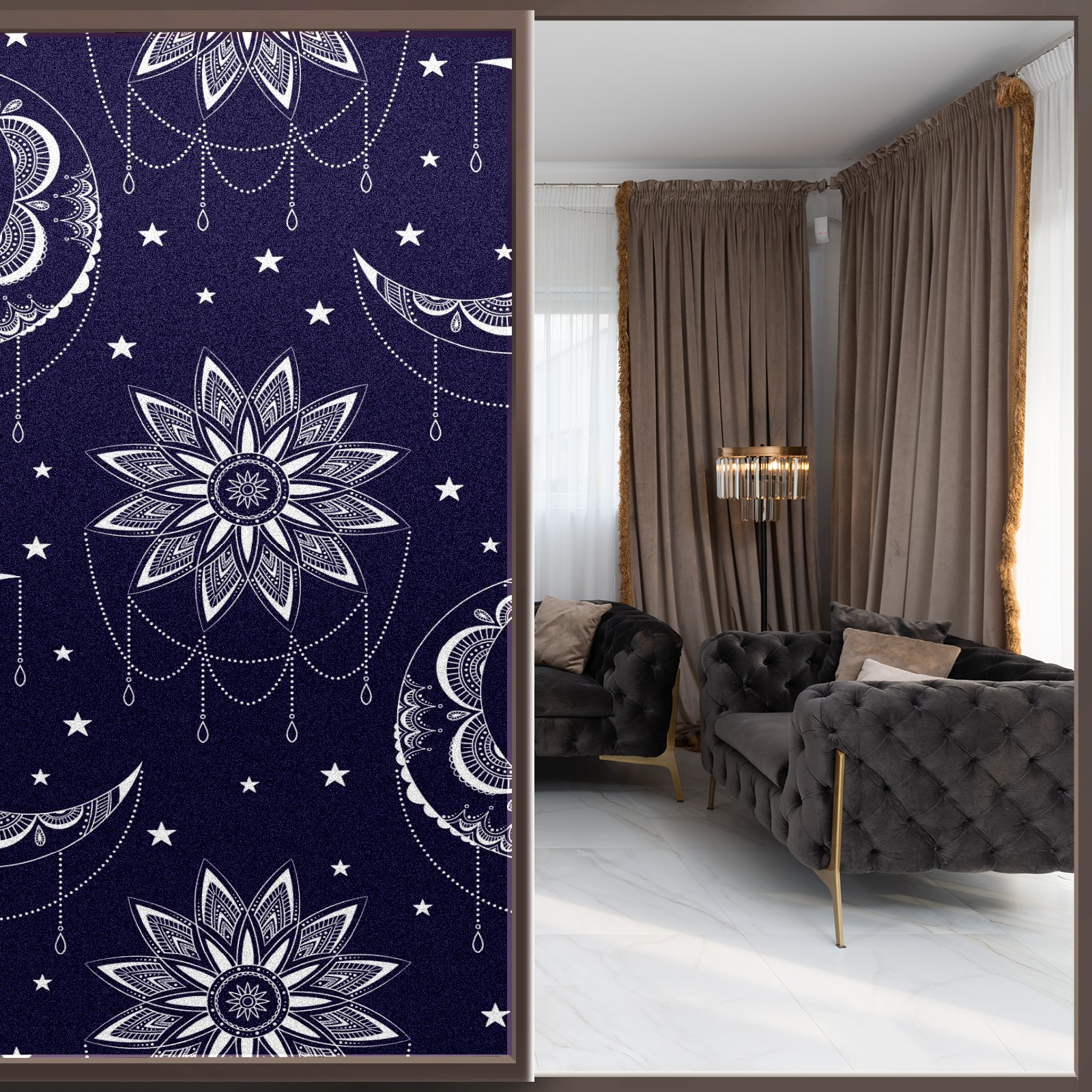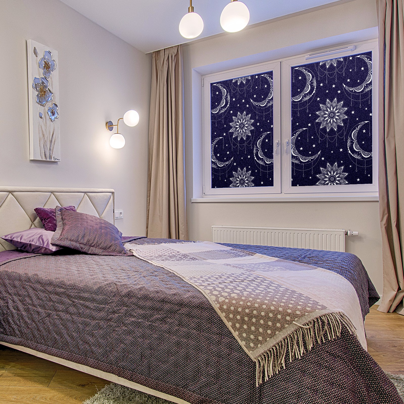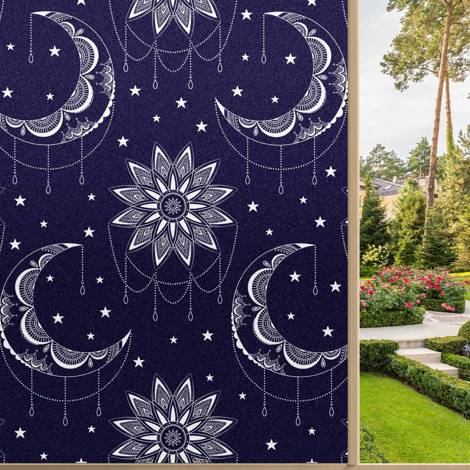 Static Cling Decorative Window Film Frosted Privacy Film Window Clings for Glass Windows No Glue Window Sticker for Bathroom Bedroom Office Abstract Boho Moon Sun Stars