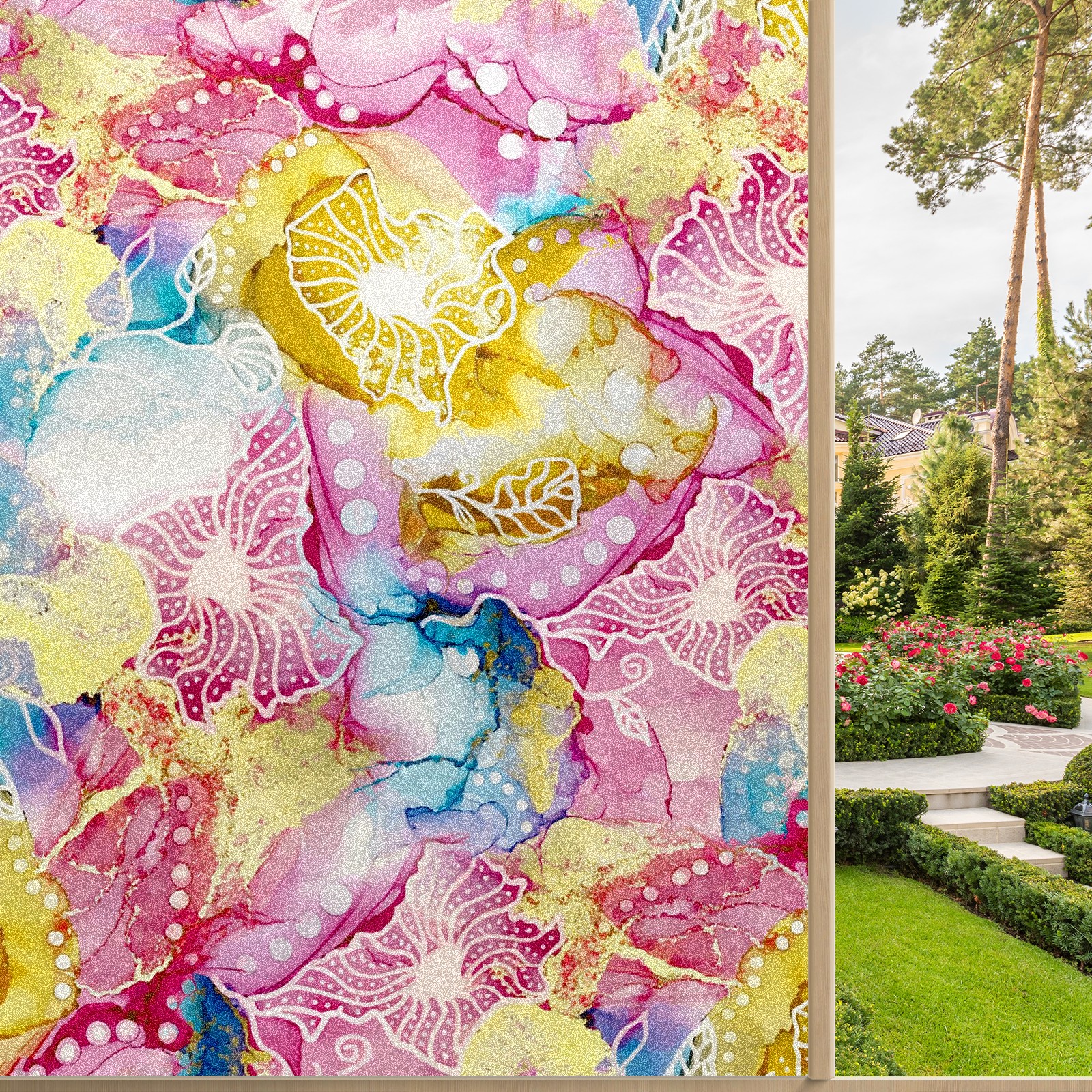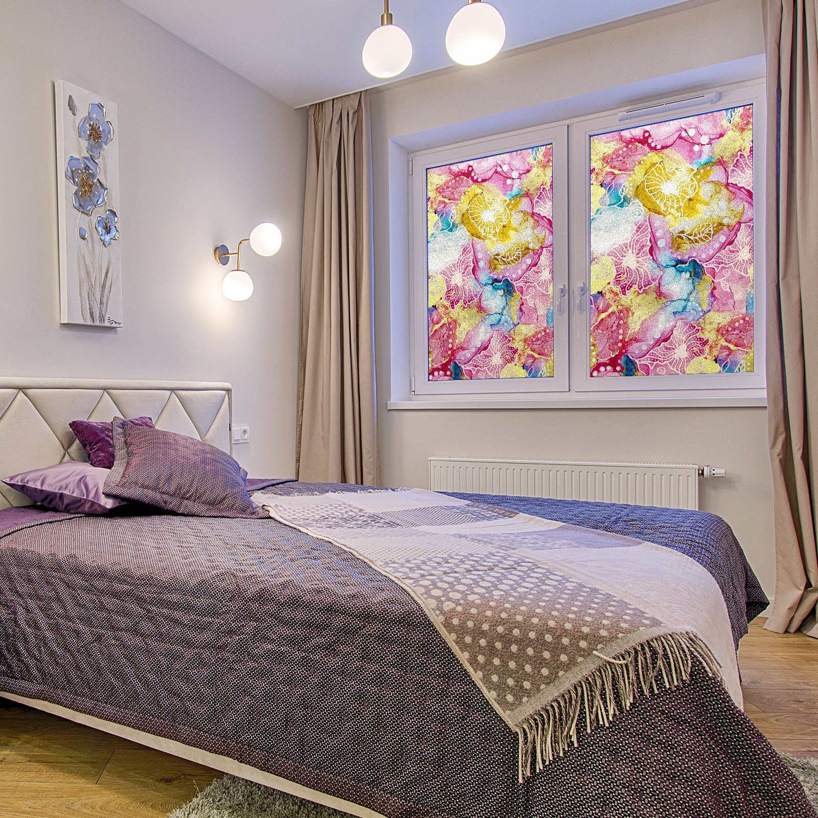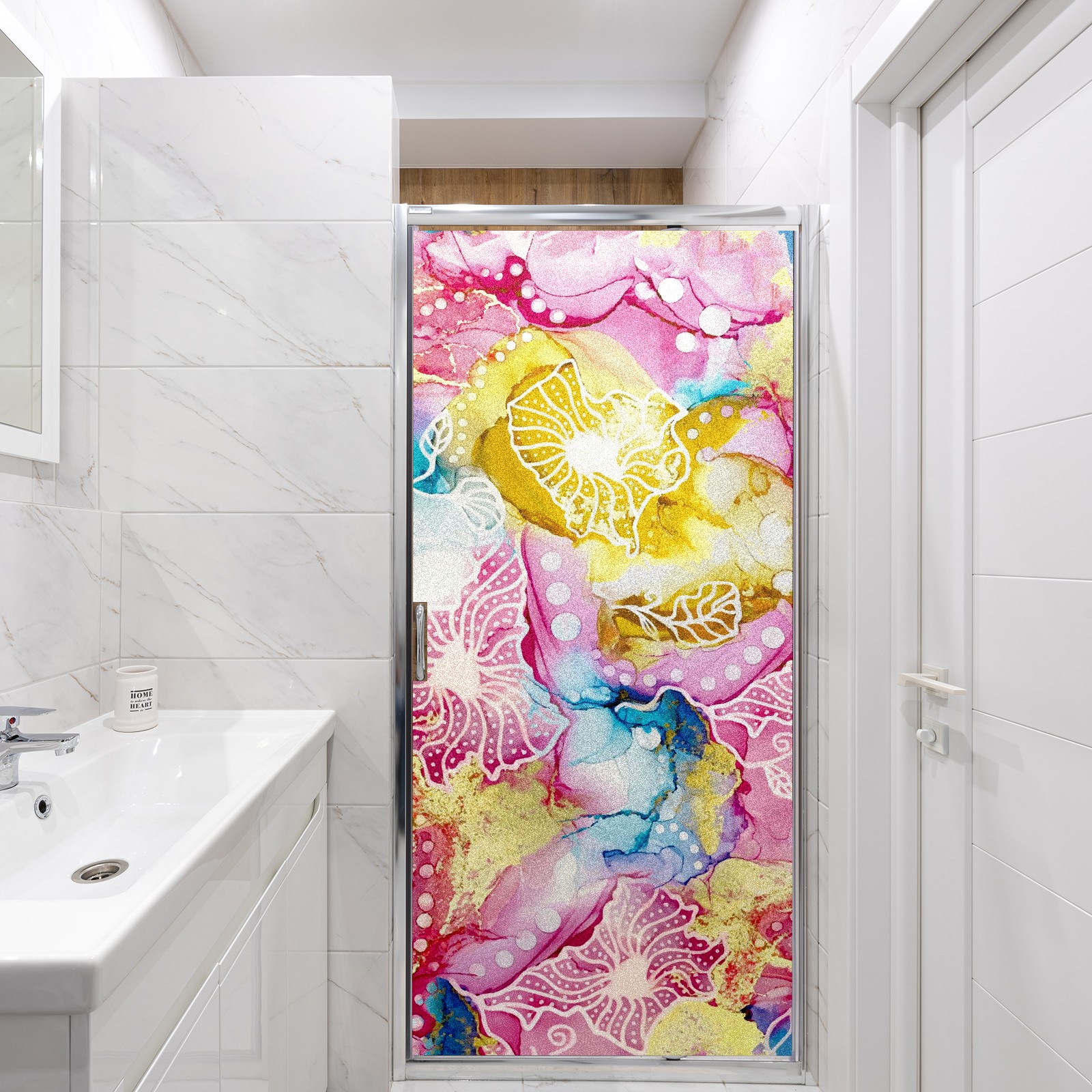 Static Cling Decorative Window Film Frosted Privacy Film Window Clings for Glass Windows No Glue Window Sticker for Bathroom Bedroom Office Pink Yellow And Blue Floral Tie Dye Marble