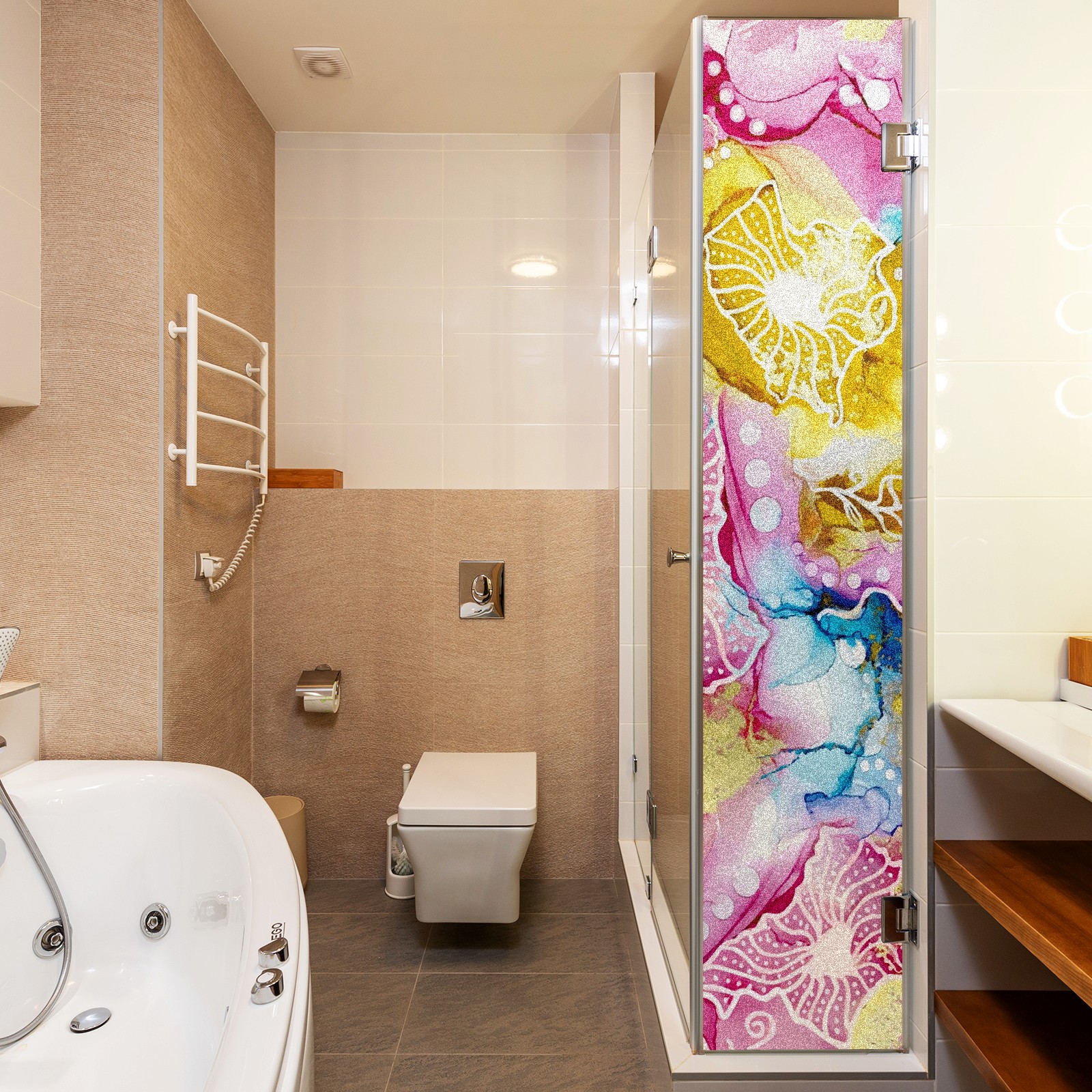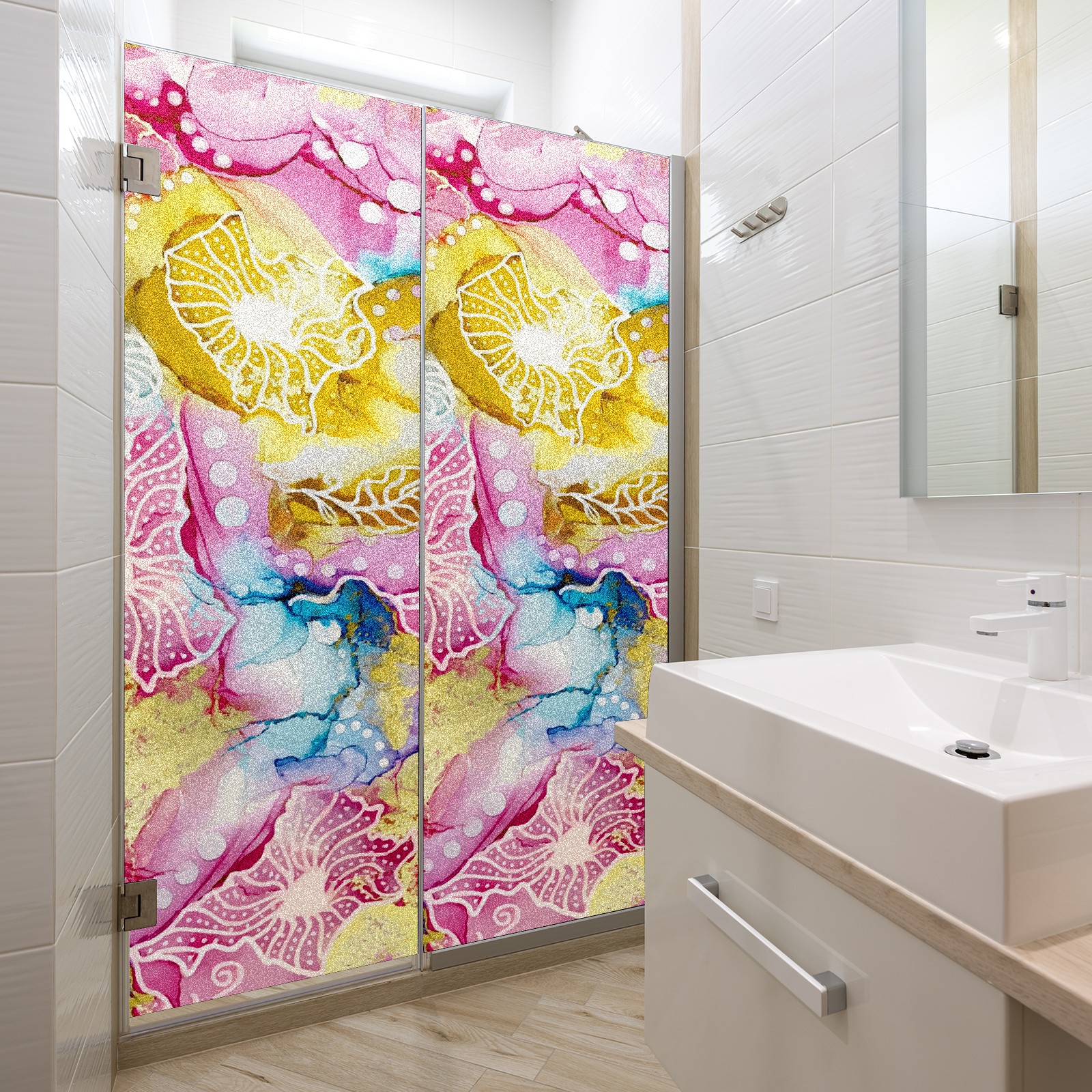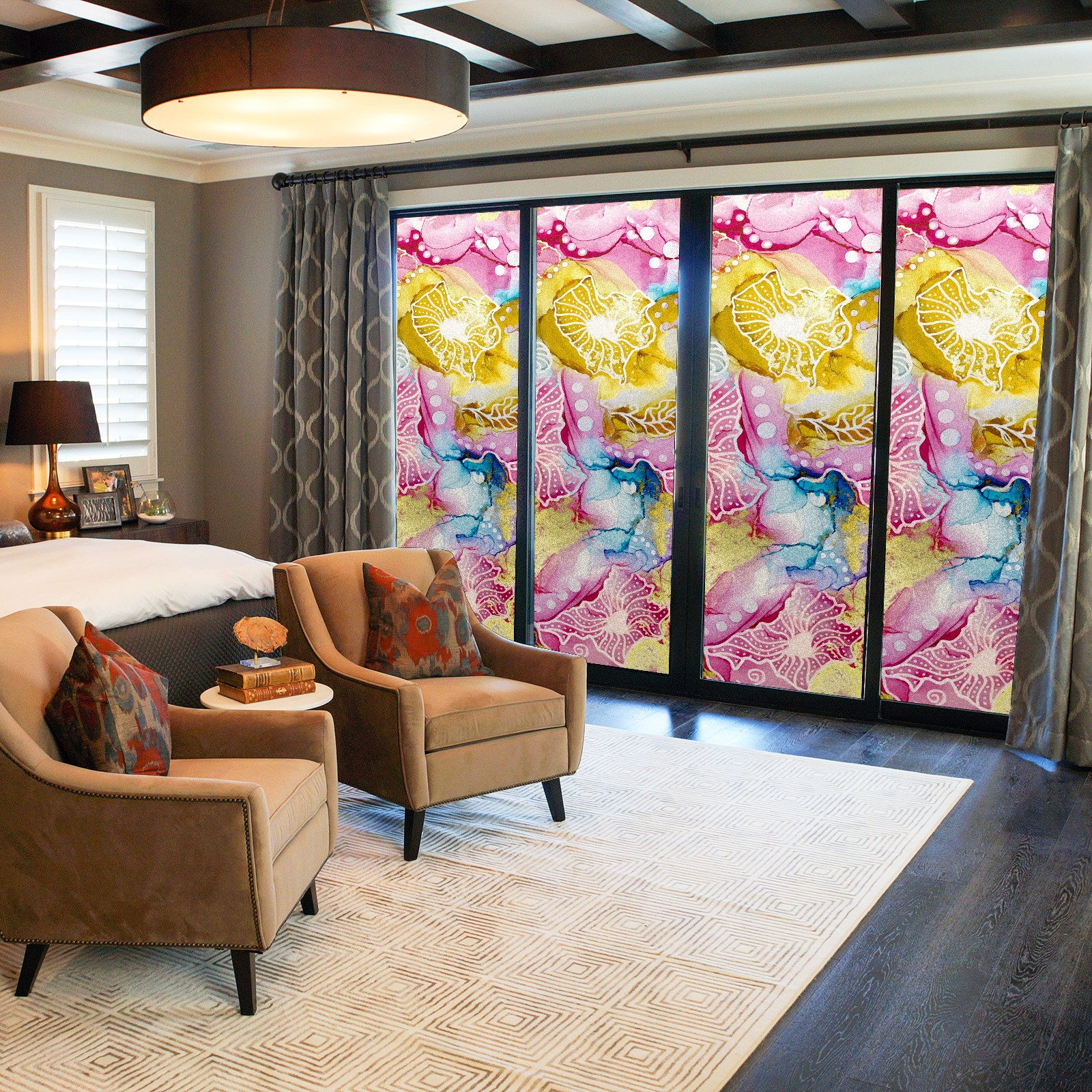Static Cling Decorative Window Film Frosted Privacy Film Window Clings for Glass Windows No Glue Window Sticker for Bathroom Bedroom Office Pink Yellow And Blue Floral Tie Dye Marble