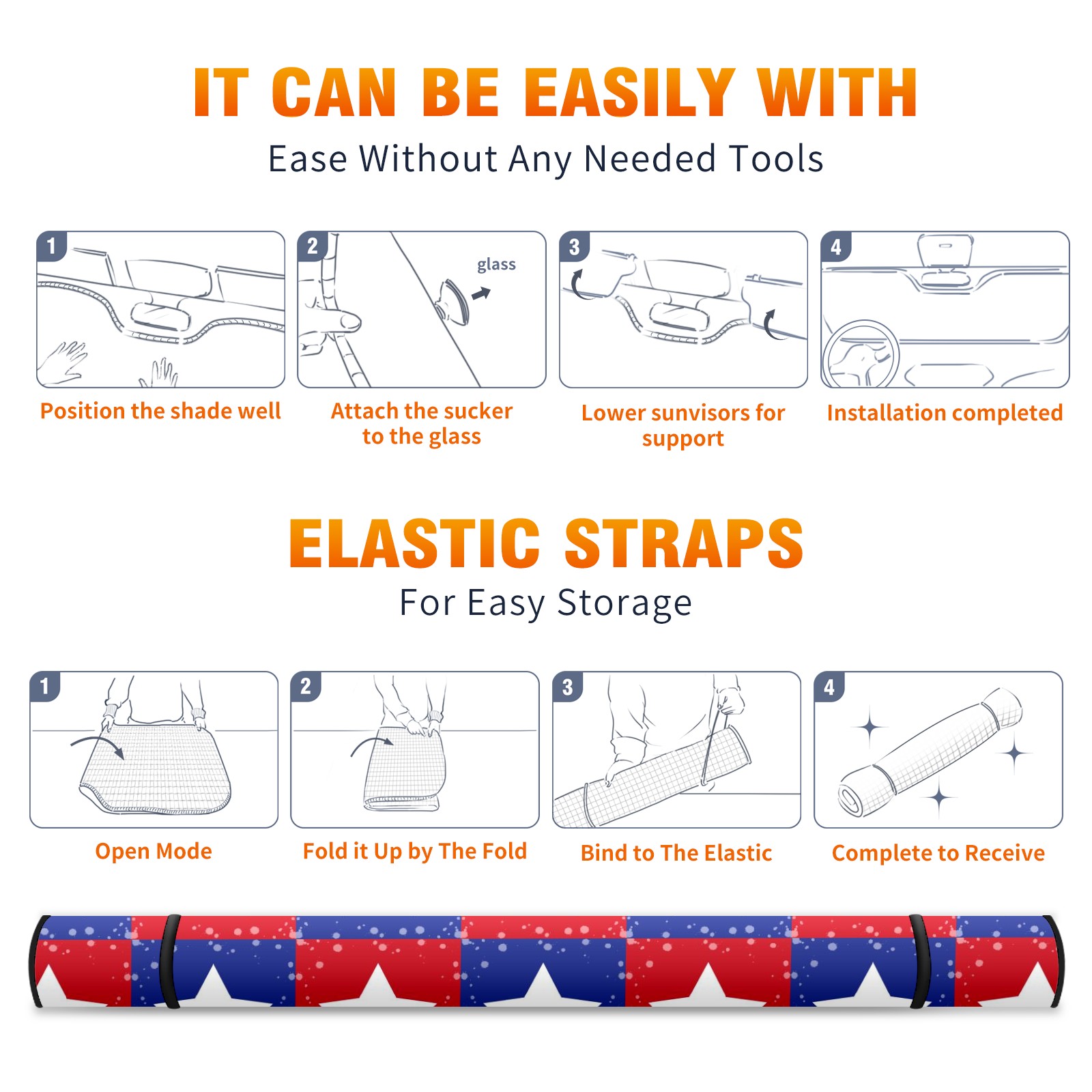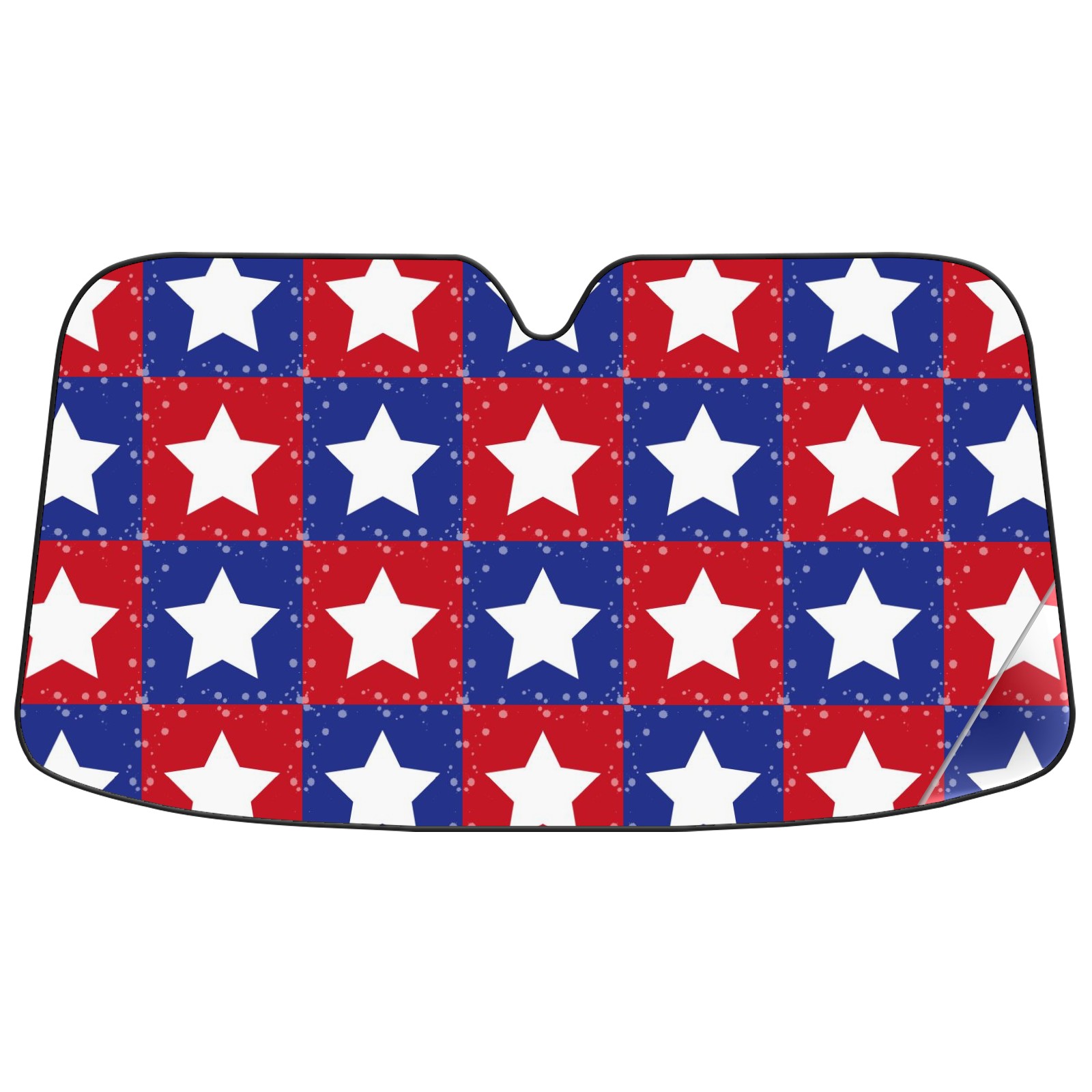 Car Windshield Sun Shade for Front Window Patriotic Stars Grid Foldable Vehicle Windshield Car Sun Visor Covers Automotive Window Protector Car Camping Privacy Sun Blocker