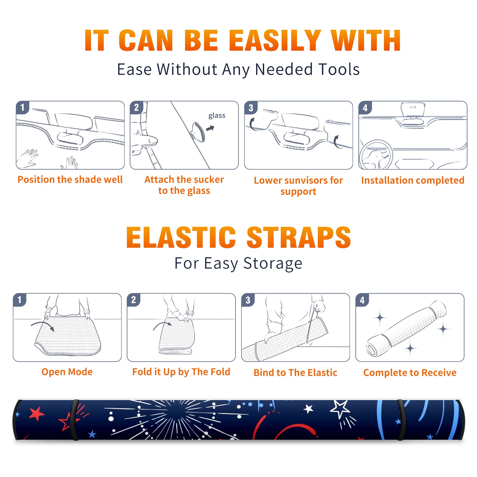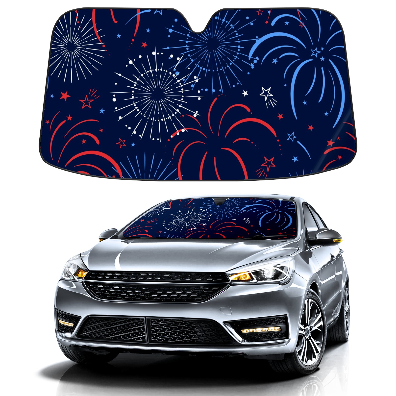 Car Windshield Sun Shade for Front Window Fun Firework American Independence Day Foldable Vehicle Windshield Car Sun Visor Covers Automotive Window Protector Car Camping Privacy Sun Blocker