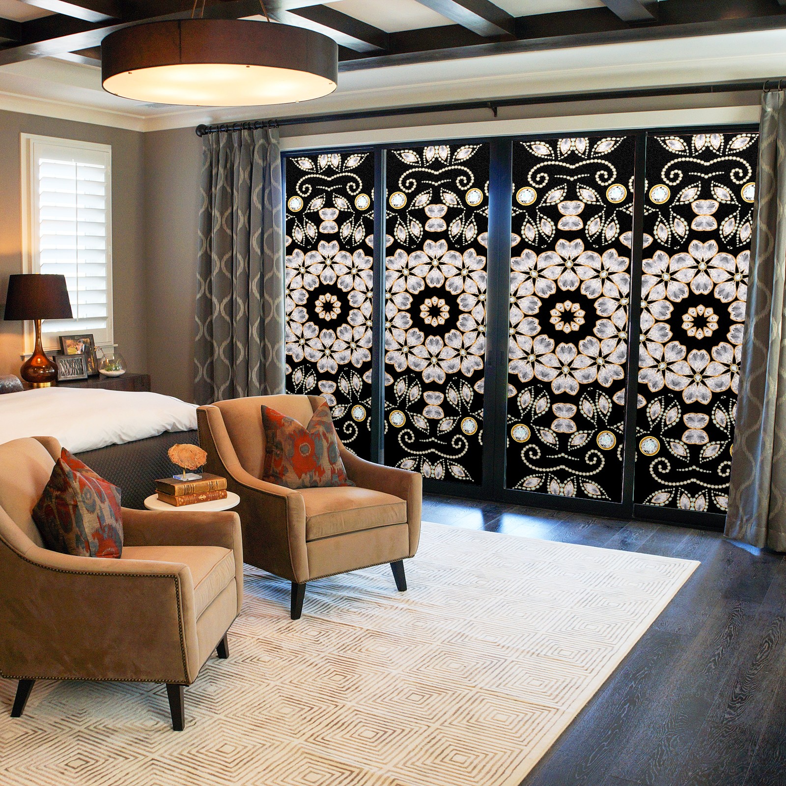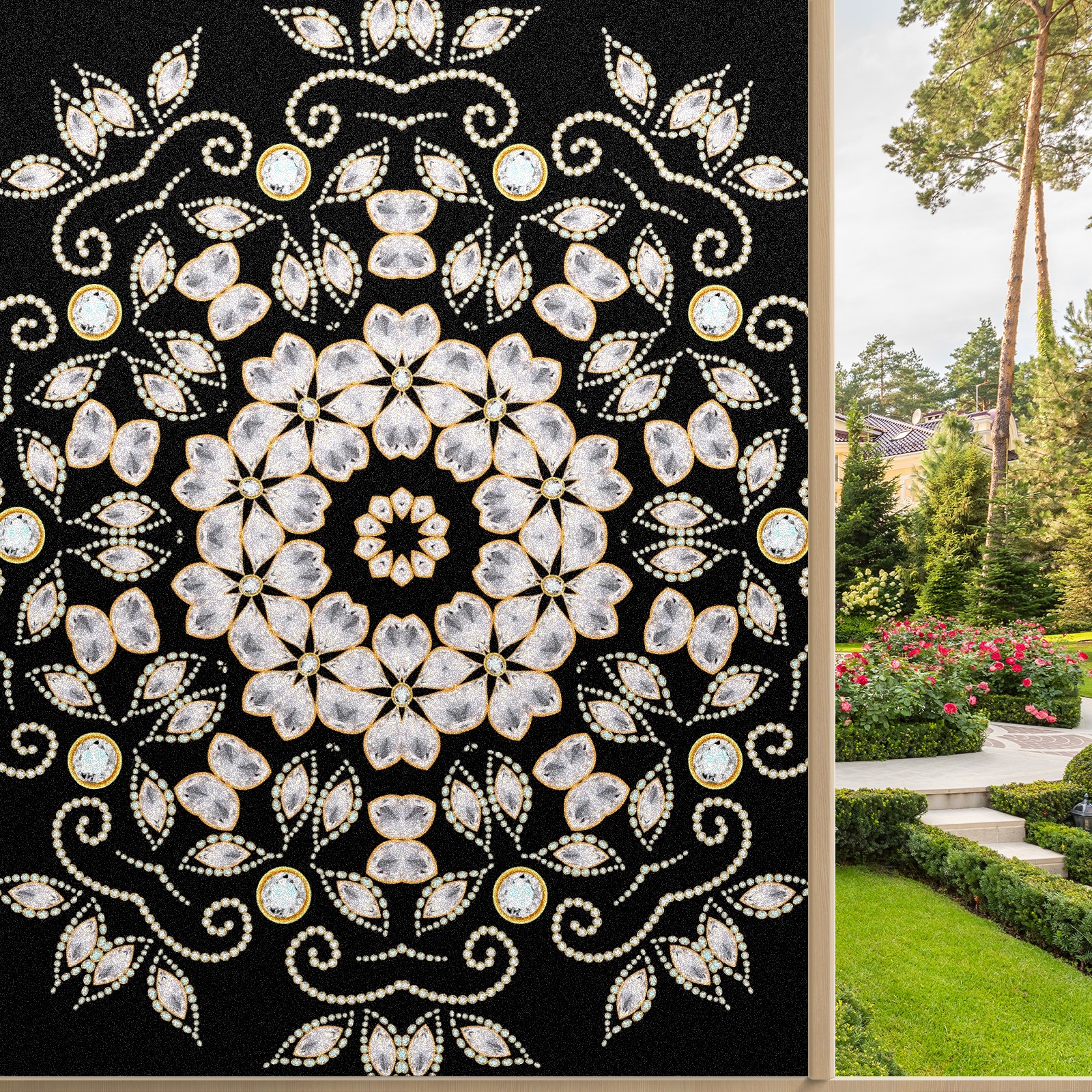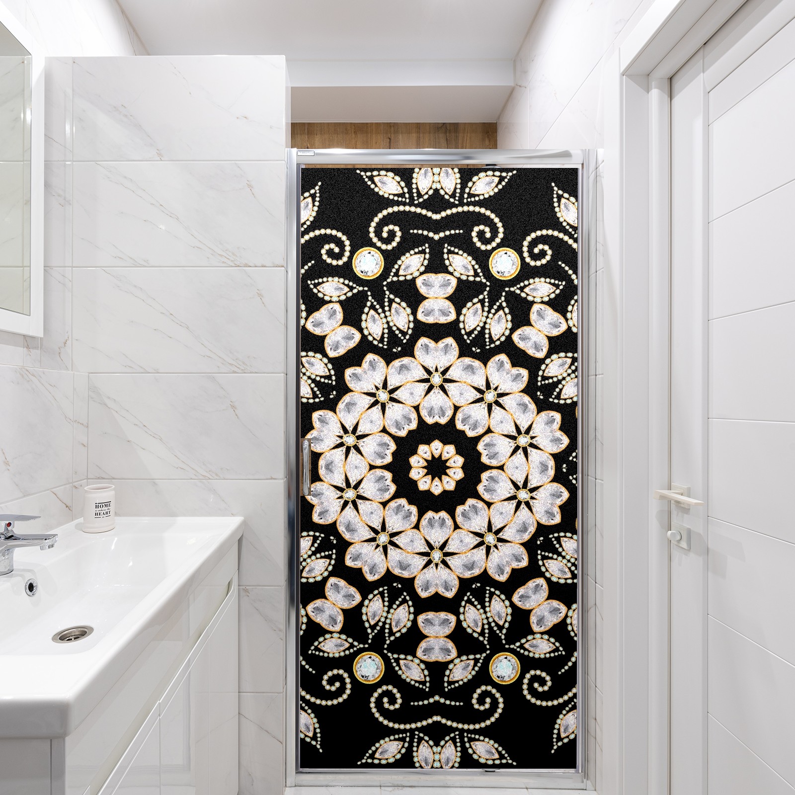 Static Cling Decorative Window Film Frosted Privacy Film Window Clings for Glass Windows No Glue Window Sticker for Bathroom Bedroom Office Retro Geometric Gemstone