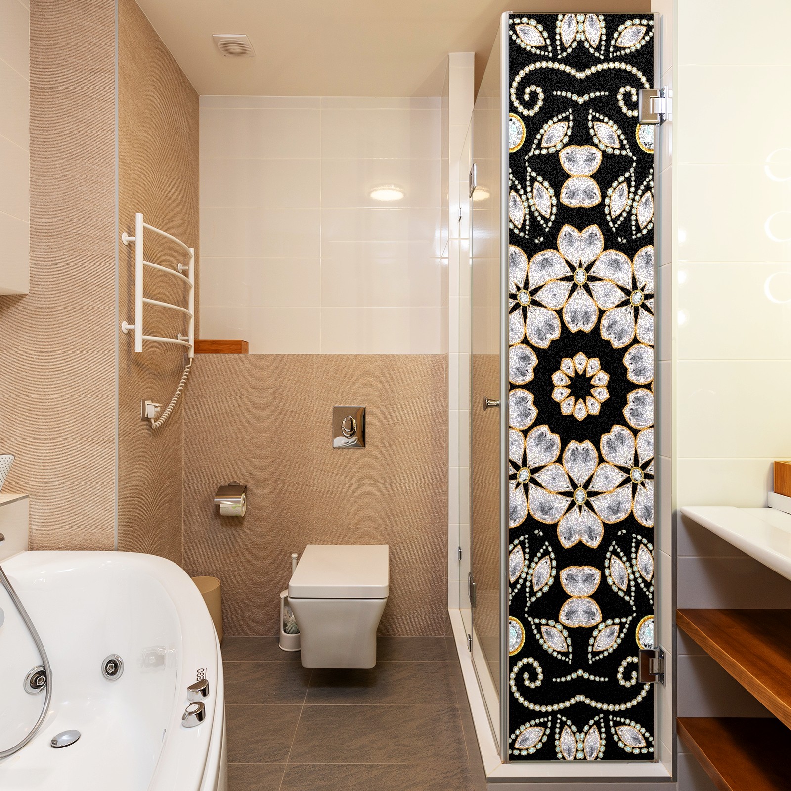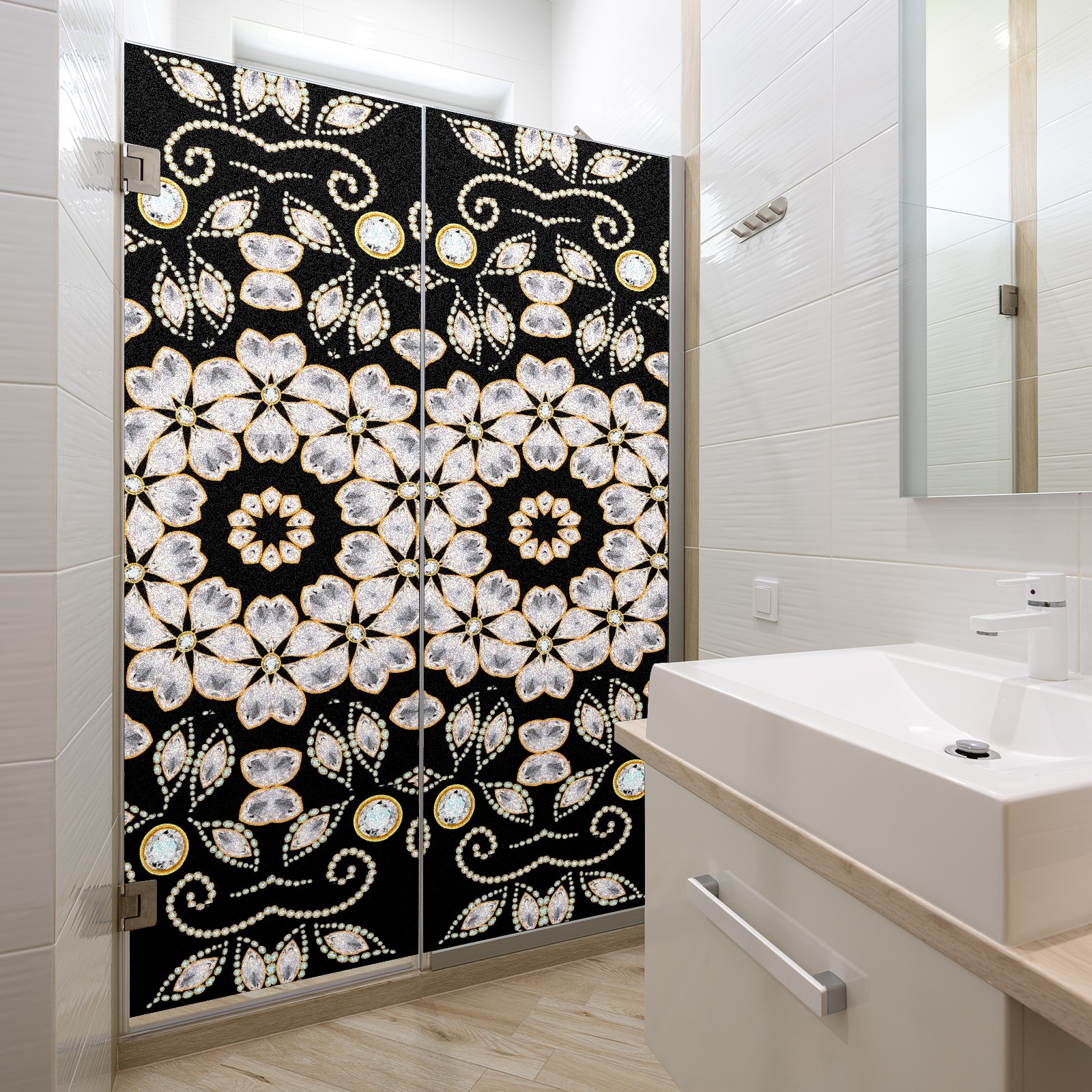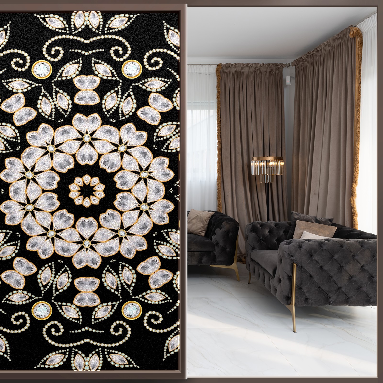 Static Cling Decorative Window Film Frosted Privacy Film Window Clings for Glass Windows No Glue Window Sticker for Bathroom Bedroom Office Retro Geometric Gemstone