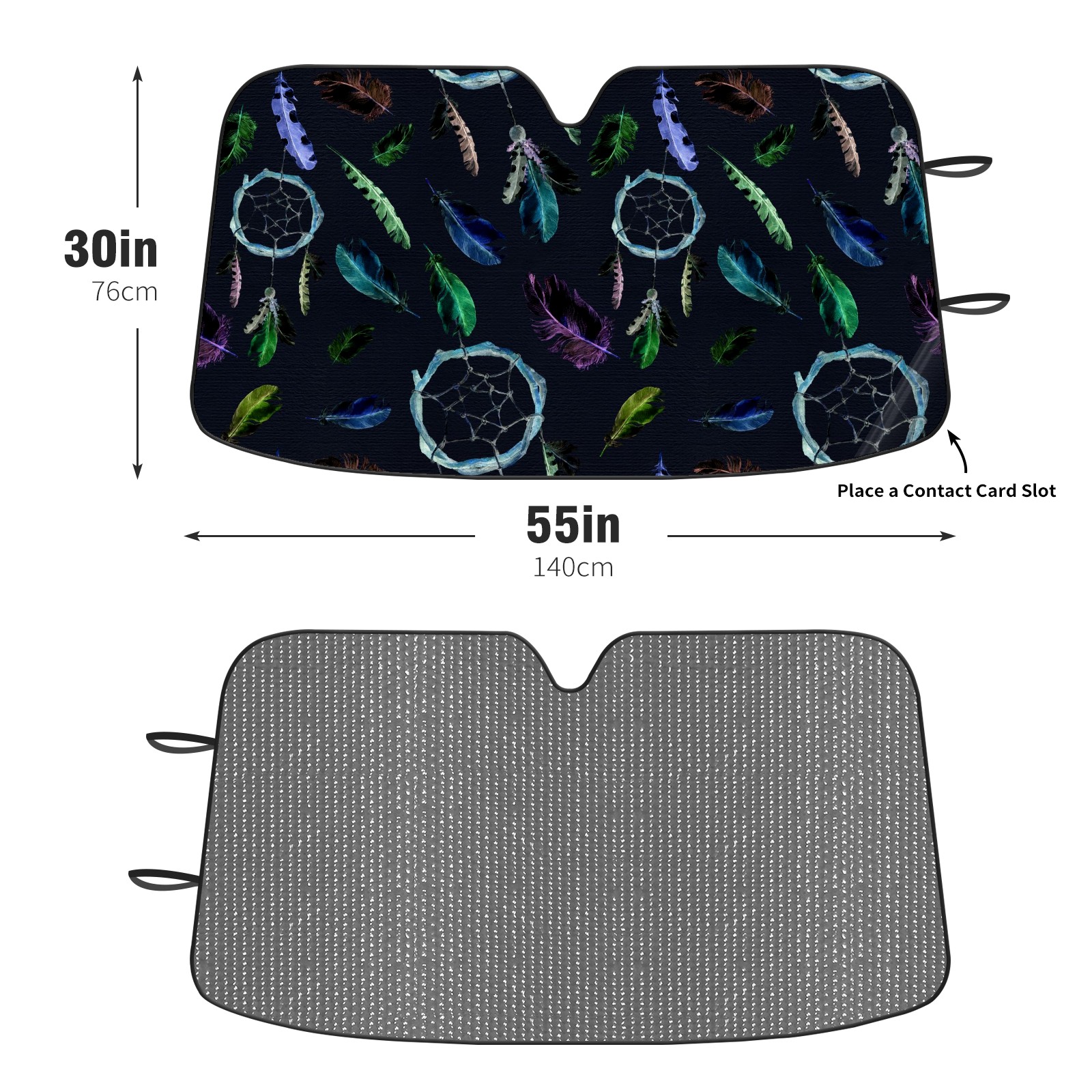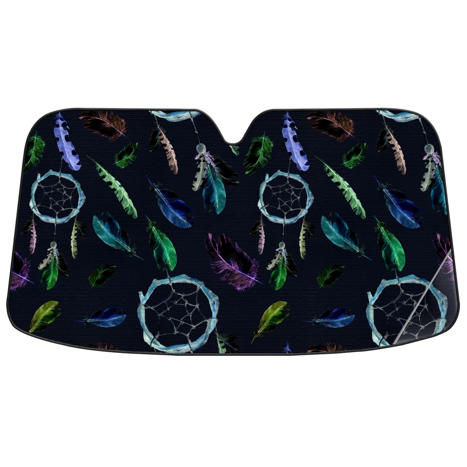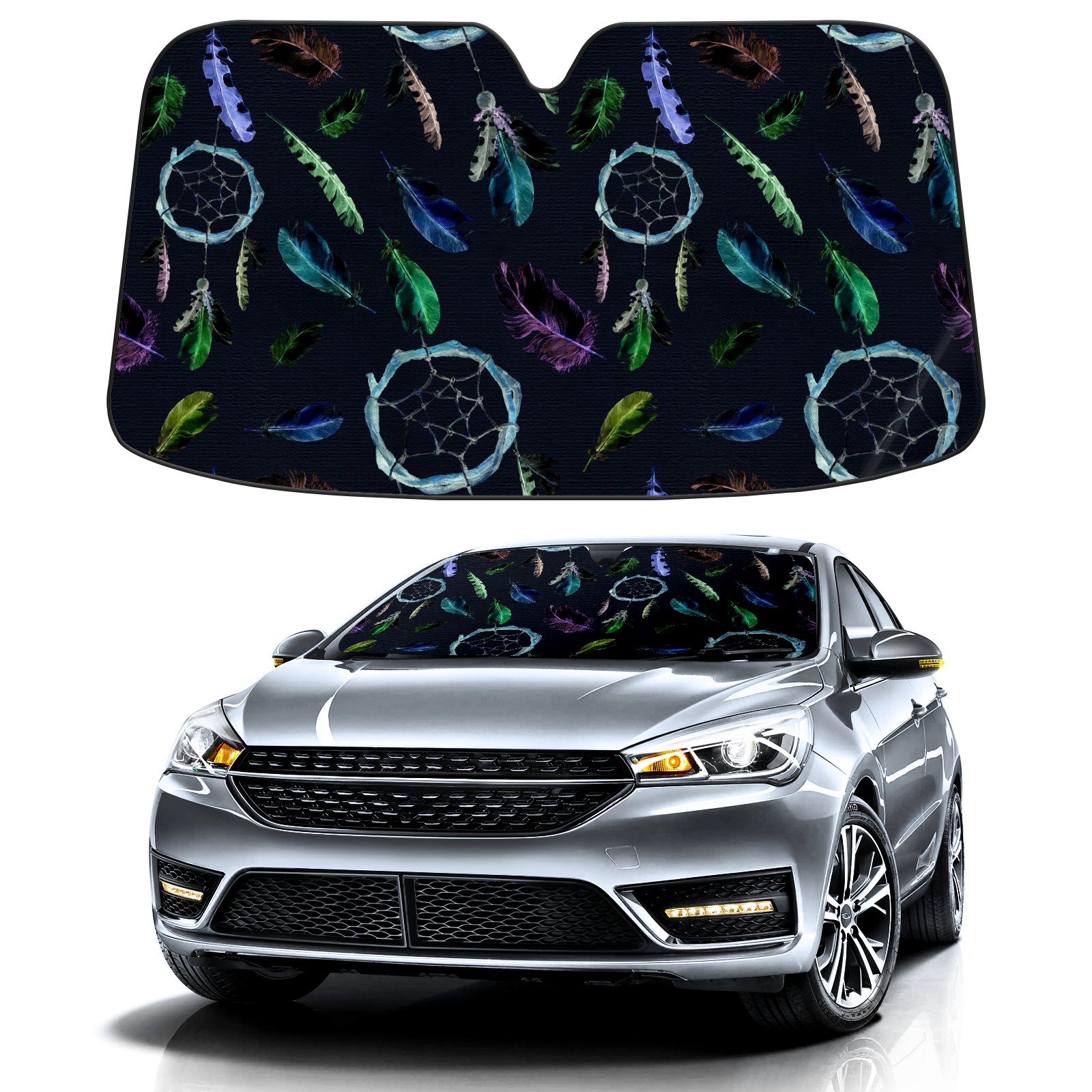 Car Windshield Sun Shade for Front Window Dreamcatcher Feather On Black Background Foldable Vehicle Windshield Car Sun Visor Covers Automotive Window Protector Car Camping Privacy Sun Blocker