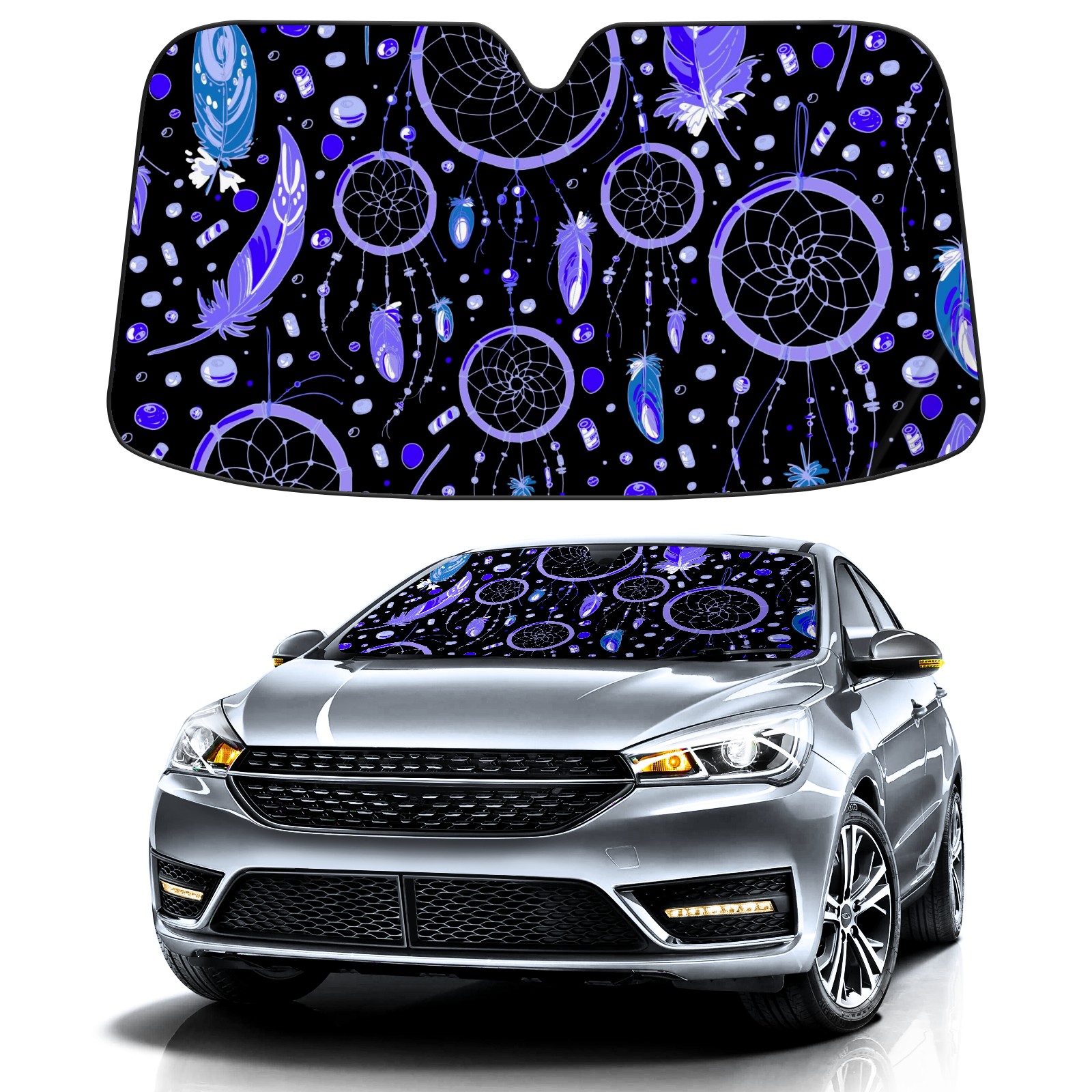Car Windshield Sun Shade for Front Window Dreamcatcher Feathers Ethnic Foldable Vehicle Windshield Car Sun Visor Covers Automotive Window Protector Car Camping Privacy Sun Blocker