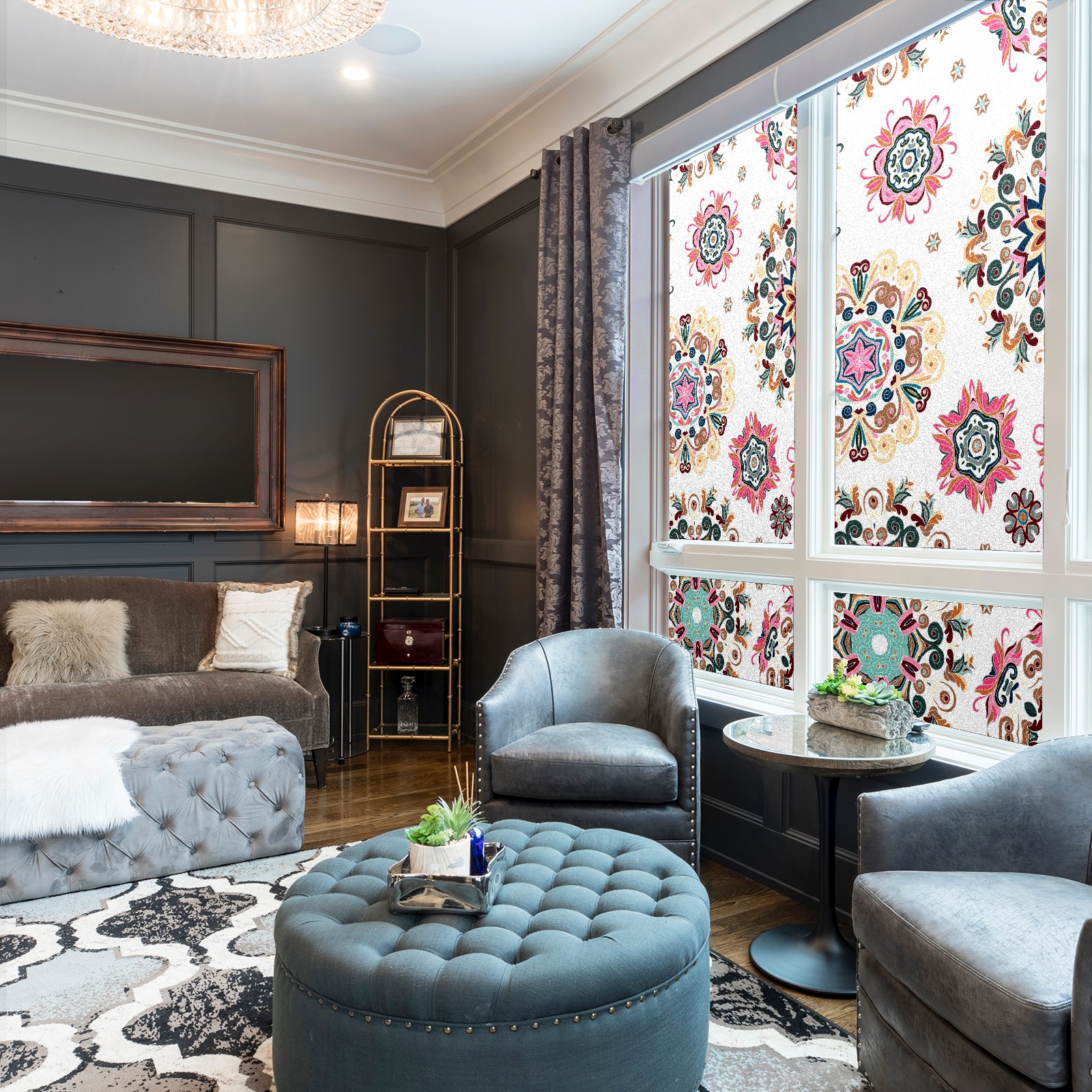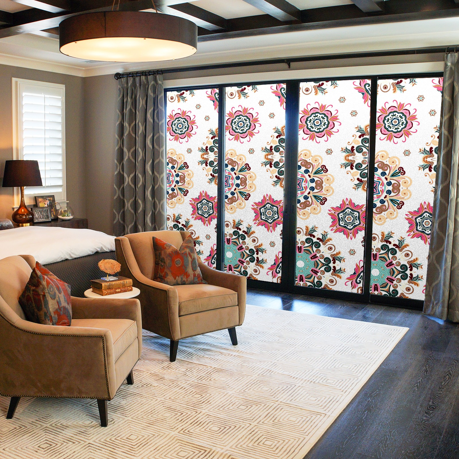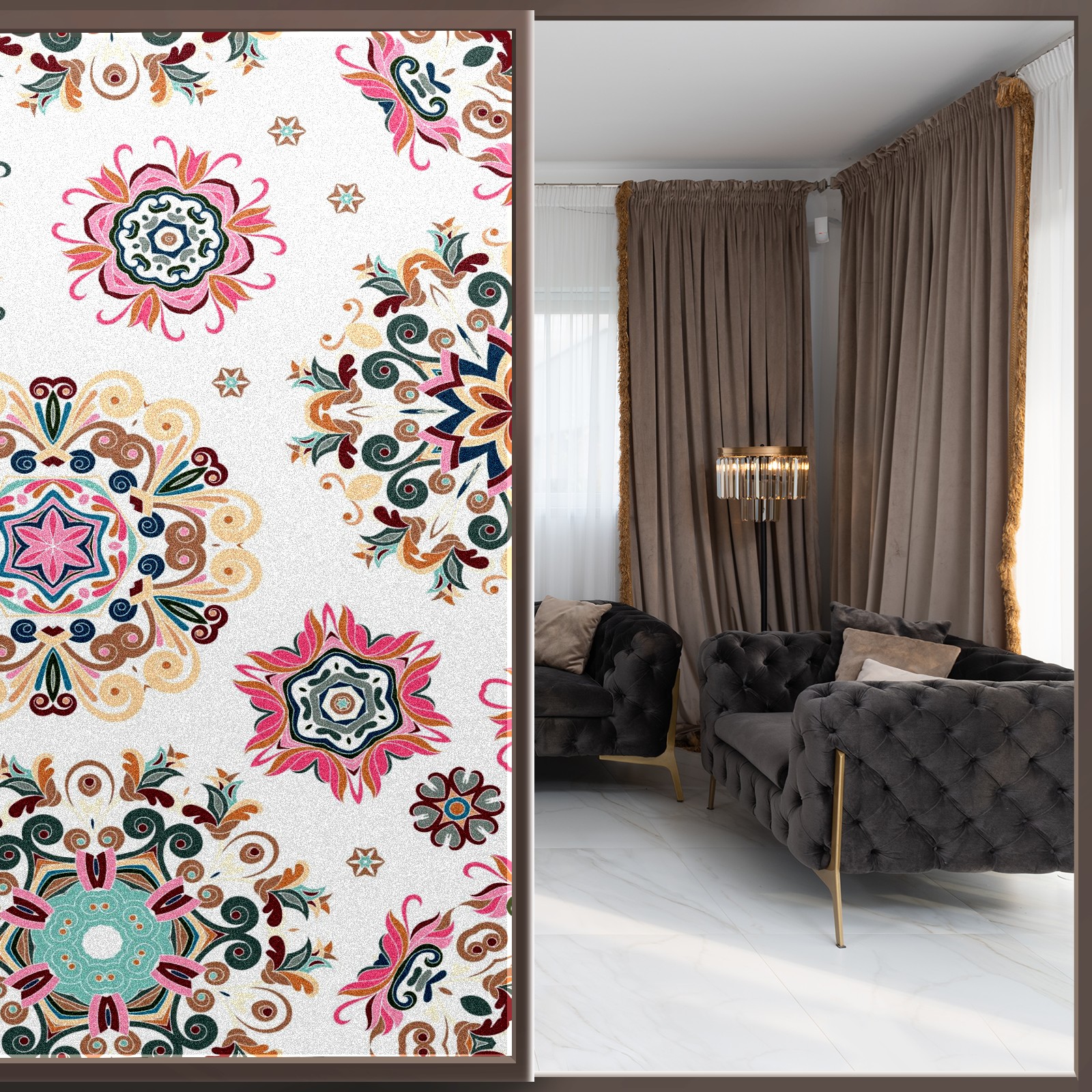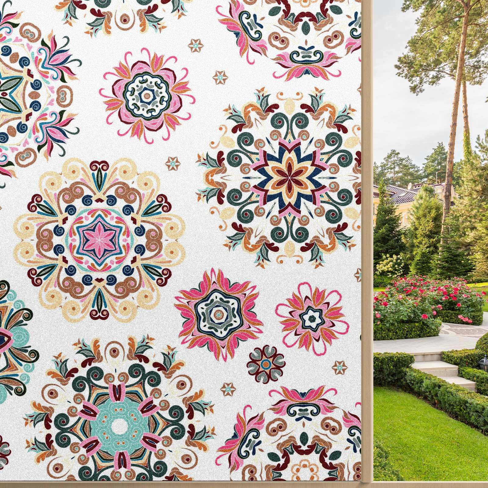 Static Cling Decorative Window Film Frosted Privacy Film Window Clings for Glass Windows No Glue Window Sticker for Bathroom Bedroom Office Mandala Snowflakes
