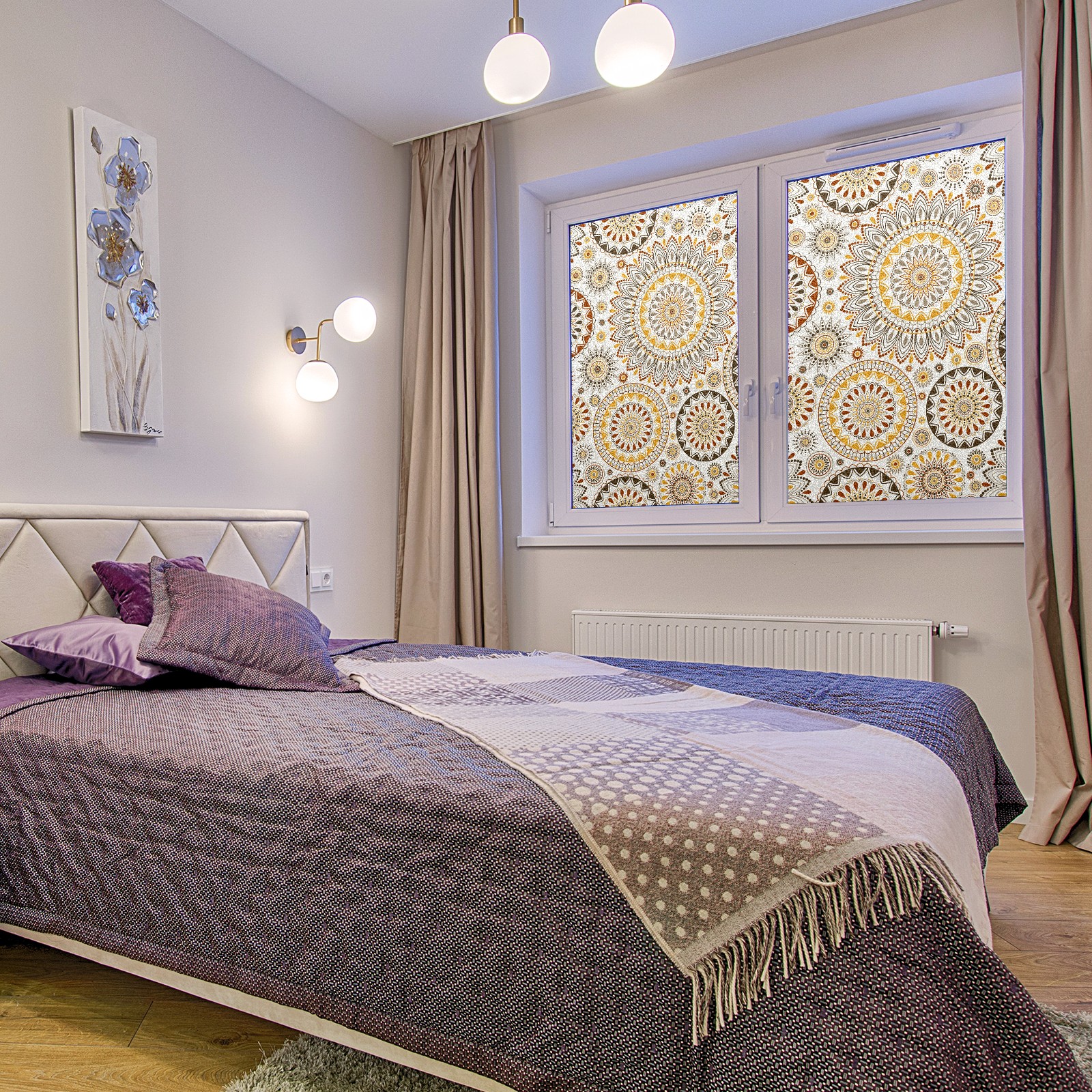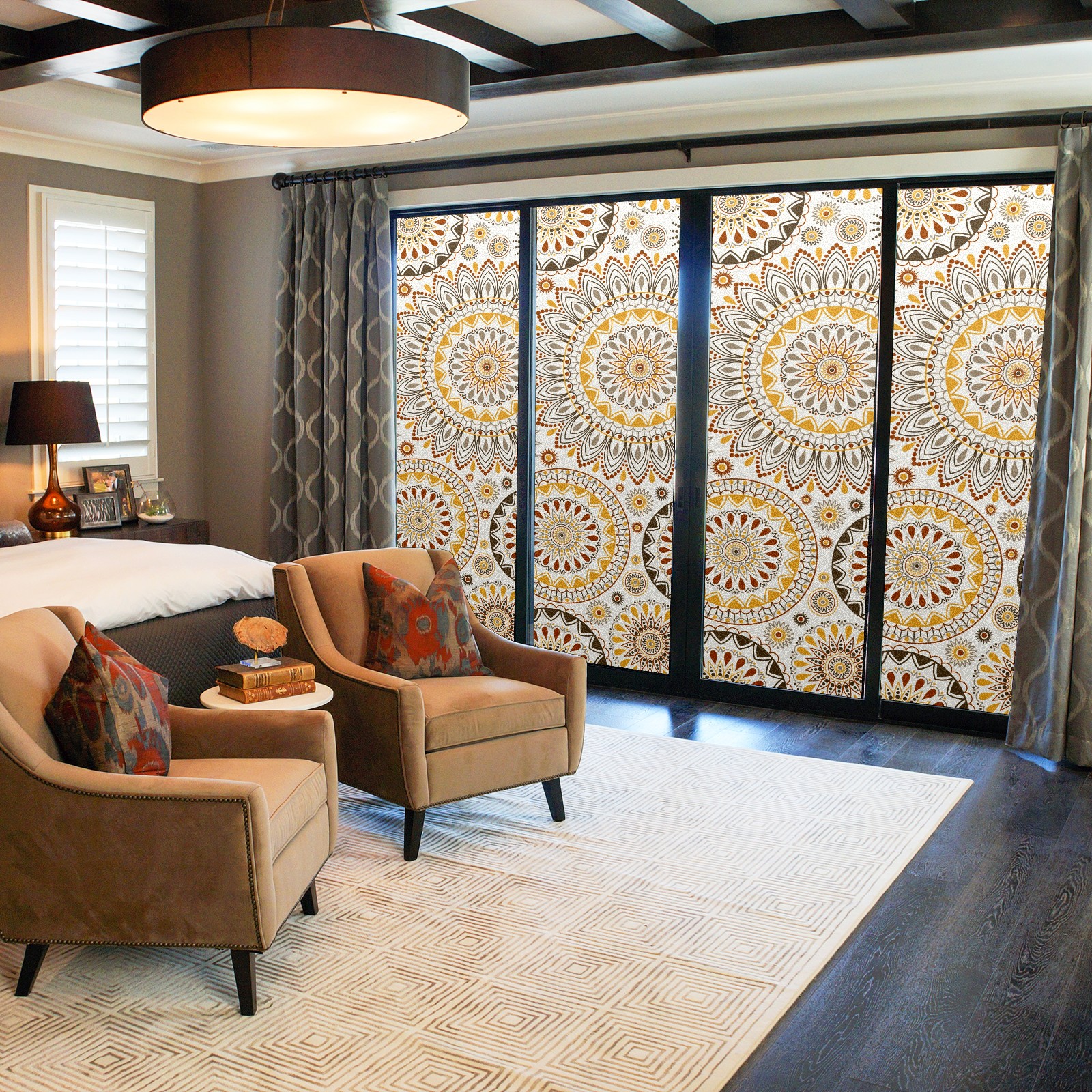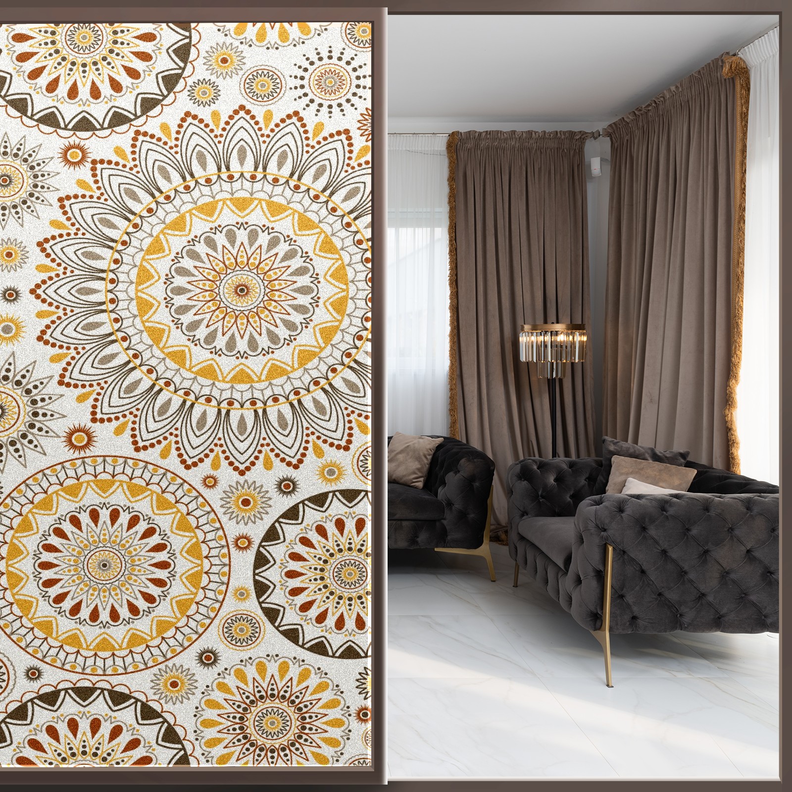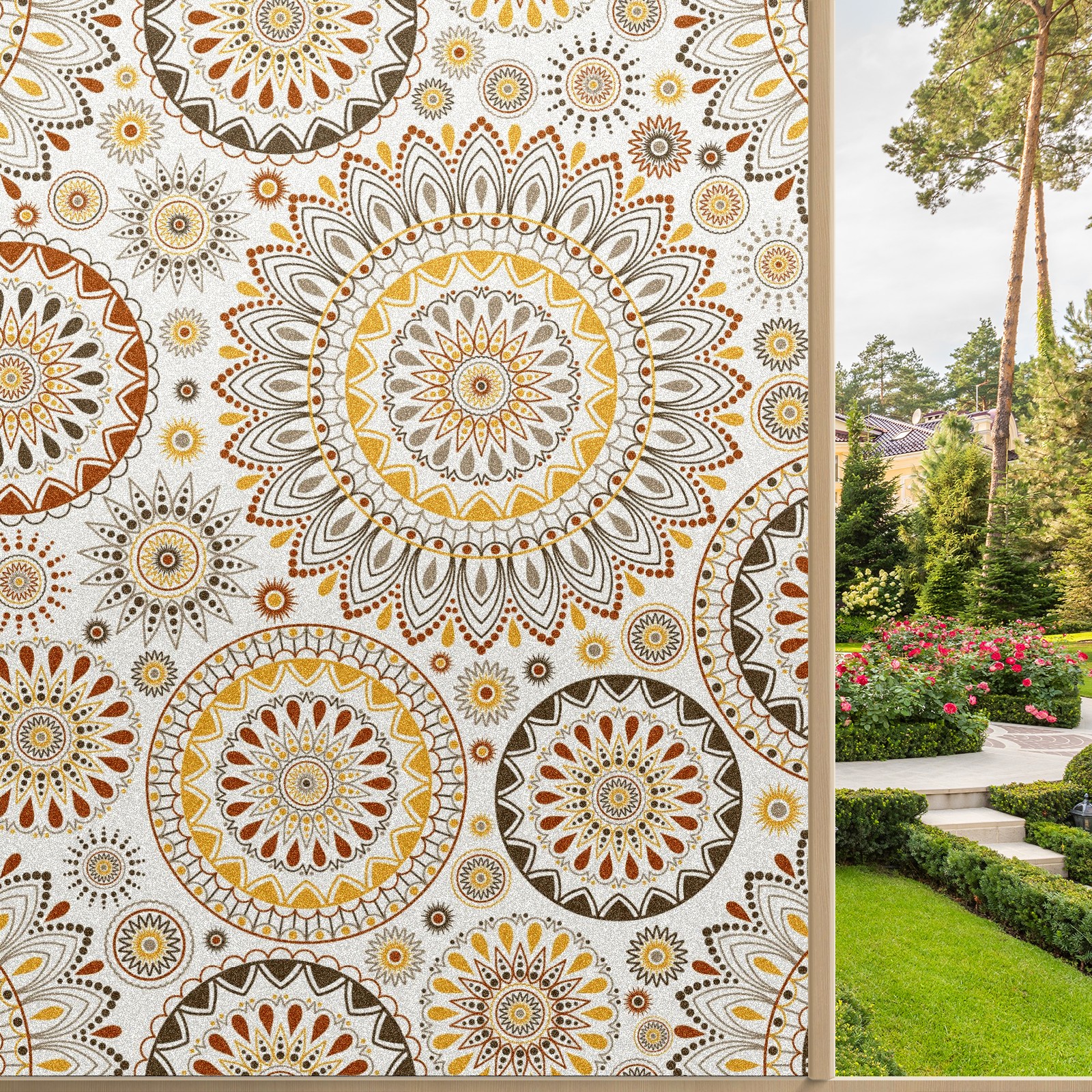 Static Cling Decorative Window Film Frosted Privacy Film Window Clings for Glass Windows No Glue Window Sticker for Bathroom Bedroom Office Mandala Flowers And Leaves