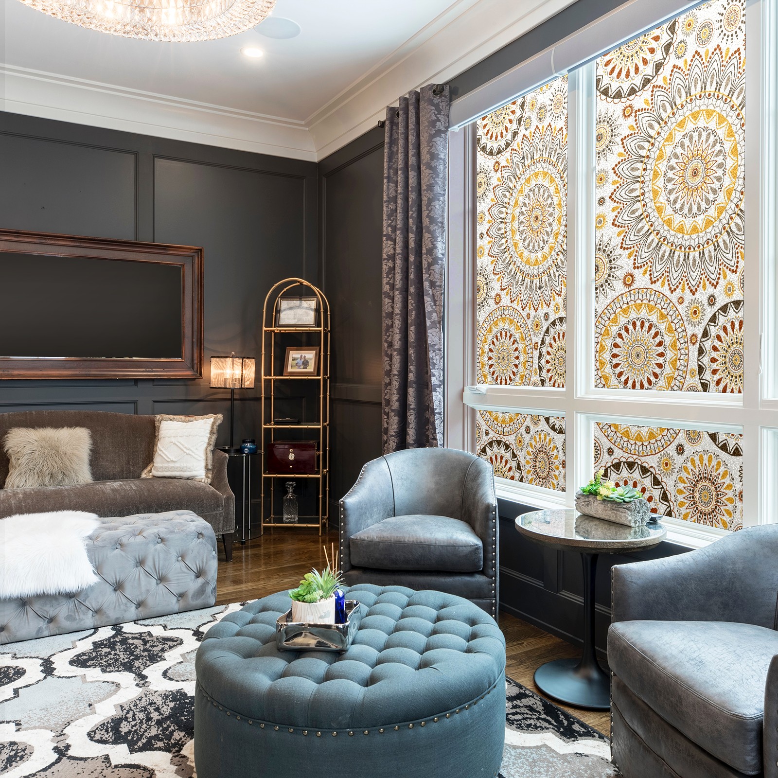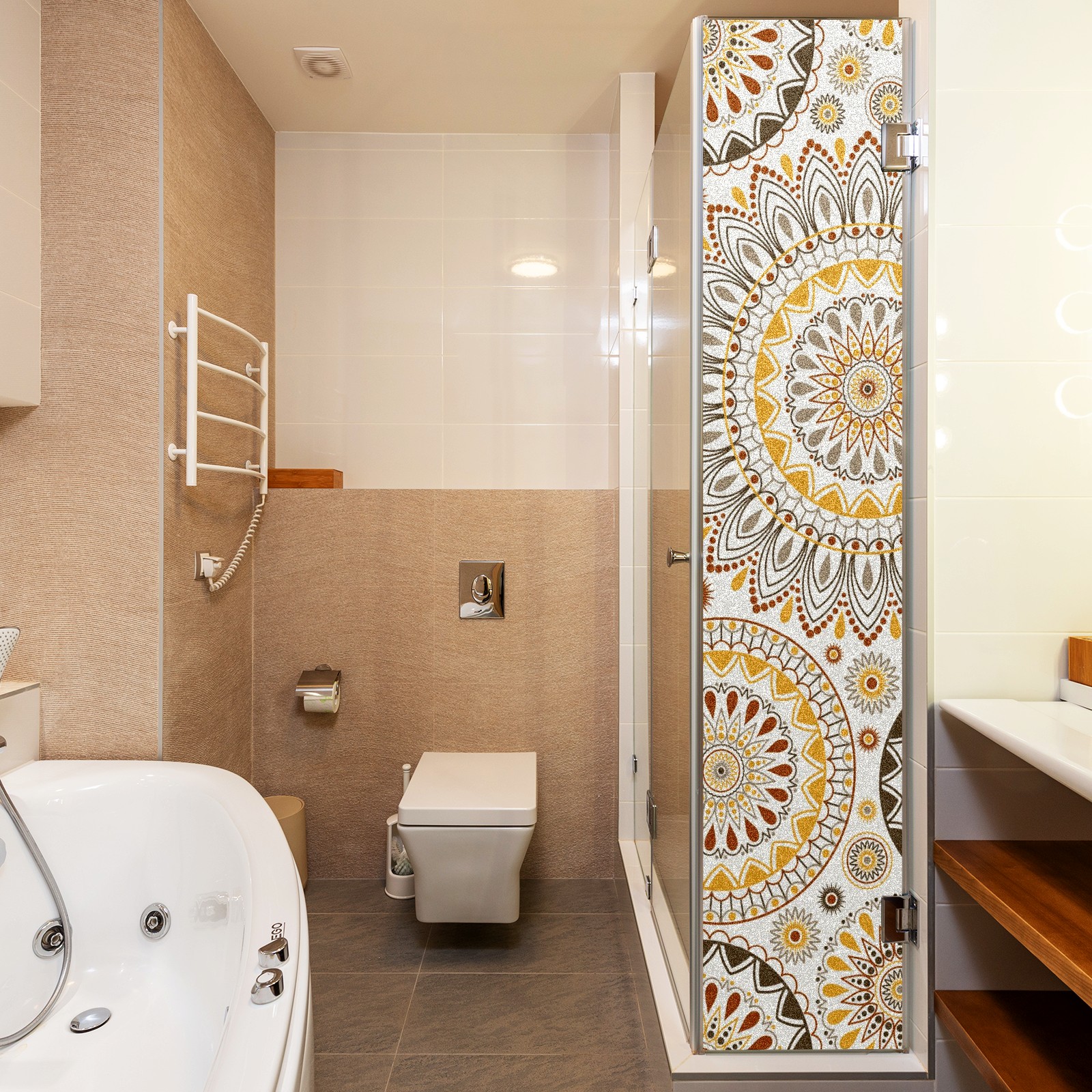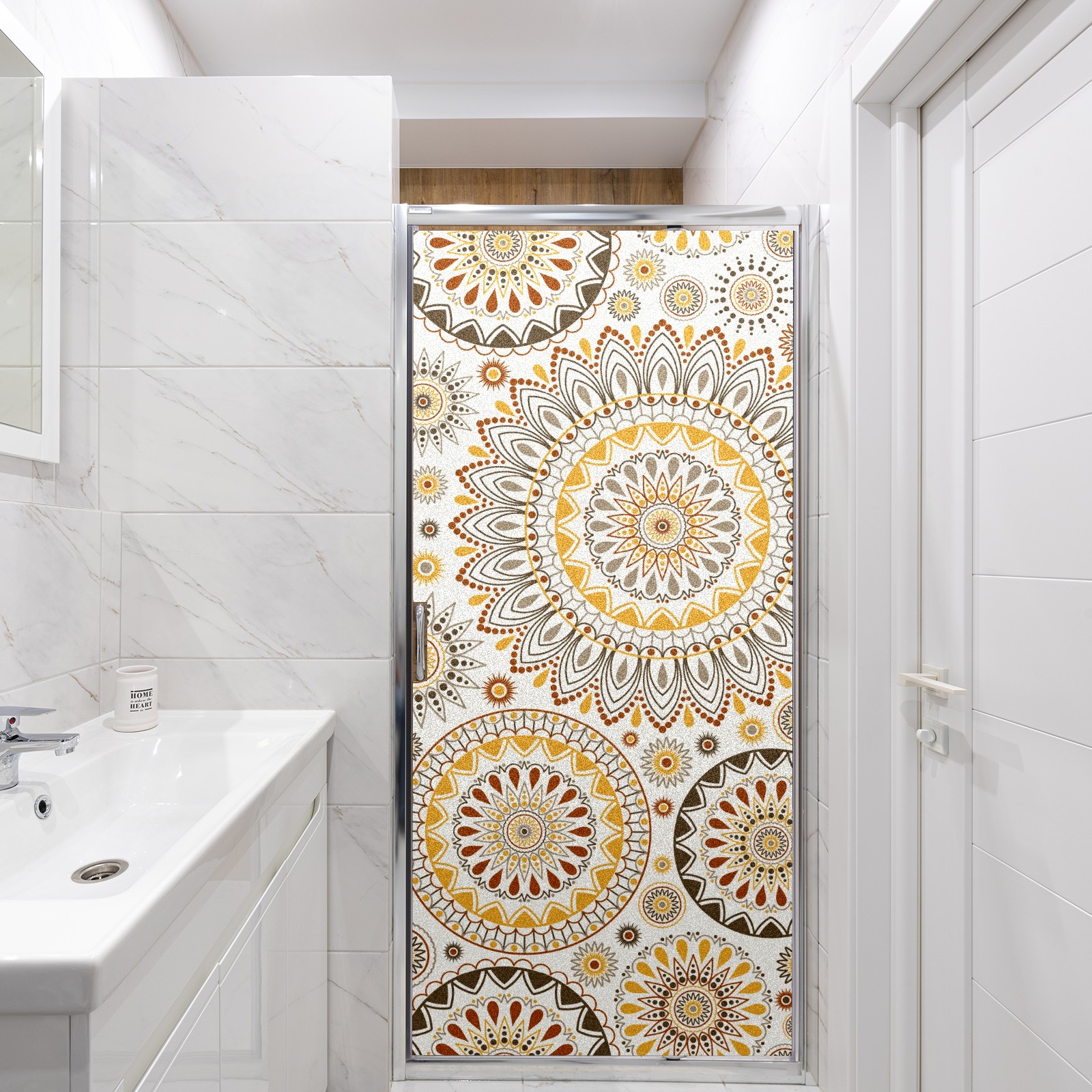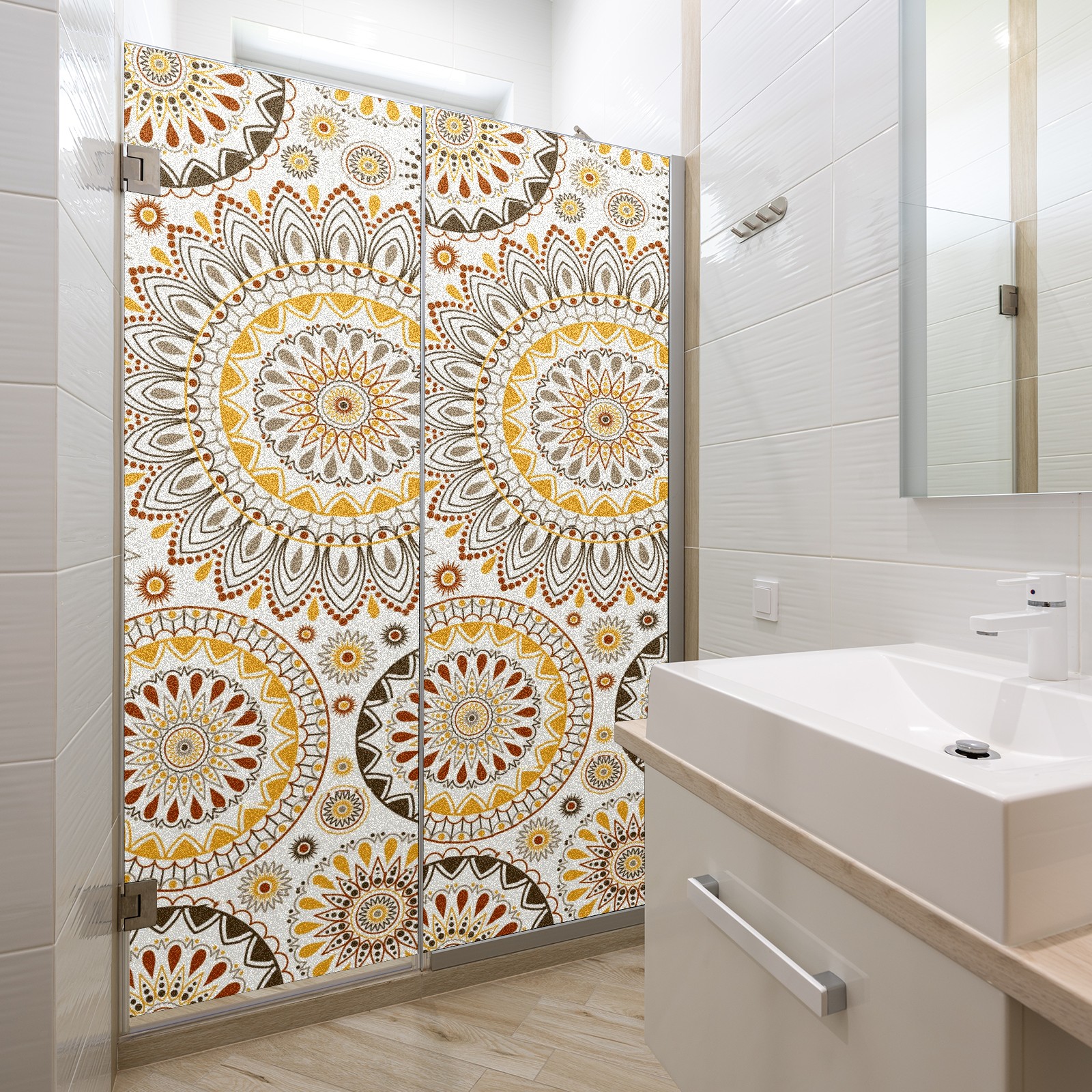 Static Cling Decorative Window Film Frosted Privacy Film Window Clings for Glass Windows No Glue Window Sticker for Bathroom Bedroom Office Mandala Flowers And Leaves