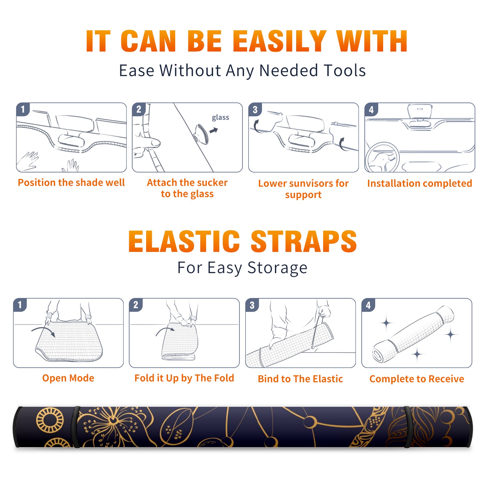 Diameter /Size 63"L x 33.5"W</b><br> Made from excellent materials which makes it sturdy and protects the car from the sun. Easy to use and pack. Makes the interior of the car cooler.You can easily stash the sunshade in the storage bag or store long term.It open and closes easy. Also the leather storage bag is durable and easy to put the umbrella back into.This windshield sunshade provides complete coverage and keeps your car interior cool under direct sun. It is easy to open and position under the windshield and around the rear-view mirror. Makes Your Car Easy To Identify, Perfect For Finding Your Car In Crowded Parking Lots And Garages.Great Choice: It Is A Great Gift For Dad, Boyfriend, Brother, Brother And Uncle, Friends, Classmates, Family And So On.<br> Notice:</b><br> Due To Difference Computer Monitors, The Color Maybe Slightly Different From Picture. As Different Measurement Methods, Measurement Data Will Float Within 2%.I Hope You Understand.<br> If You Have Any Question About The Item Please Do Not Hesitate To Contact Us Immediately And We Will Give You A Satisfactory Reply Within 24 Hours.