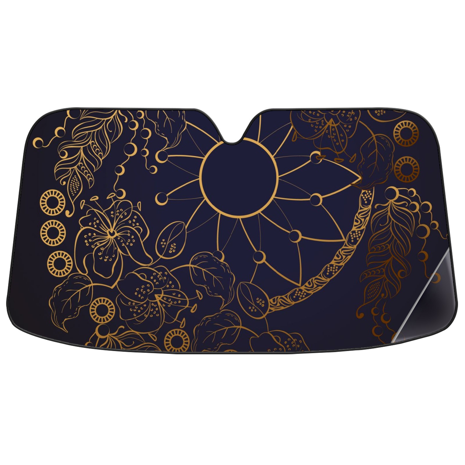 Car Windshield Sun Shade for Front Window Boho Golden Dreamcatcher Foldable Vehicle Windshield Car Sun Visor Covers Automotive Window Protector Car Camping Privacy Sun Blocker