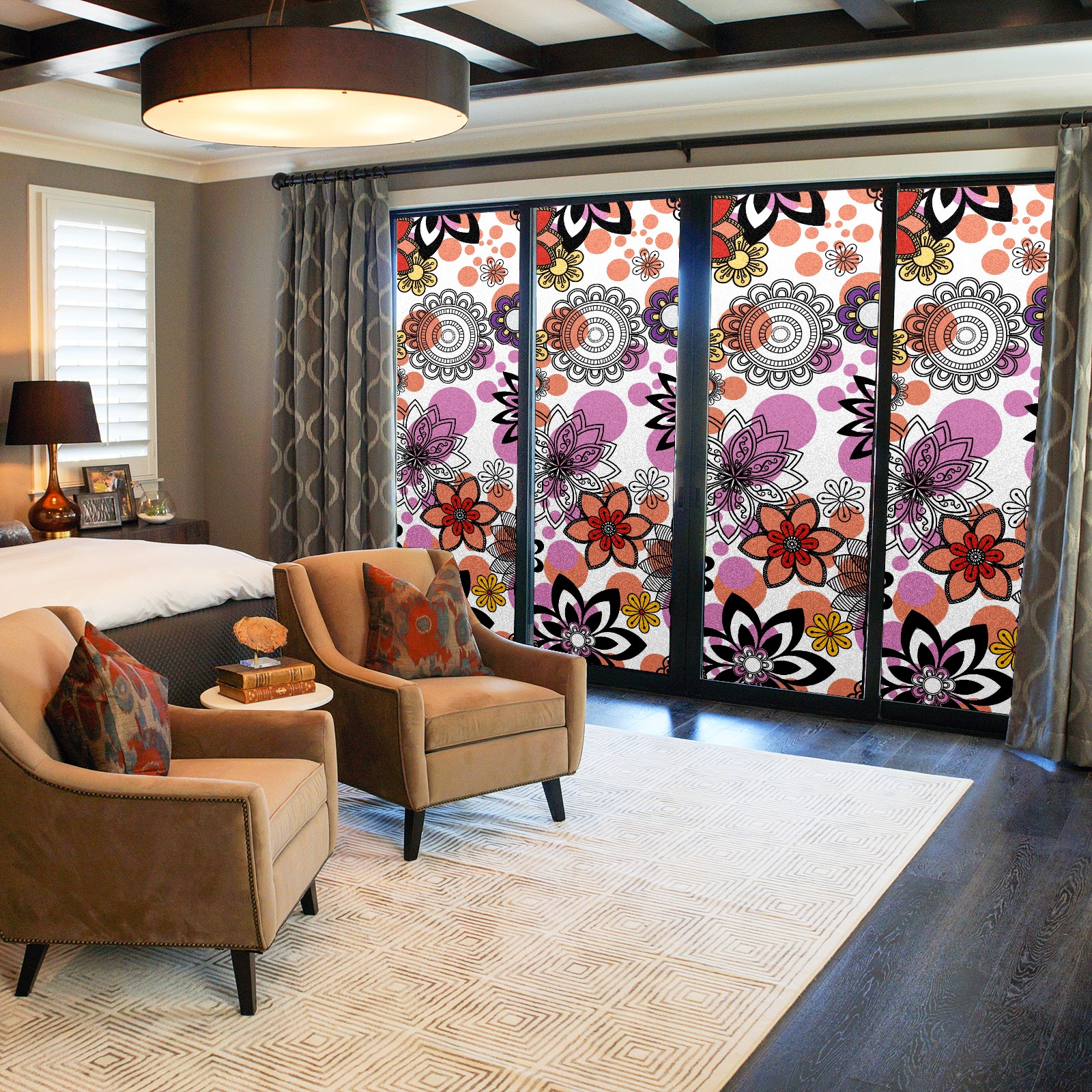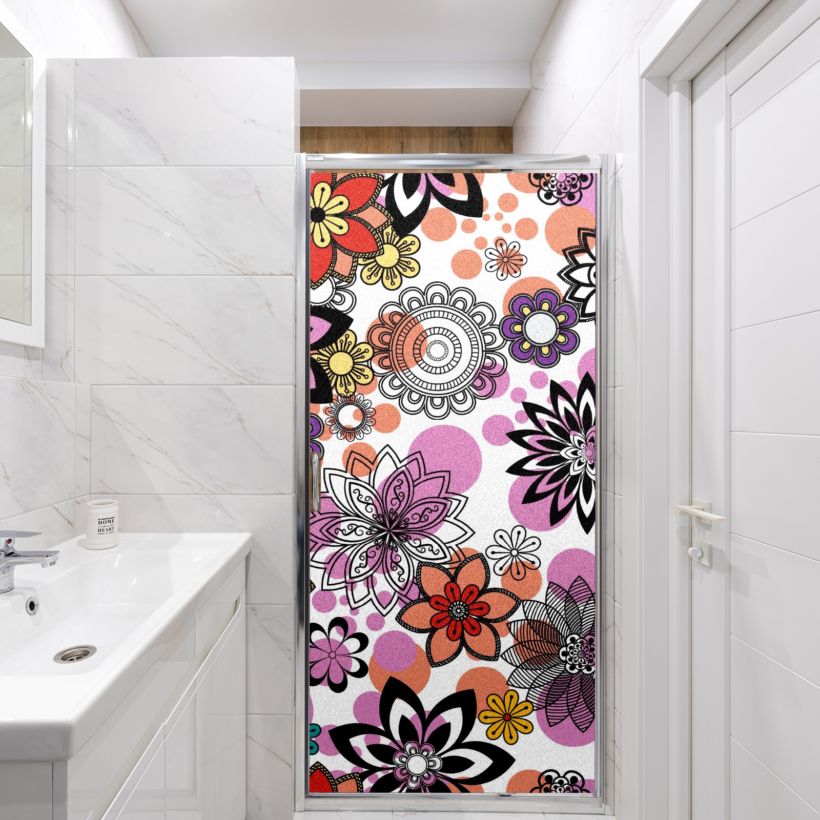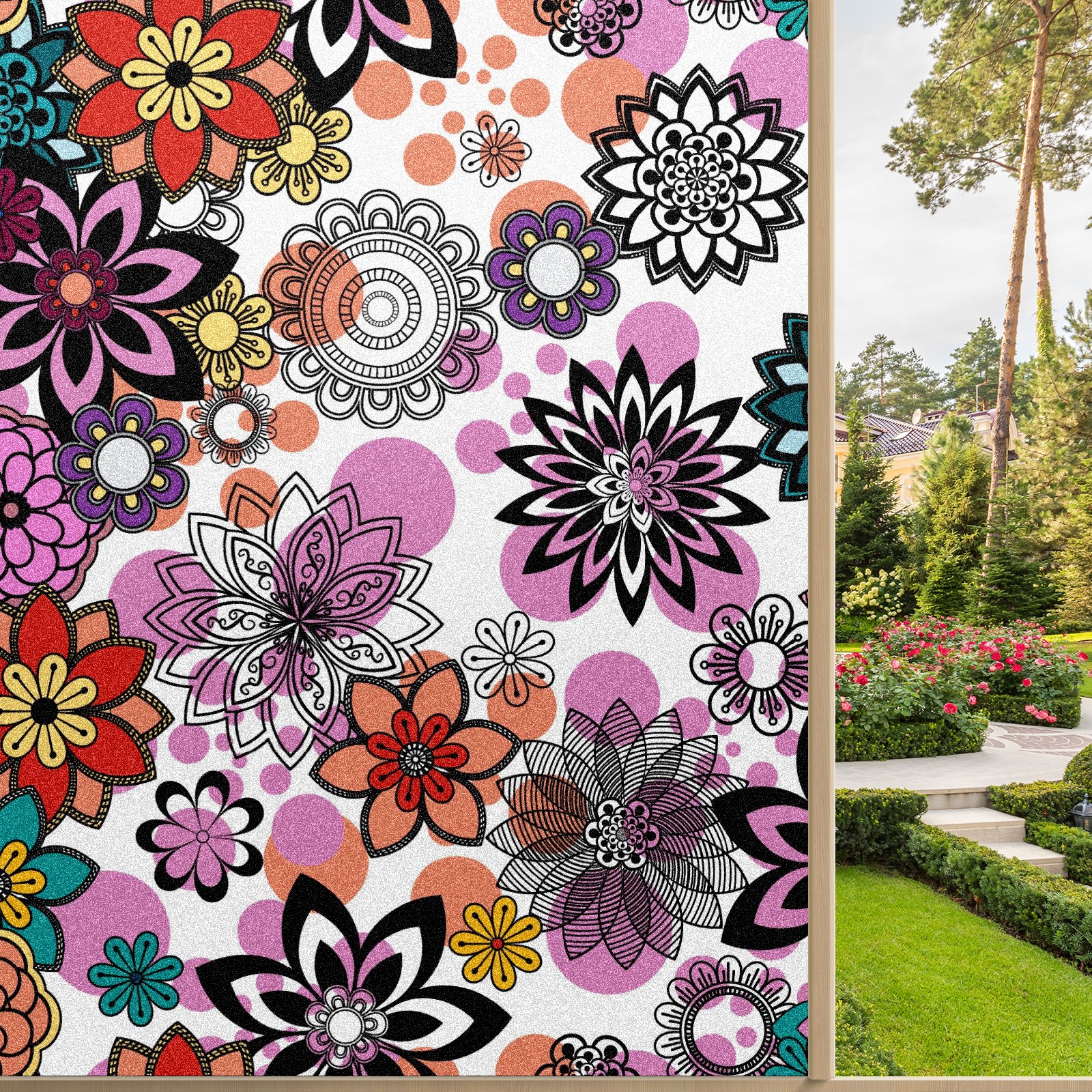 Static Cling Decorative Window Film Frosted Privacy Film Window Clings for Glass Windows No Glue Window Sticker for Bathroom Bedroom Office Mandala Floral Elements