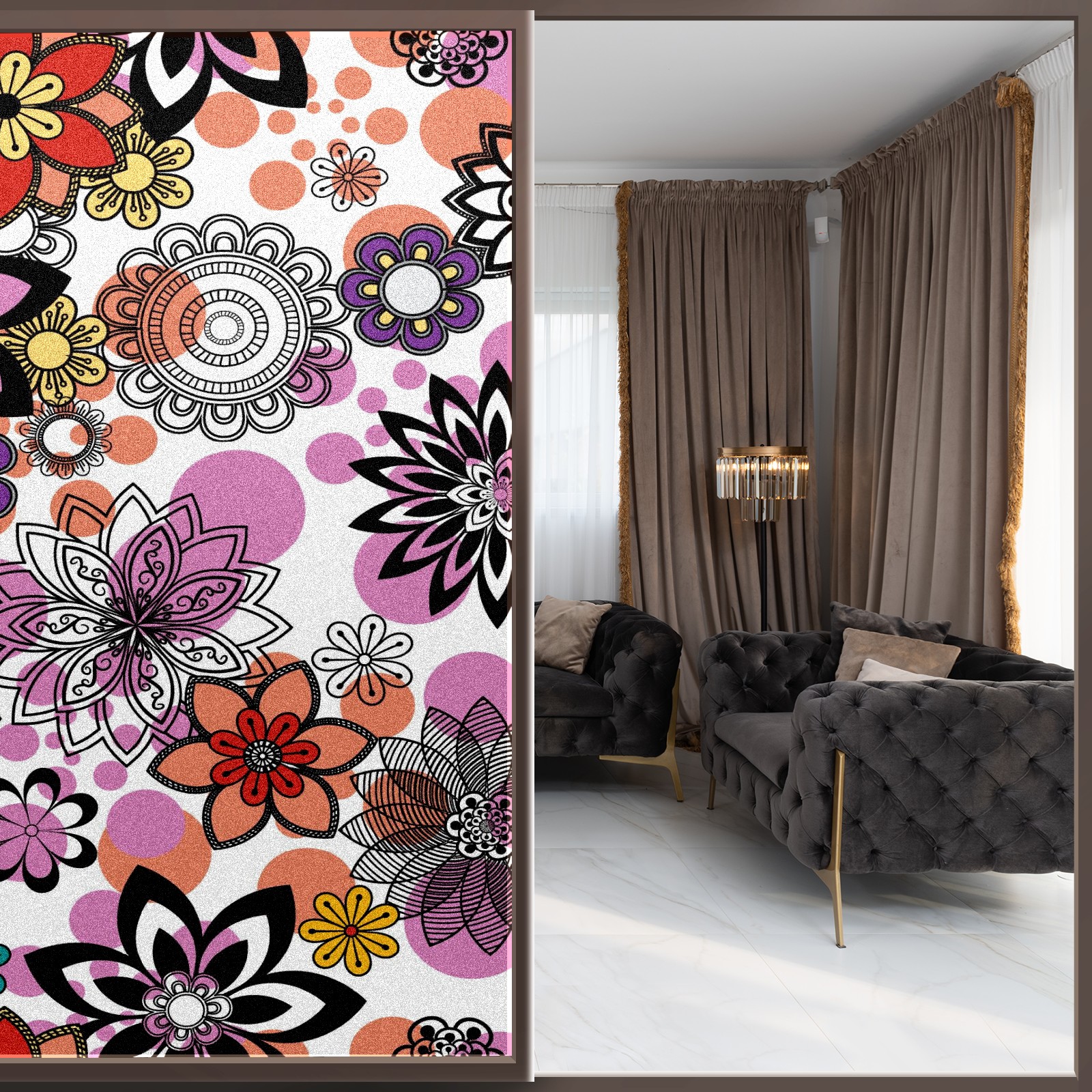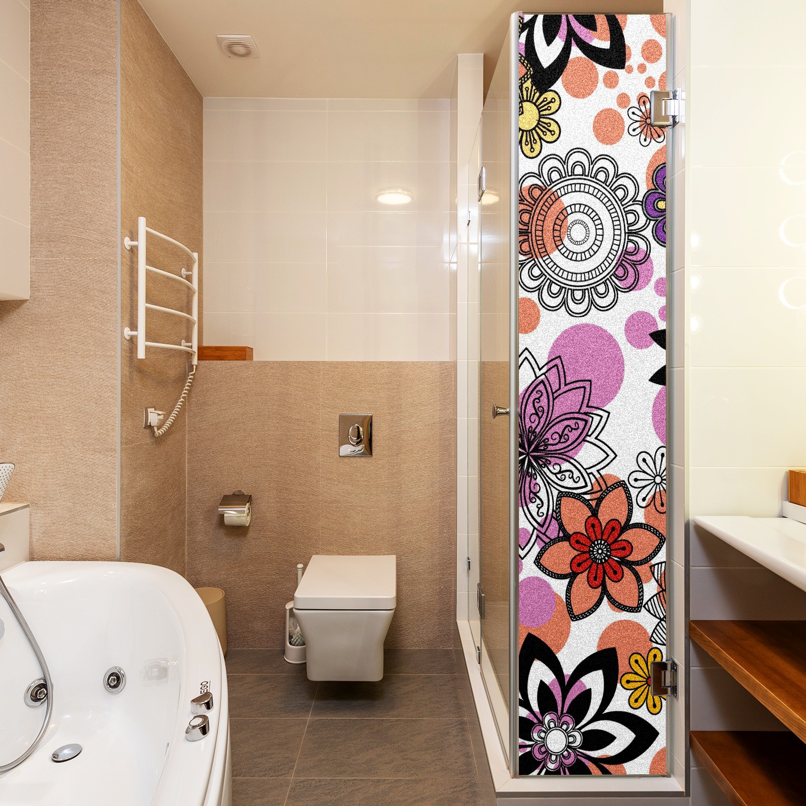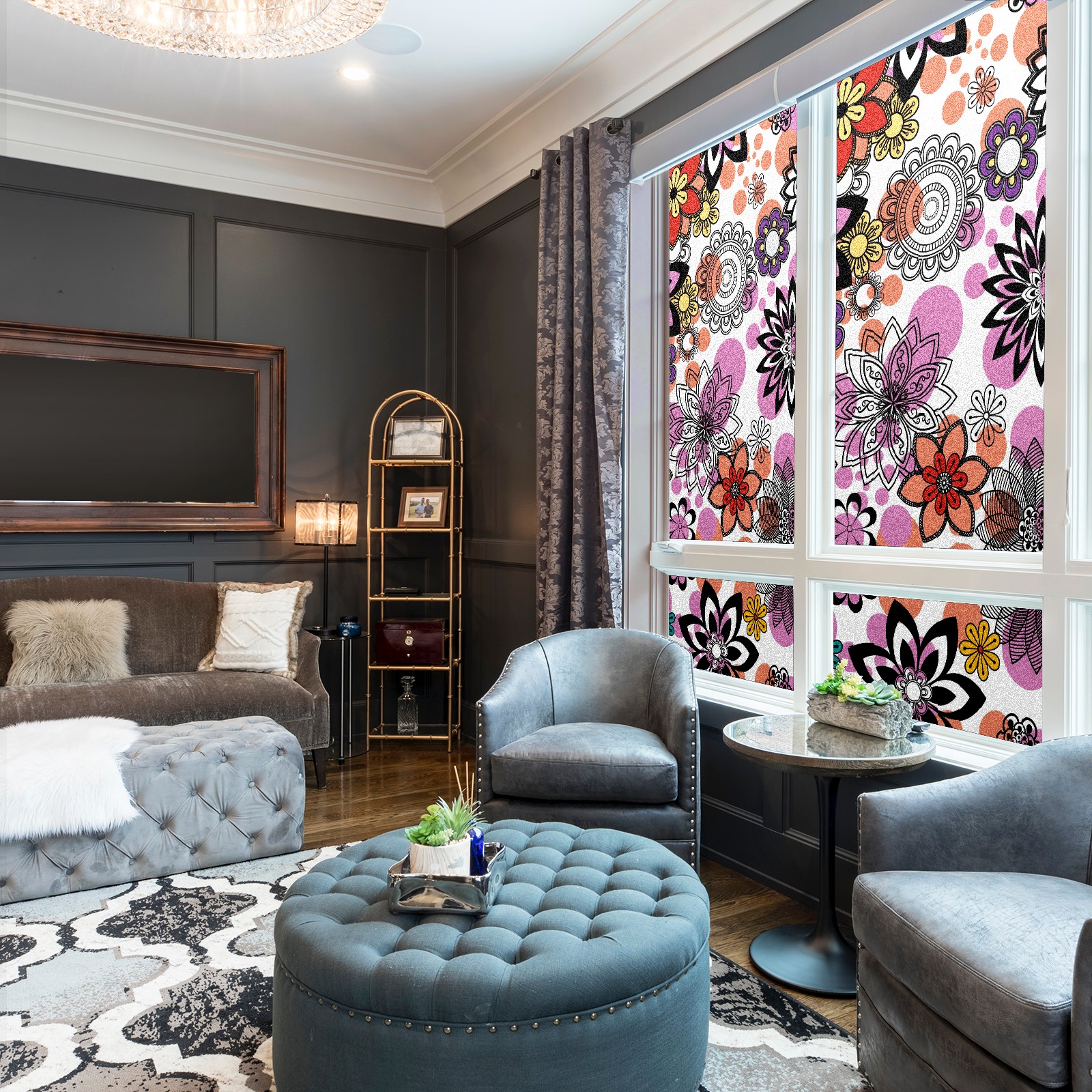 Static Cling Decorative Window Film Frosted Privacy Film Window Clings for Glass Windows No Glue Window Sticker for Bathroom Bedroom Office Mandala Floral Elements