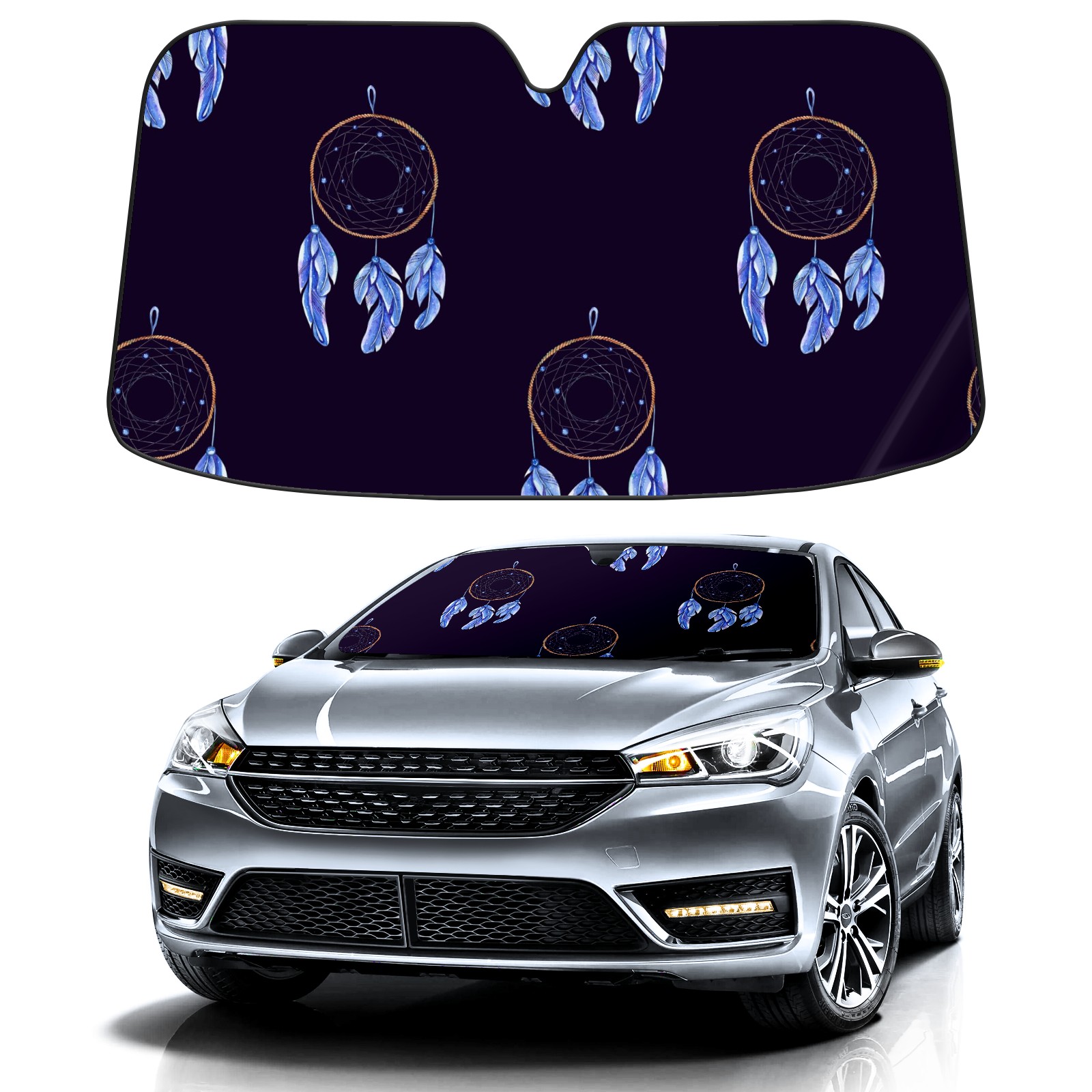 Car Windshield Sun Shade for Front Window Bohemian Blue Dream Catcher Foldable Vehicle Windshield Car Sun Visor Covers Automotive Window Protector Car Camping Privacy Sun Blocker