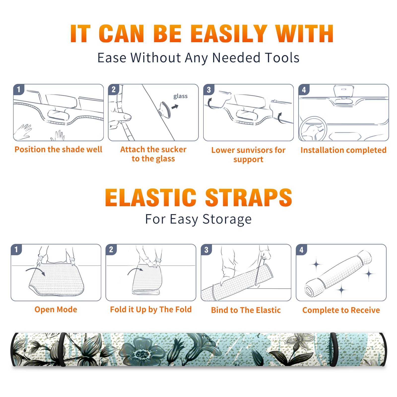 Diameter /Size 63"L x 33.5"W</b><br> Made from excellent materials which makes it sturdy and protects the car from the sun. Easy to use and pack. Makes the interior of the car cooler.You can easily stash the sunshade in the storage bag or store long term.It open and closes easy. Also the leather storage bag is durable and easy to put the umbrella back into.This windshield sunshade provides complete coverage and keeps your car interior cool under direct sun. It is easy to open and position under the windshield and around the rear-view mirror. Makes Your Car Easy To Identify, Perfect For Finding Your Car In Crowded Parking Lots And Garages.Great Choice: It Is A Great Gift For Dad, Boyfriend, Brother, Brother And Uncle, Friends, Classmates, Family And So On.<br> Notice:</b><br> Due To Difference Computer Monitors, The Color Maybe Slightly Different From Picture. As Different Measurement Methods, Measurement Data Will Float Within 2%.I Hope You Understand.<br> If You Have Any Question About The Item Please Do Not Hesitate To Contact Us Immediately And We Will Give You A Satisfactory Reply Within 24 Hours.
