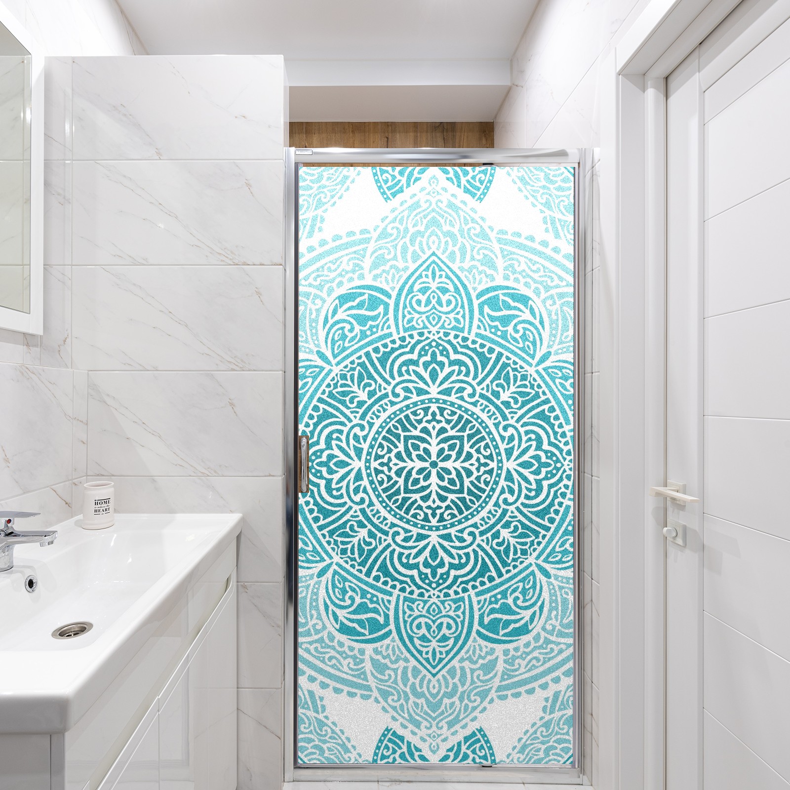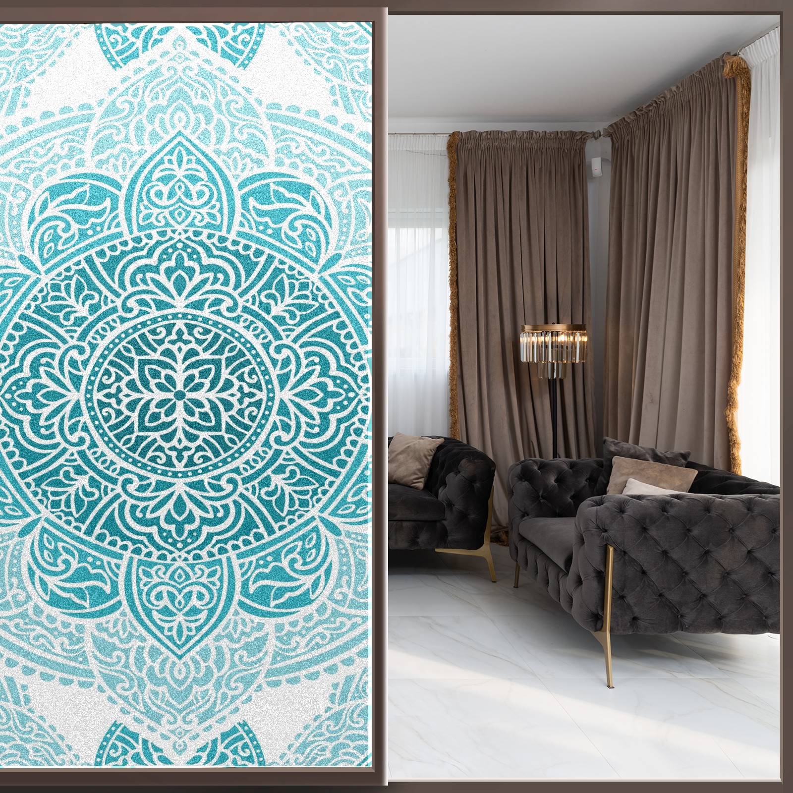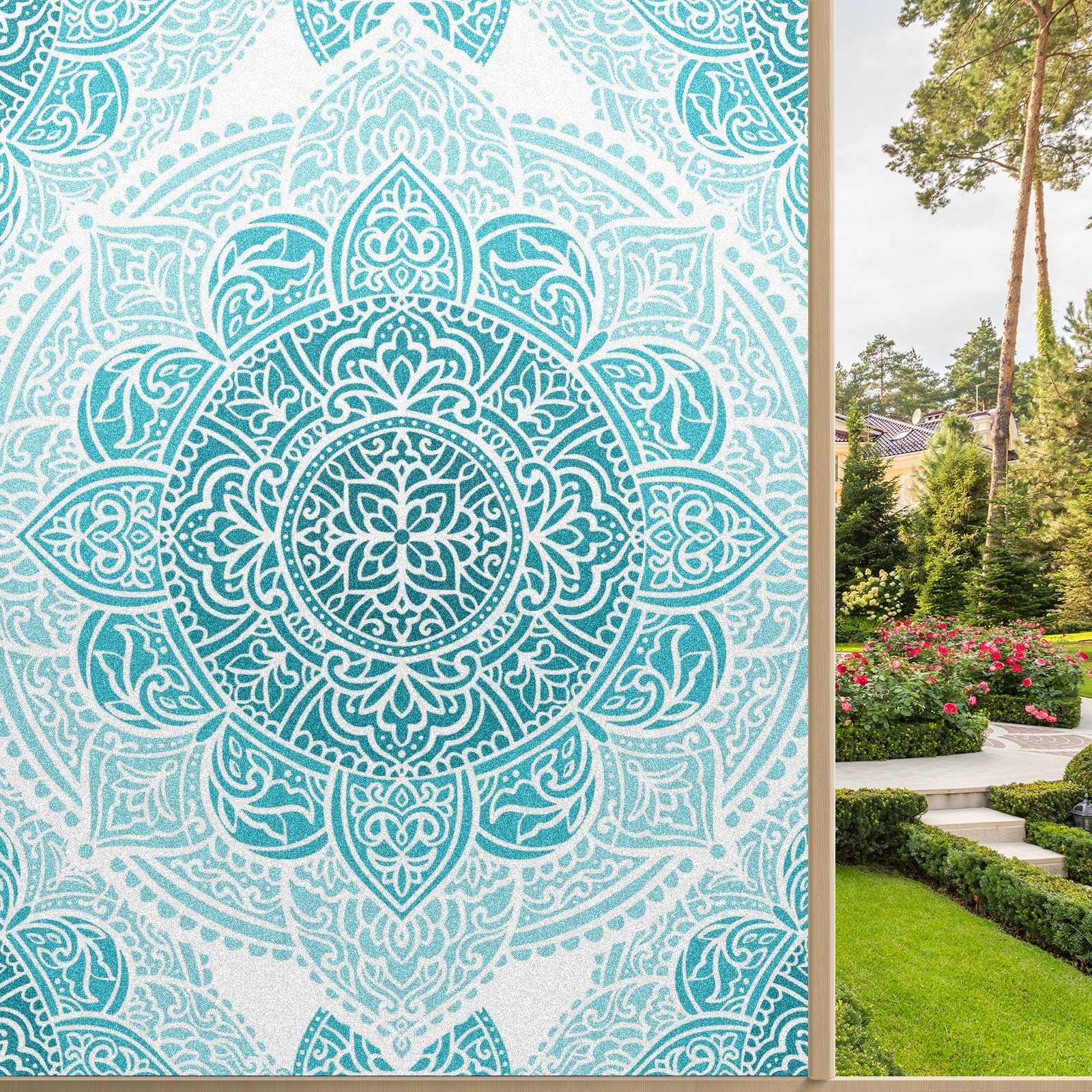 Static Cling Decorative Window Film Frosted Privacy Film Window Clings for Glass Windows No Glue Window Sticker for Bathroom Bedroom Office Indian Turquoise Mandala Flower
