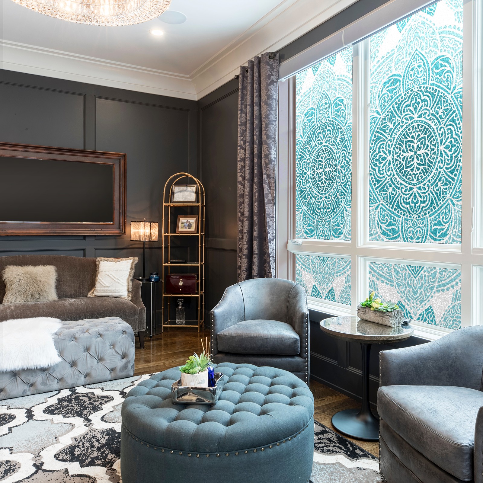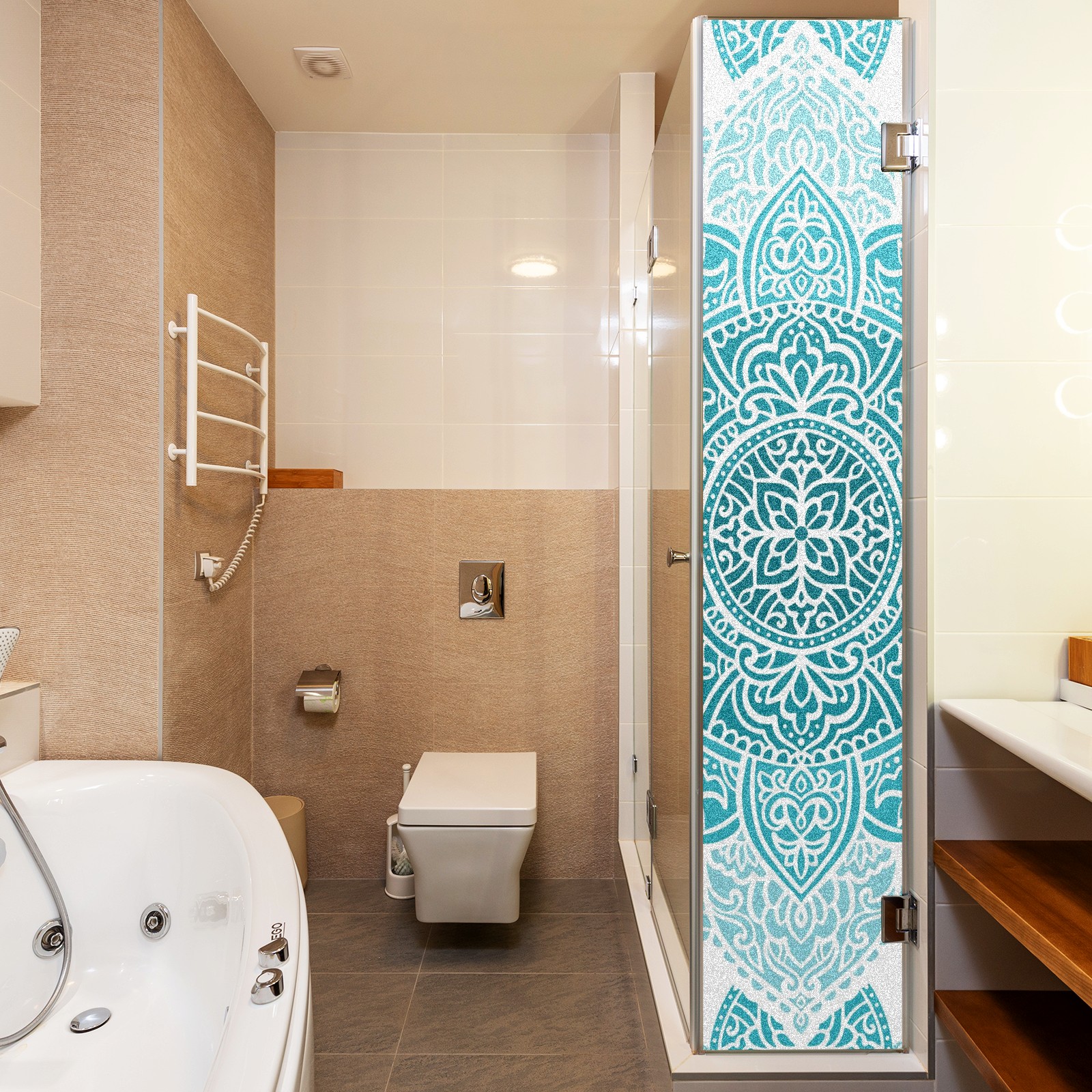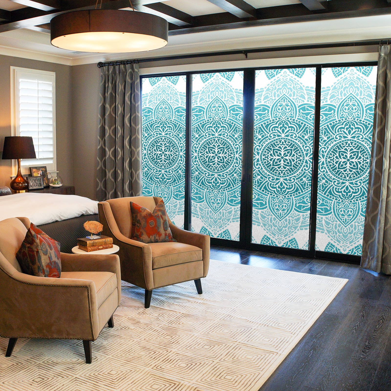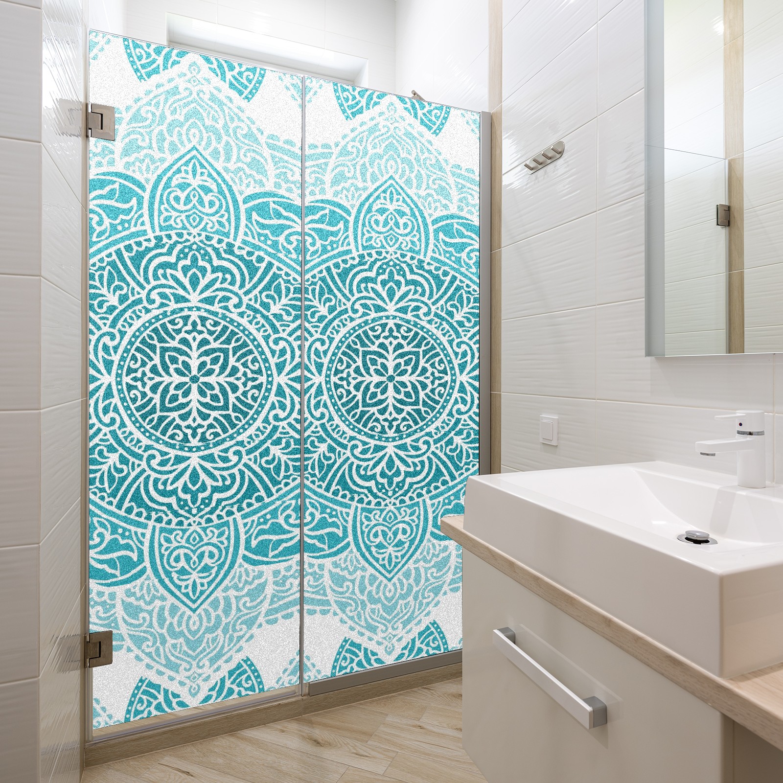 Static Cling Decorative Window Film Frosted Privacy Film Window Clings for Glass Windows No Glue Window Sticker for Bathroom Bedroom Office Indian Turquoise Mandala Flower