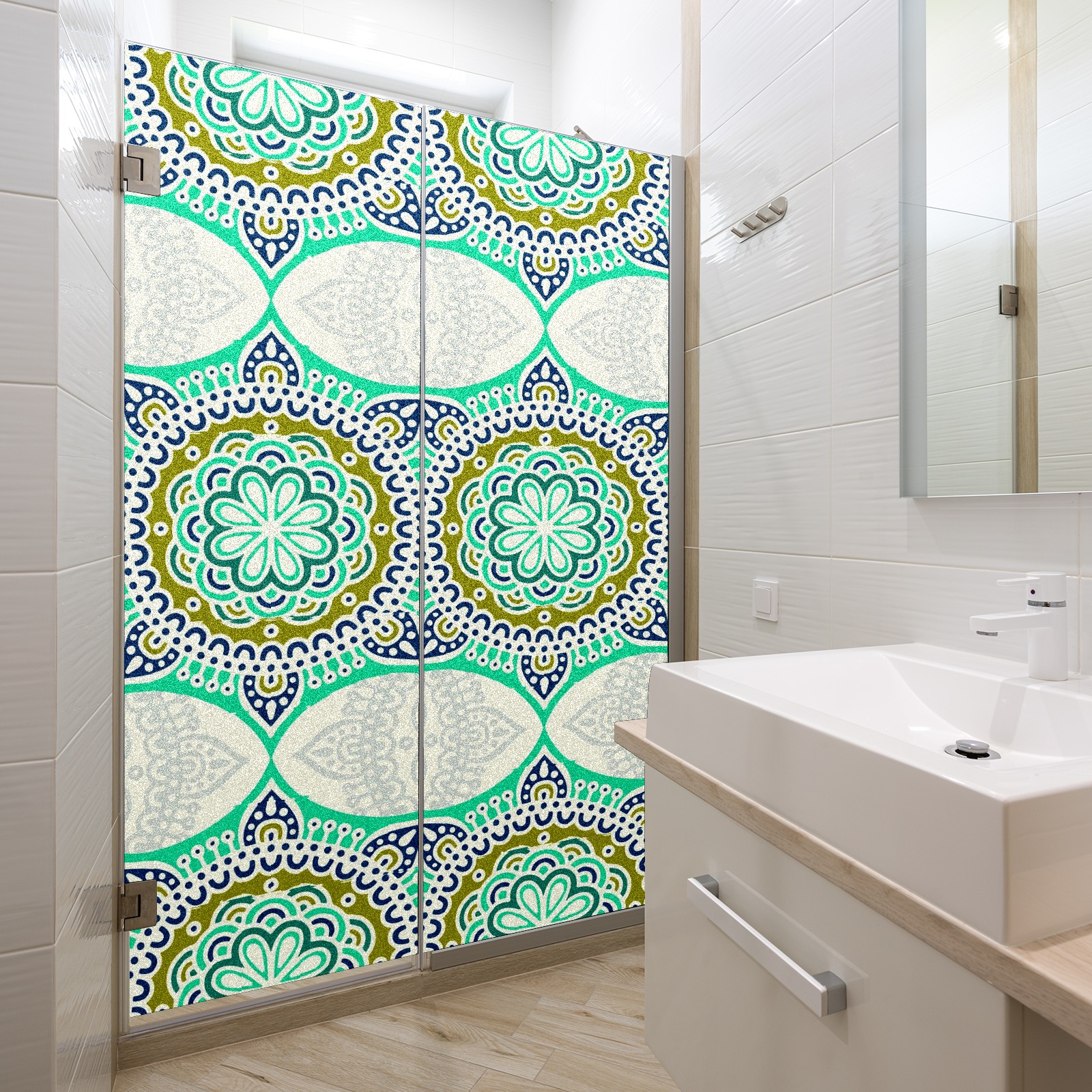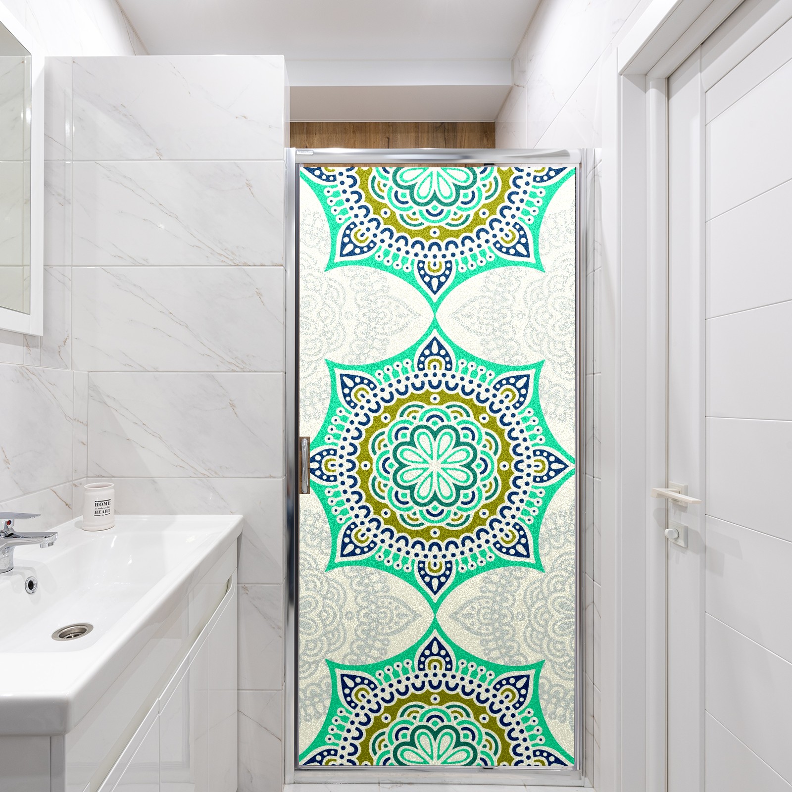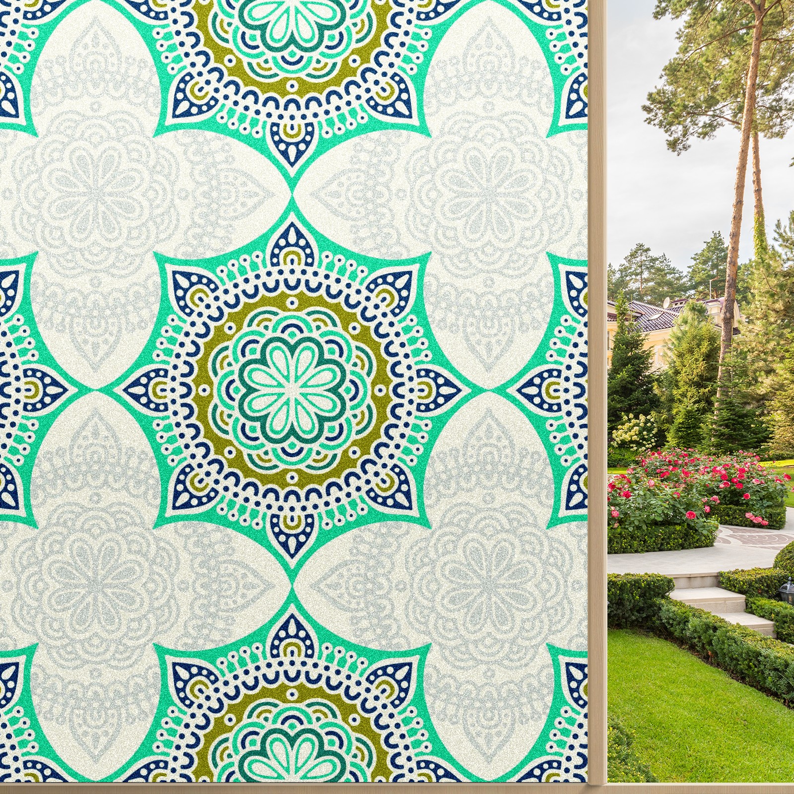 Static Cling Decorative Window Film Frosted Privacy Film Window Clings for Glass Windows No Glue Window Sticker for Bathroom Bedroom Office Green Mandala Flower