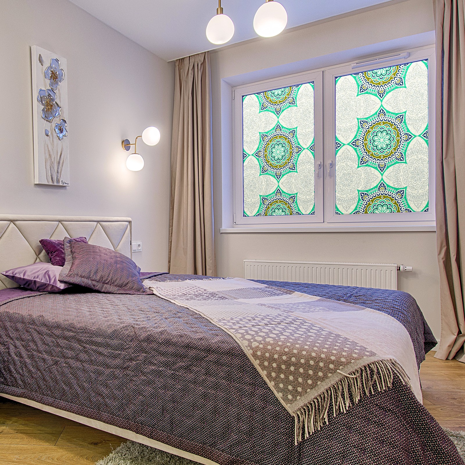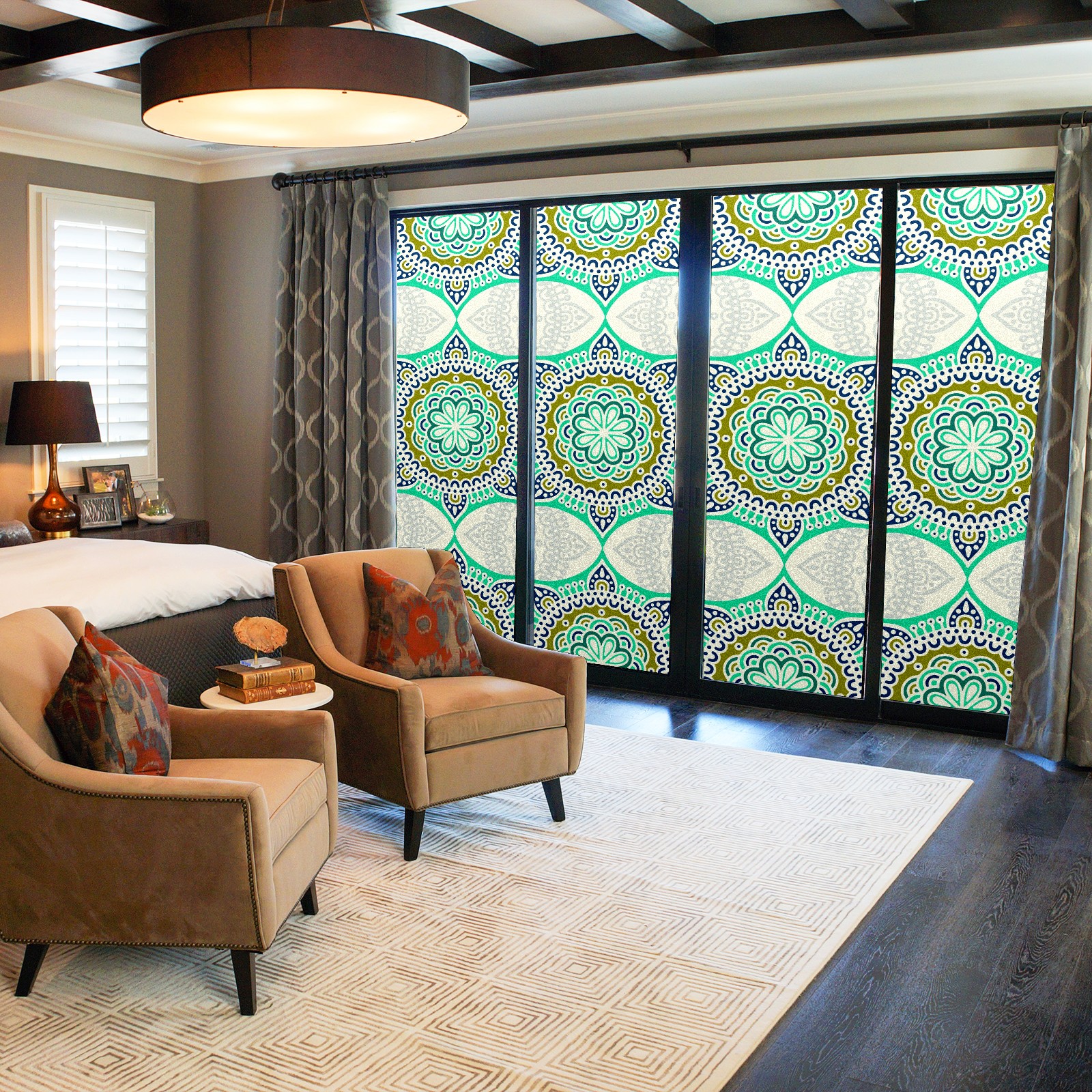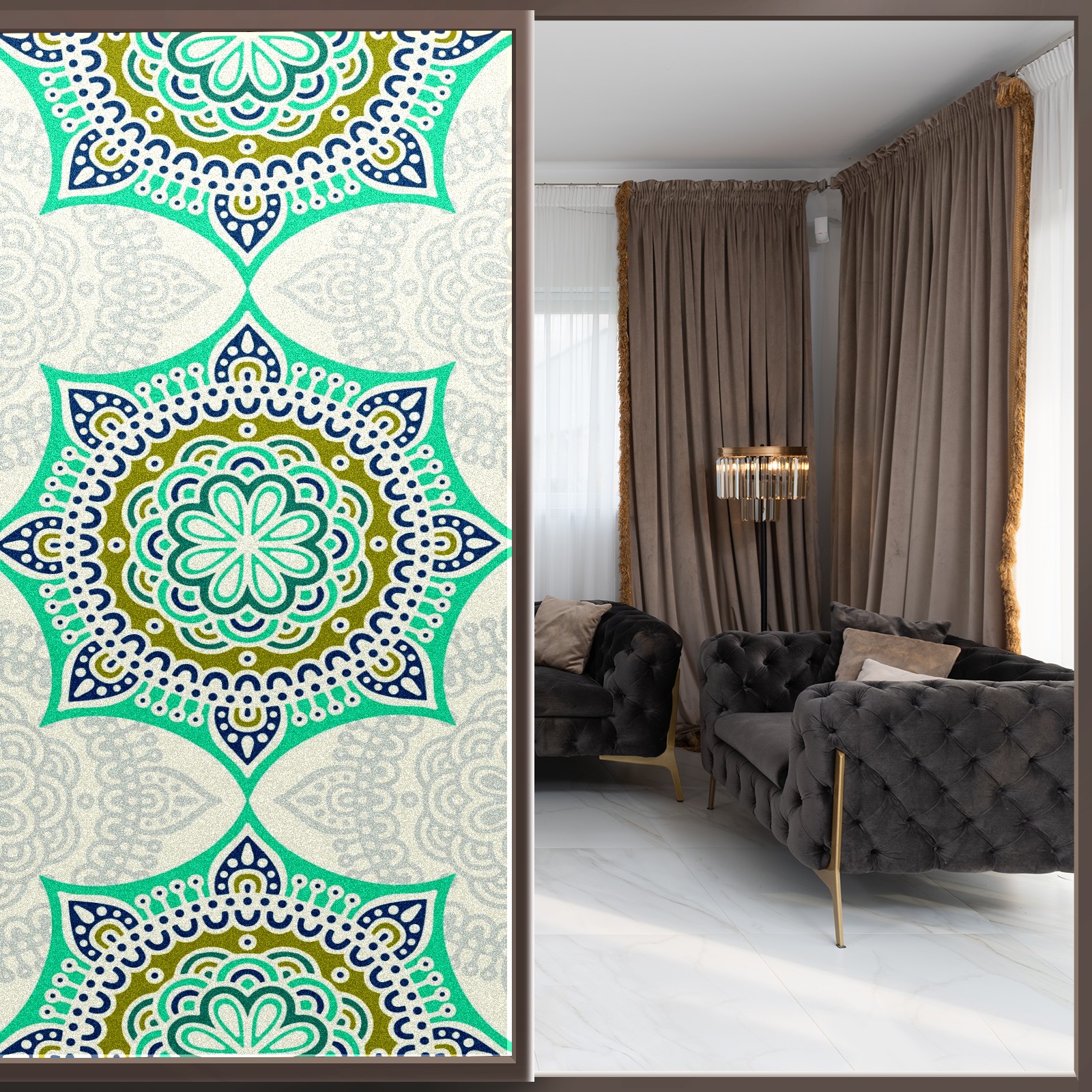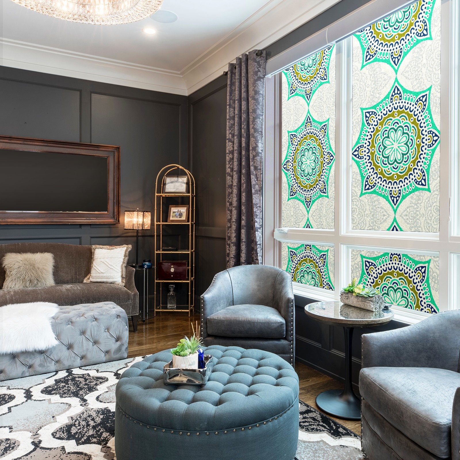 Static Cling Decorative Window Film Frosted Privacy Film Window Clings for Glass Windows No Glue Window Sticker for Bathroom Bedroom Office Green Mandala Flower