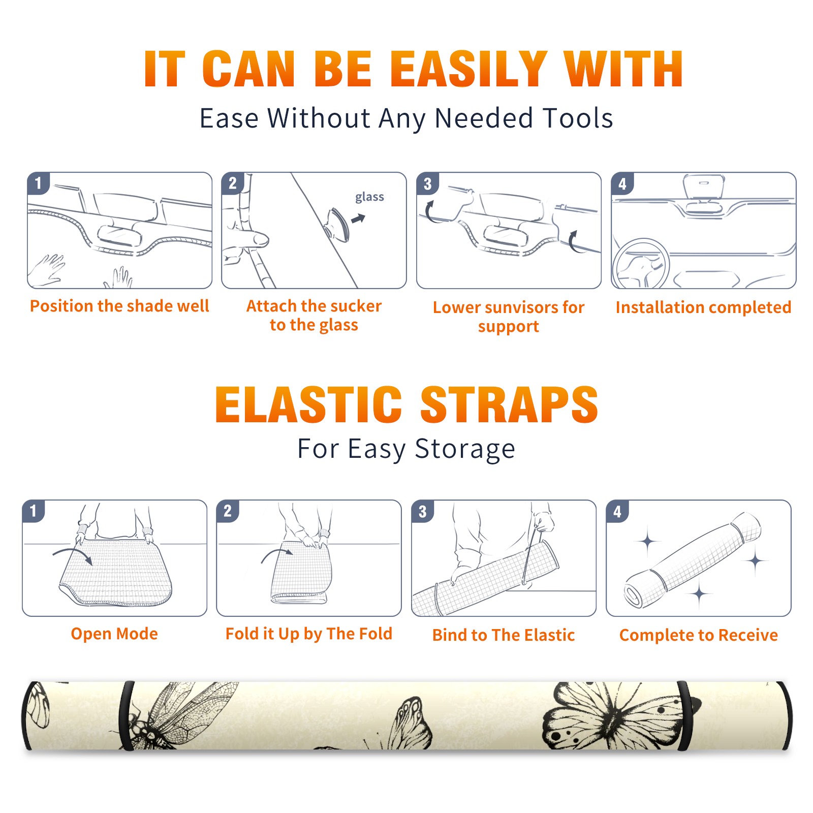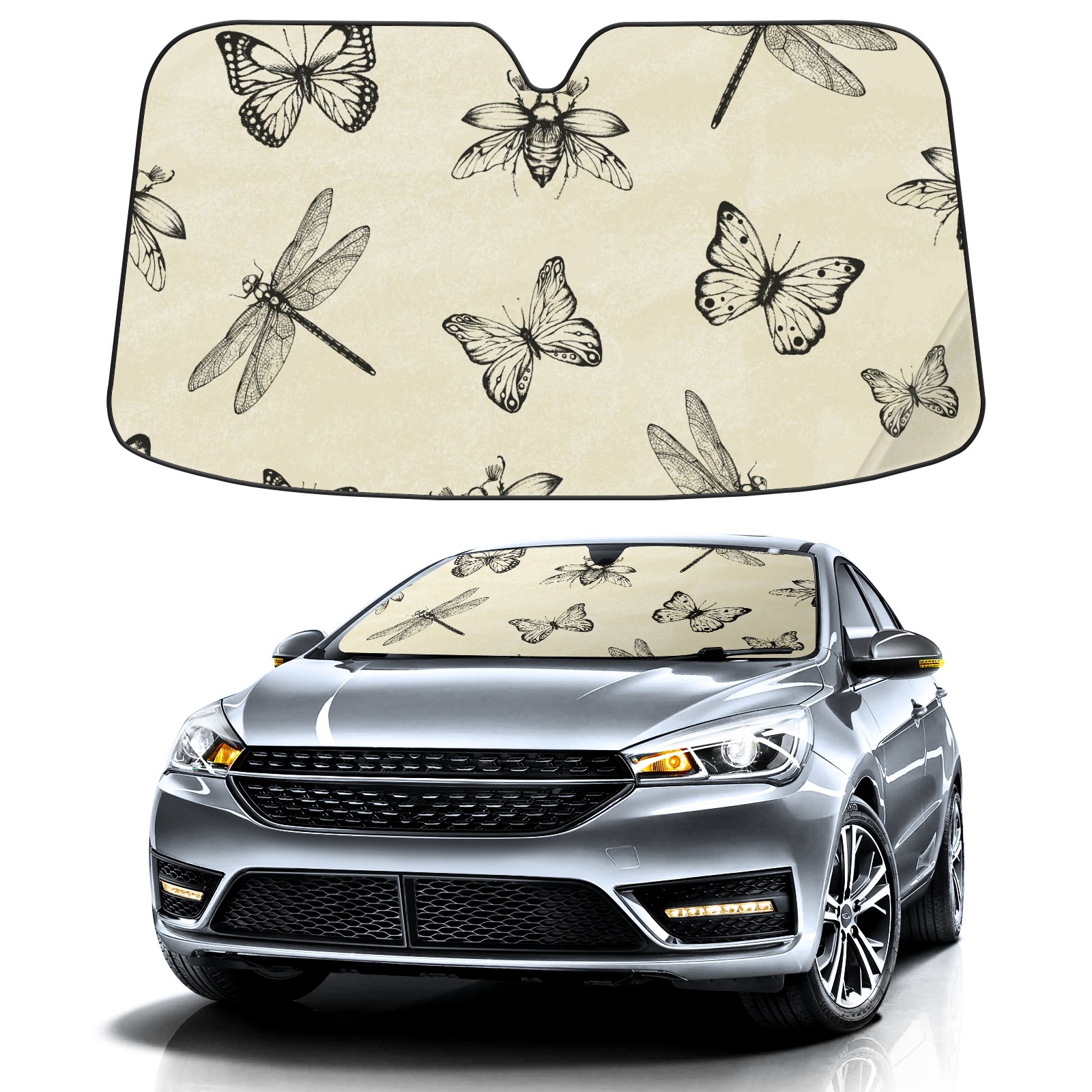 Car Windshield Sun Shade for Front Window Dragonfly Cockchafer And Butterfly Foldable Vehicle Windshield Car Sun Visor Covers Automotive Window Protector Car Camping Privacy Sun Blocker