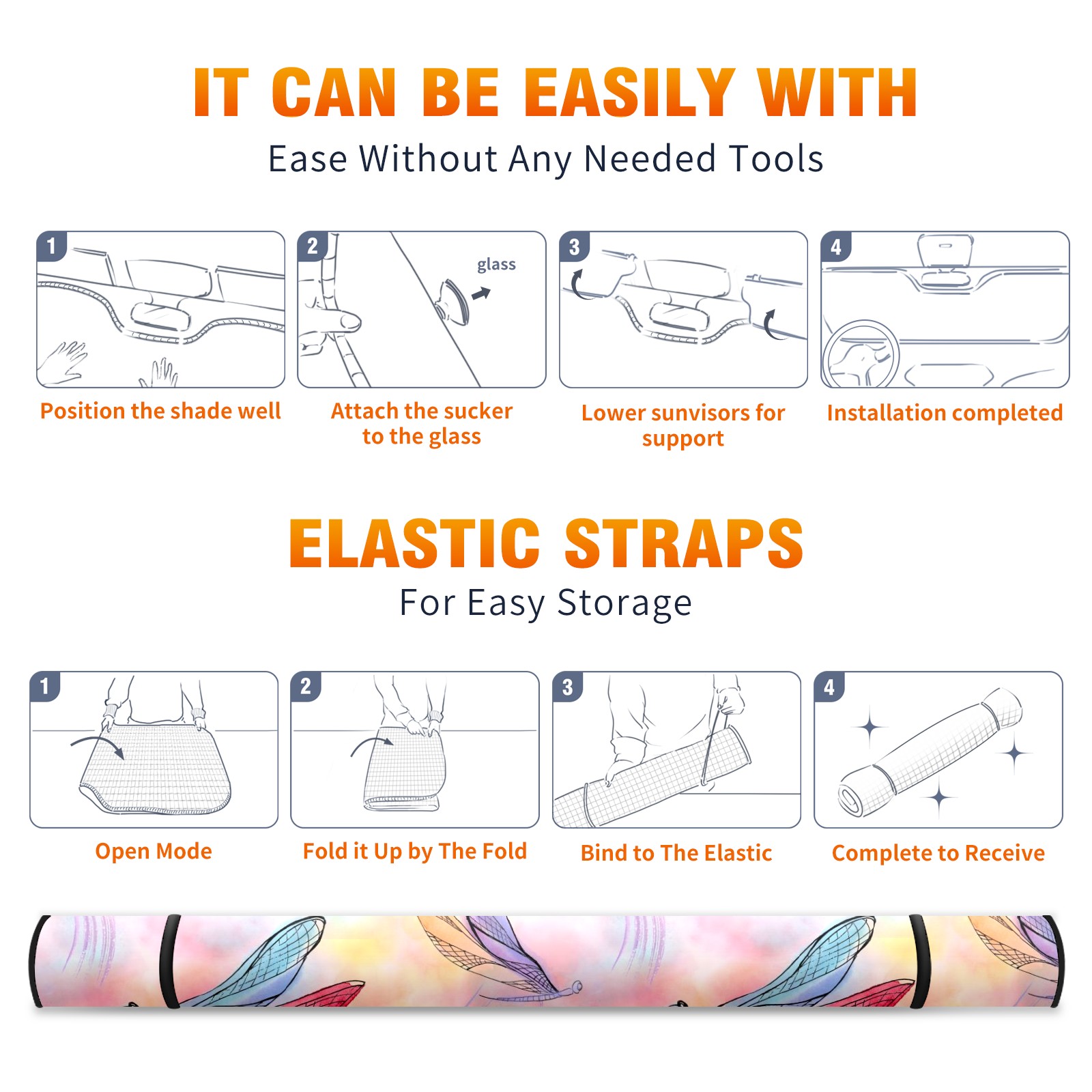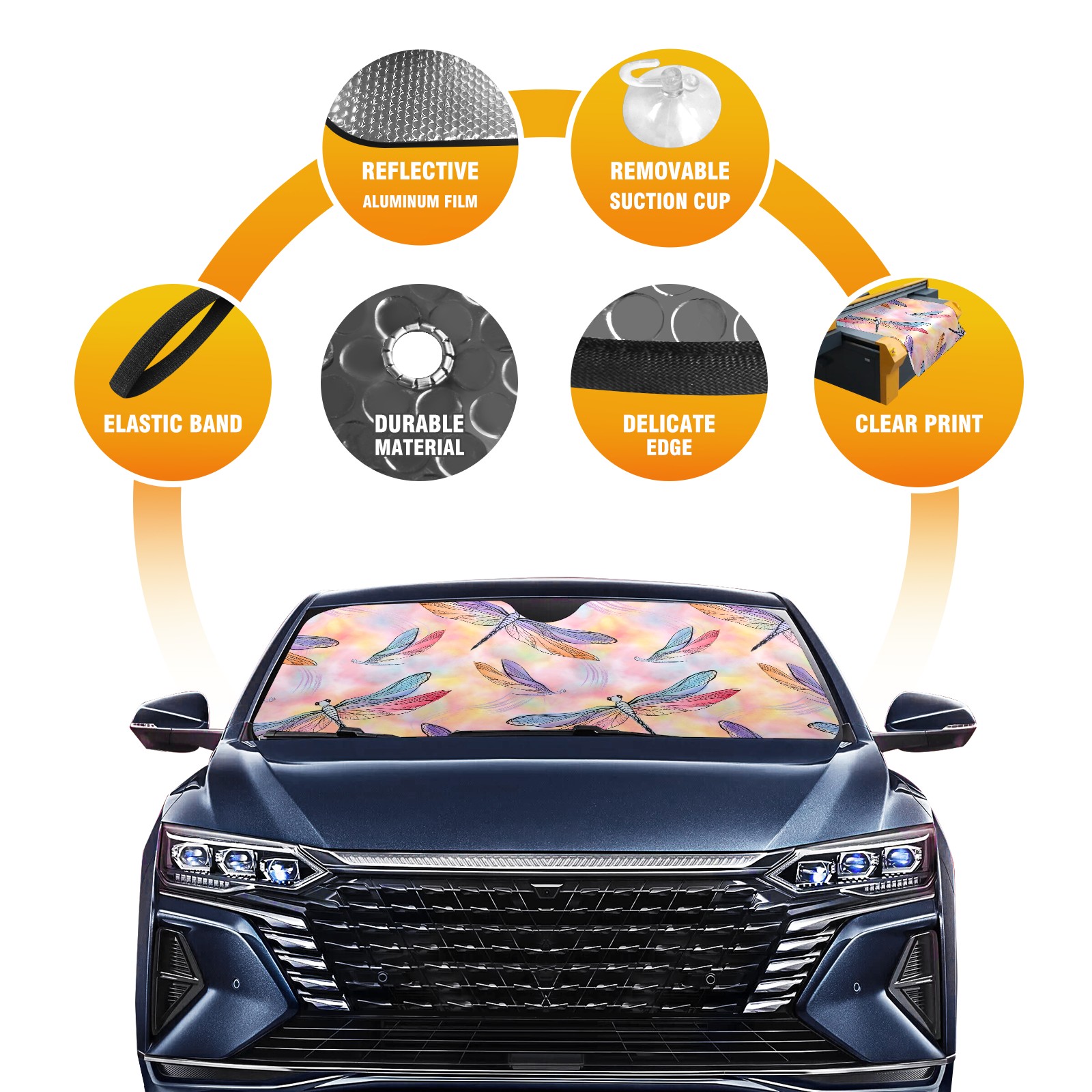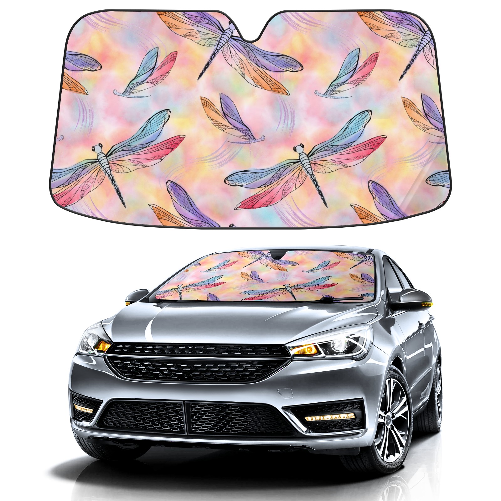 Car Windshield Sun Shade for Front Window Dragonfly And Butterfly Watercolor Foldable Vehicle Windshield Car Sun Visor Covers Automotive Window Protector Car Camping Privacy Sun Blocker
