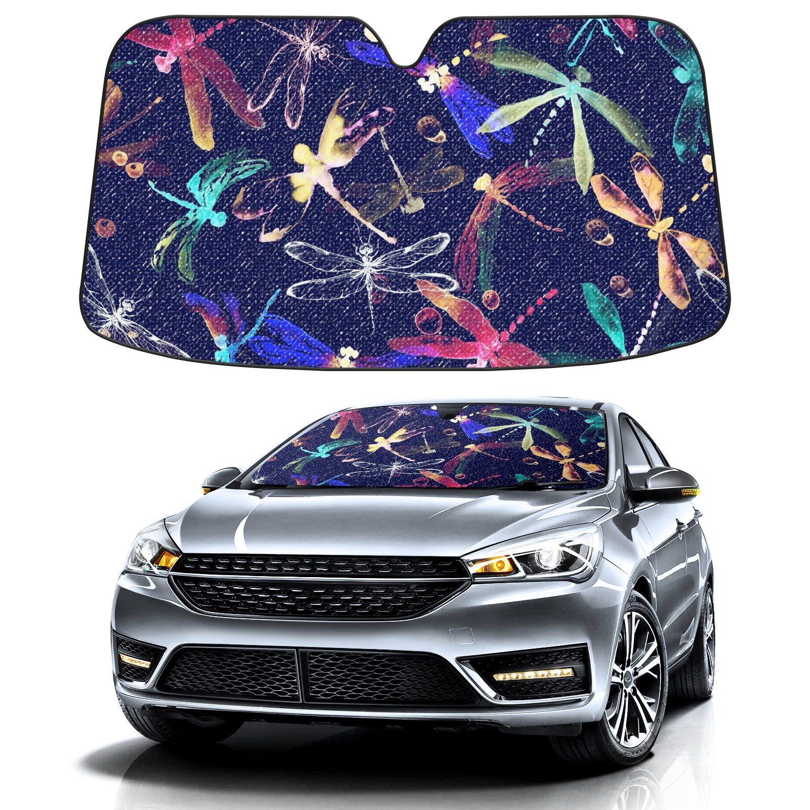 Car Windshield Sun Shade for Front Window Colorful Retro Dragonfly Foldable Vehicle Windshield Car Sun Visor Covers Automotive Window Protector Car Camping Privacy Sun Blocker