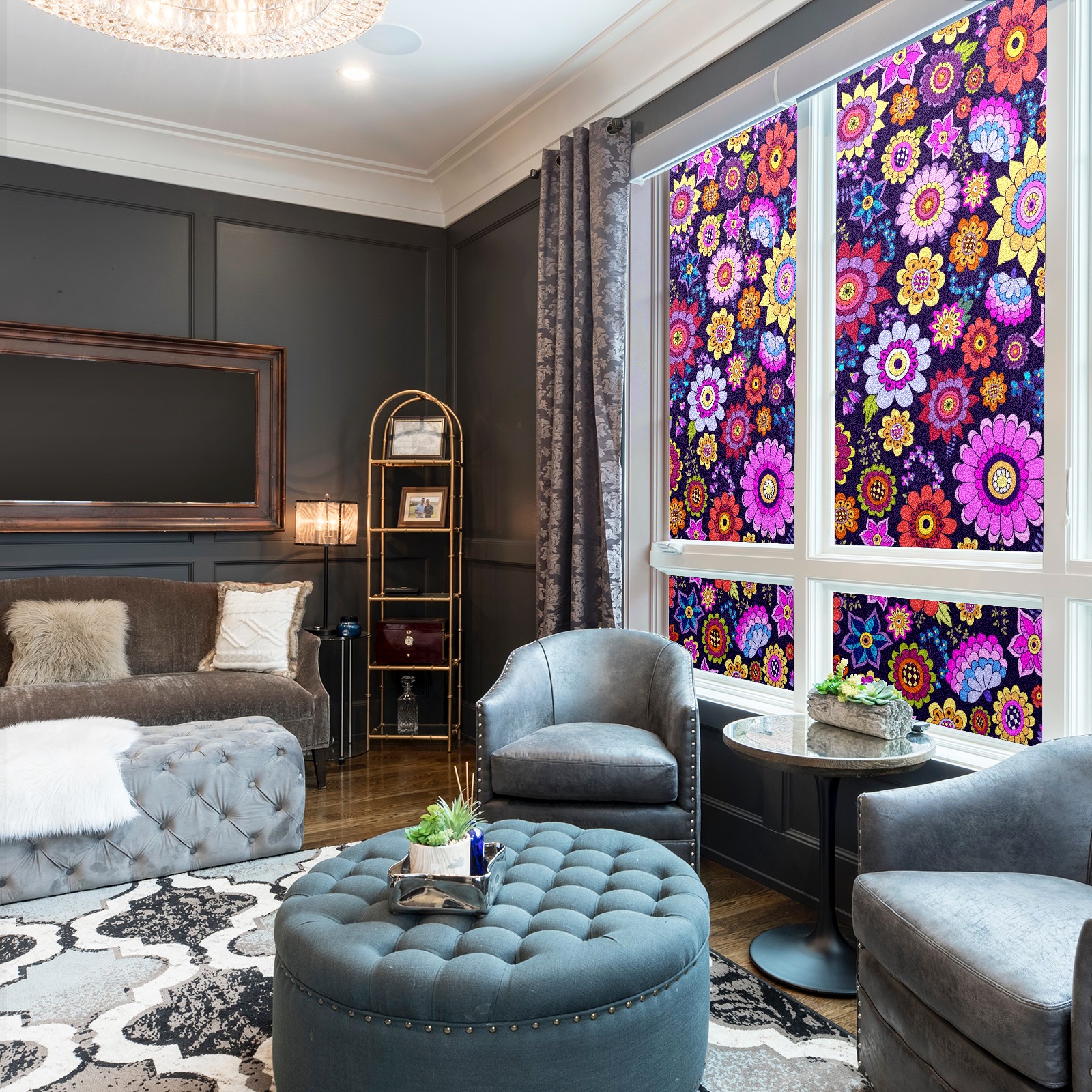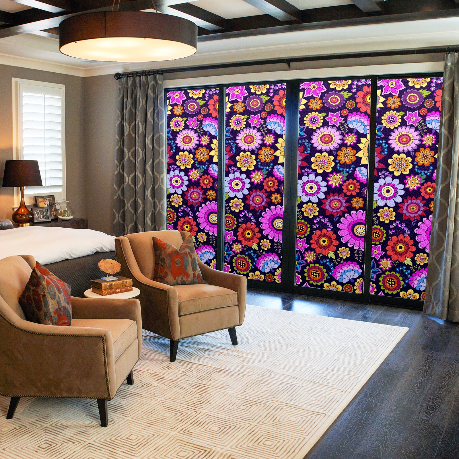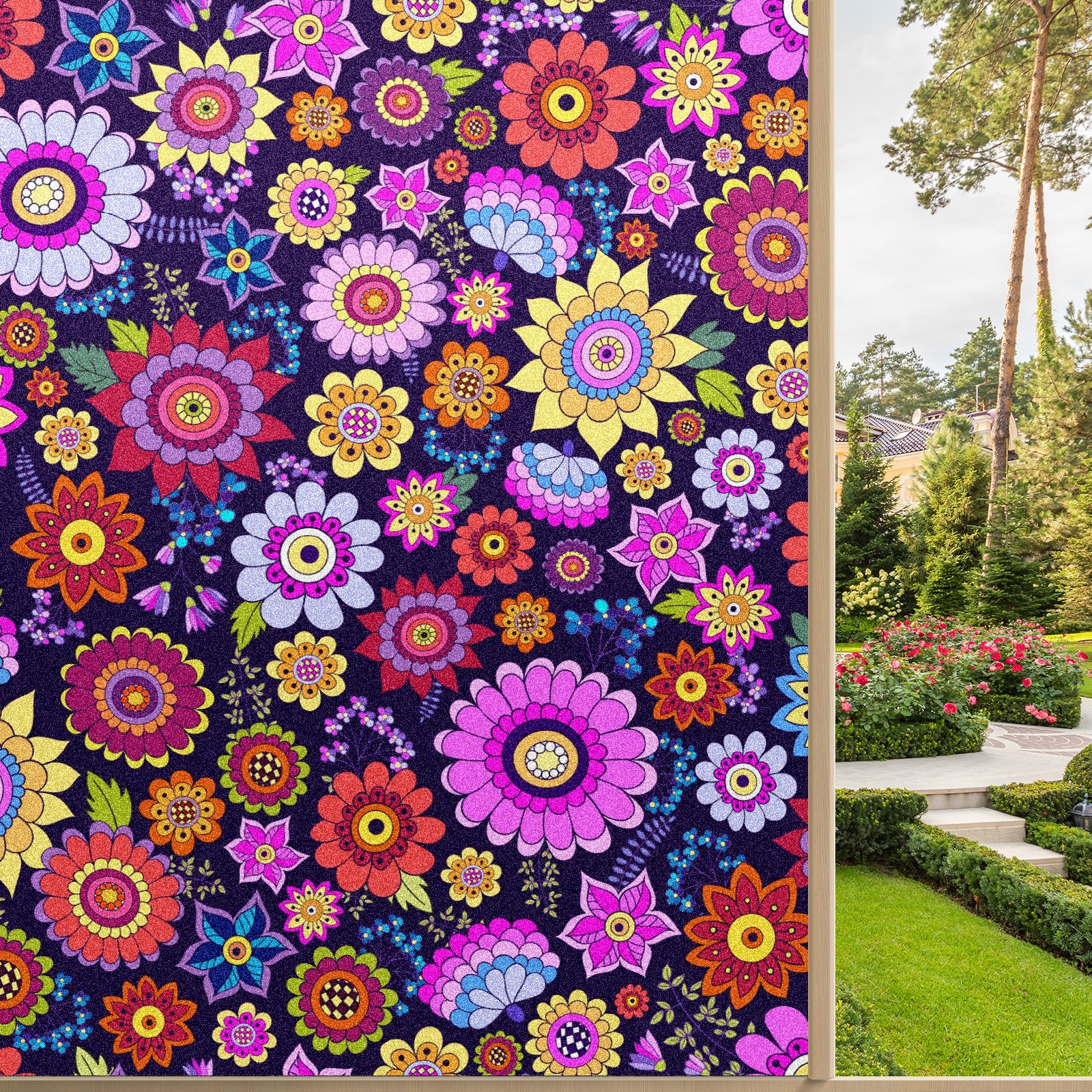 Static Cling Decorative Window Film Frosted Privacy Film Window Clings for Glass Windows No Glue Window Sticker for Bathroom Bedroom Office Colorful Mandala Flower Pattern