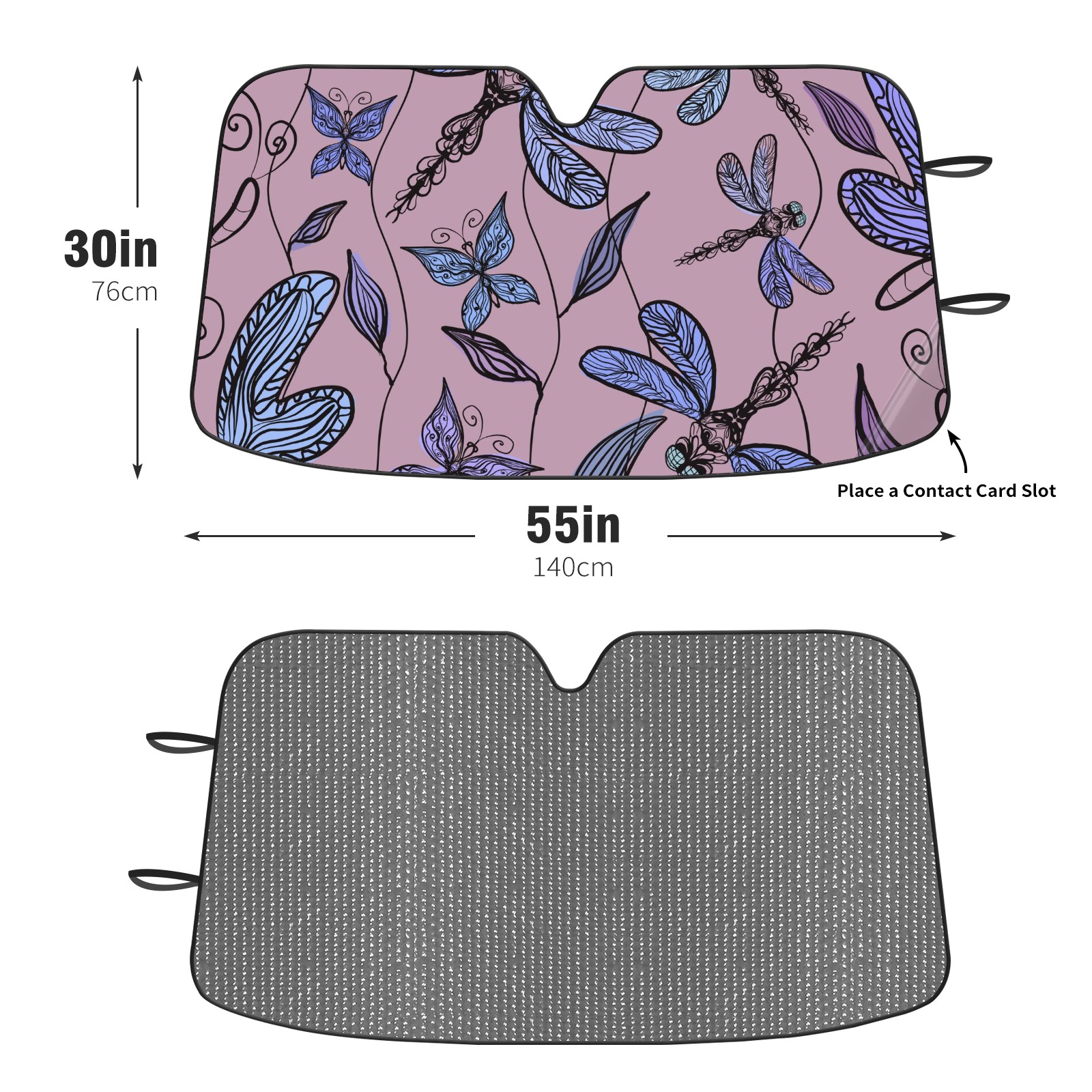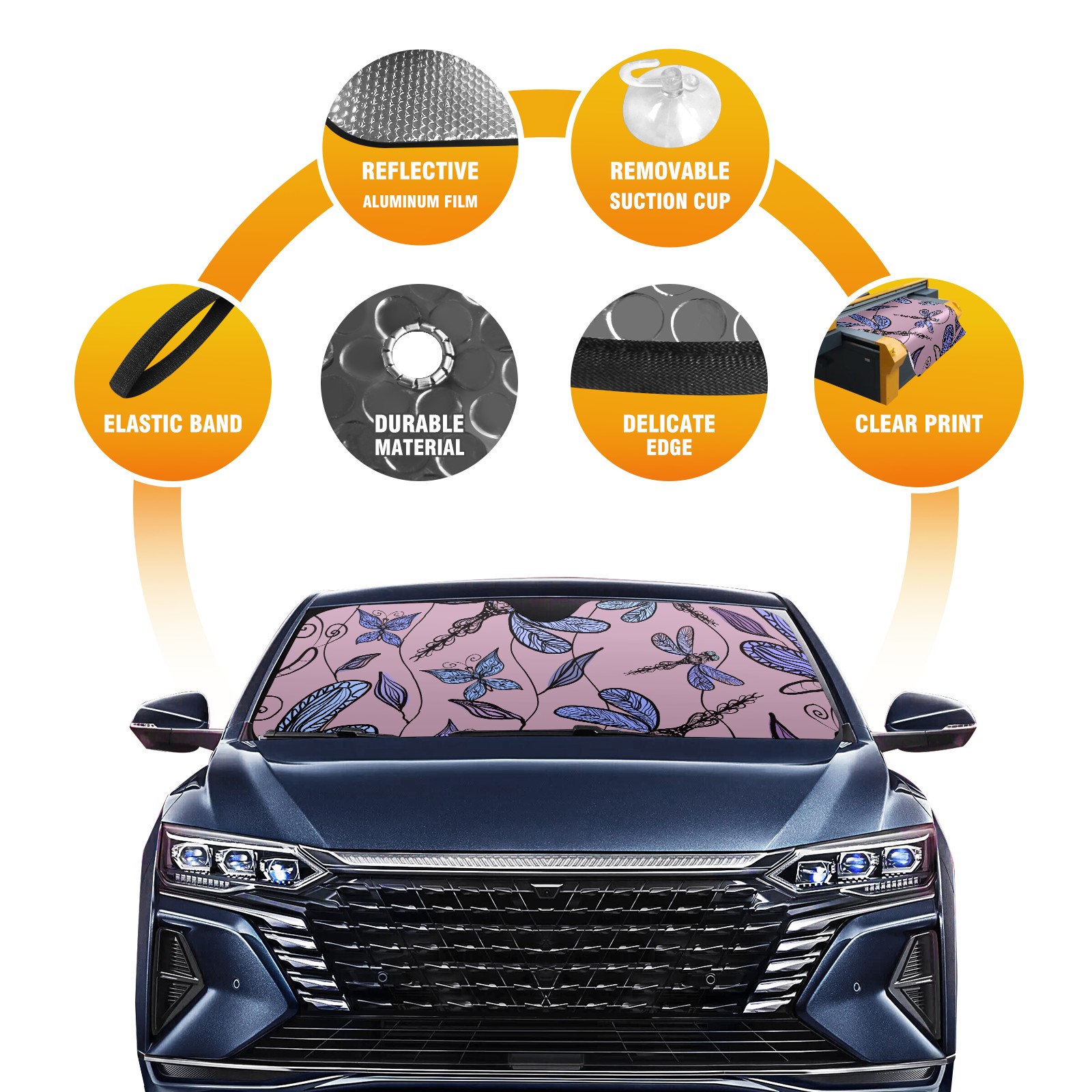 Car Windshield Sun Shade for Front Window Butterfly And Dragonfly On Pink Background Foldable Vehicle Windshield Car Sun Visor Covers Automotive Window Protector Car Camping Privacy Sun Blocker