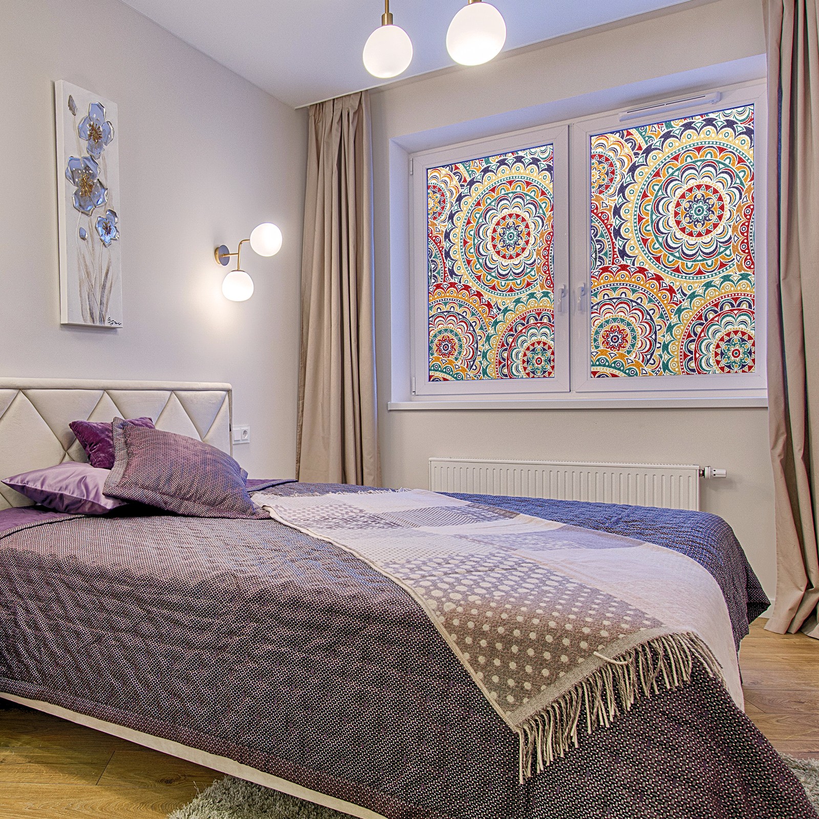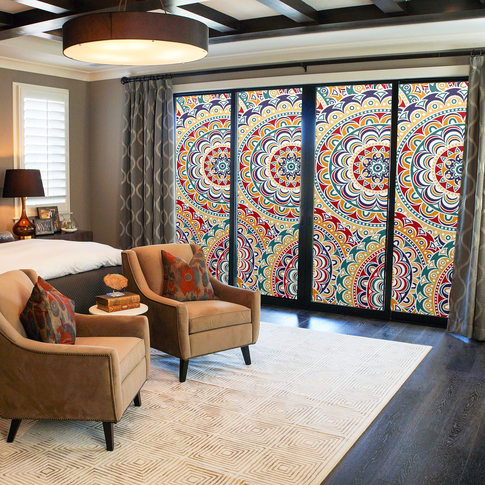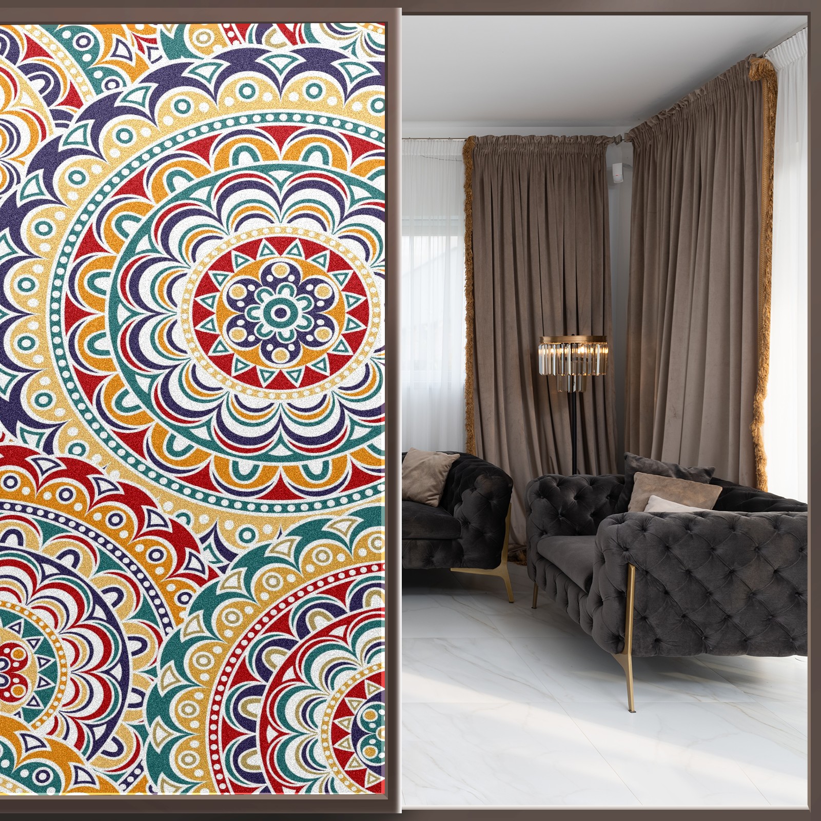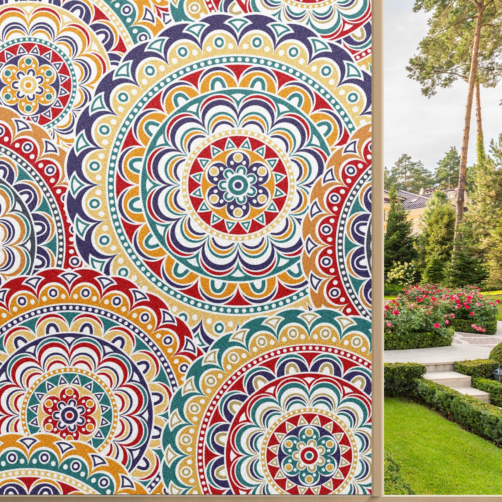Static Cling Decorative Window Film Frosted Privacy Film Window Clings for Glass Windows No Glue Window Sticker for Bathroom Bedroom Office Boho Ethnic Mandala Floral