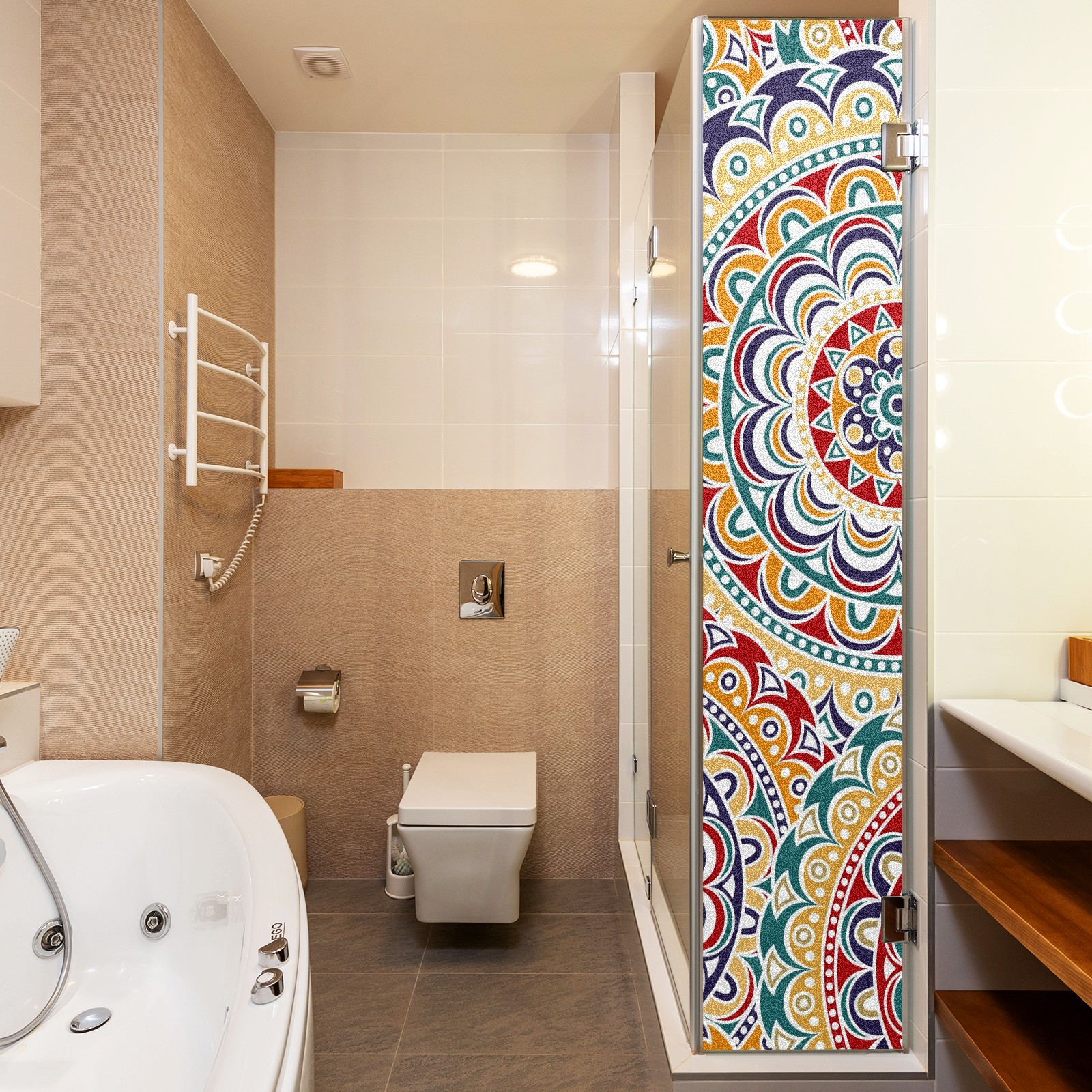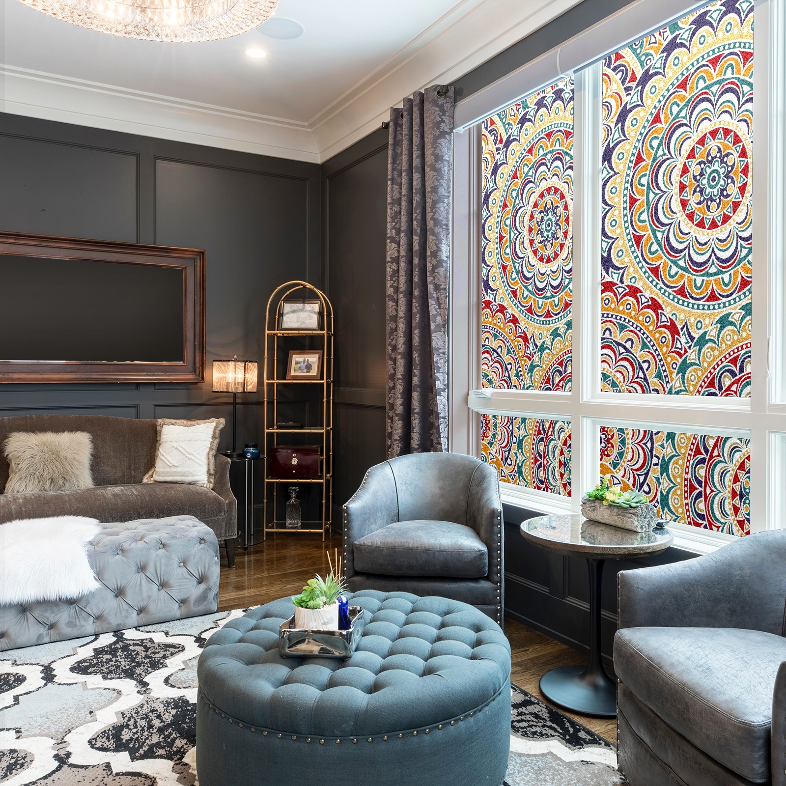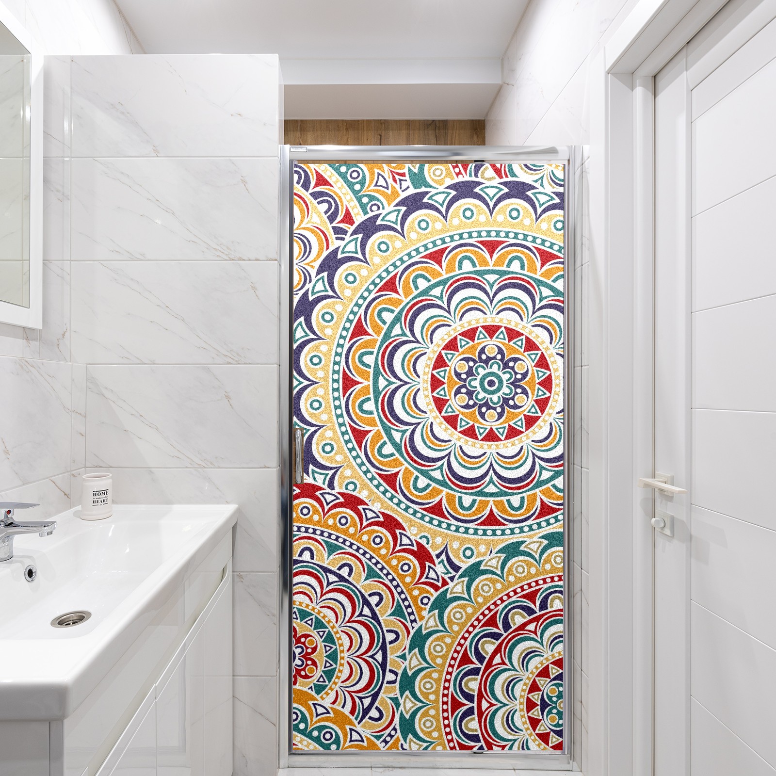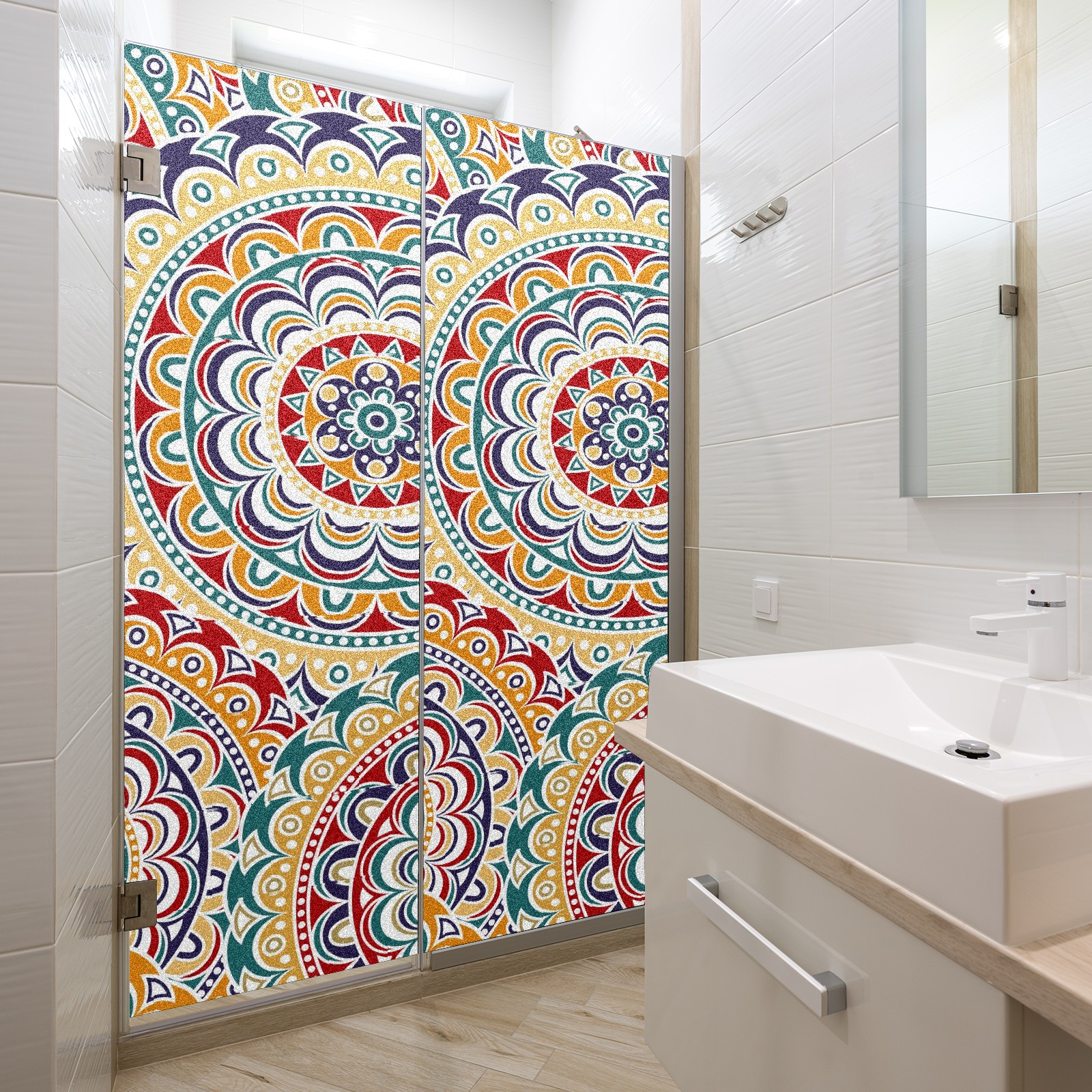 Static Cling Decorative Window Film Frosted Privacy Film Window Clings for Glass Windows No Glue Window Sticker for Bathroom Bedroom Office Boho Ethnic Mandala Floral