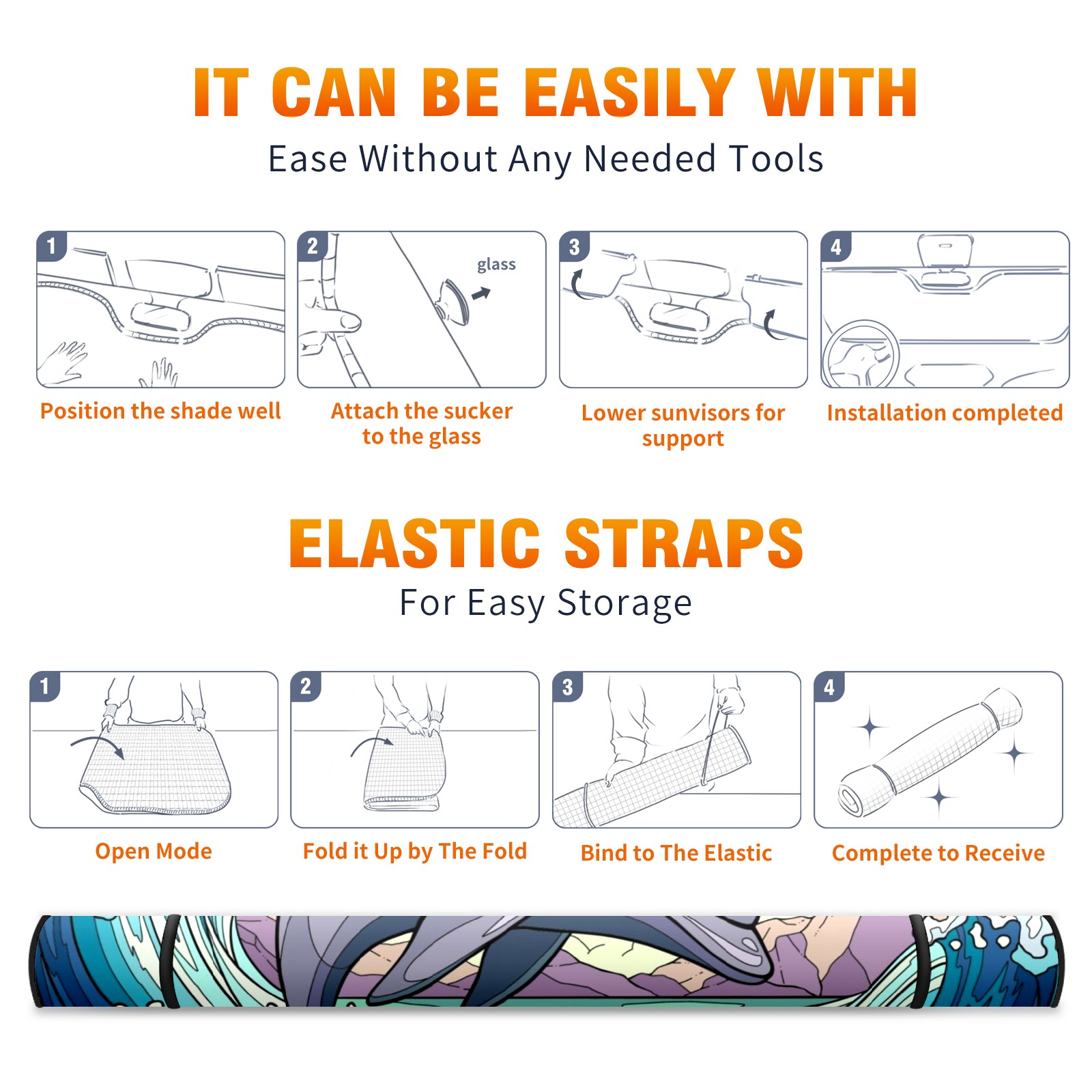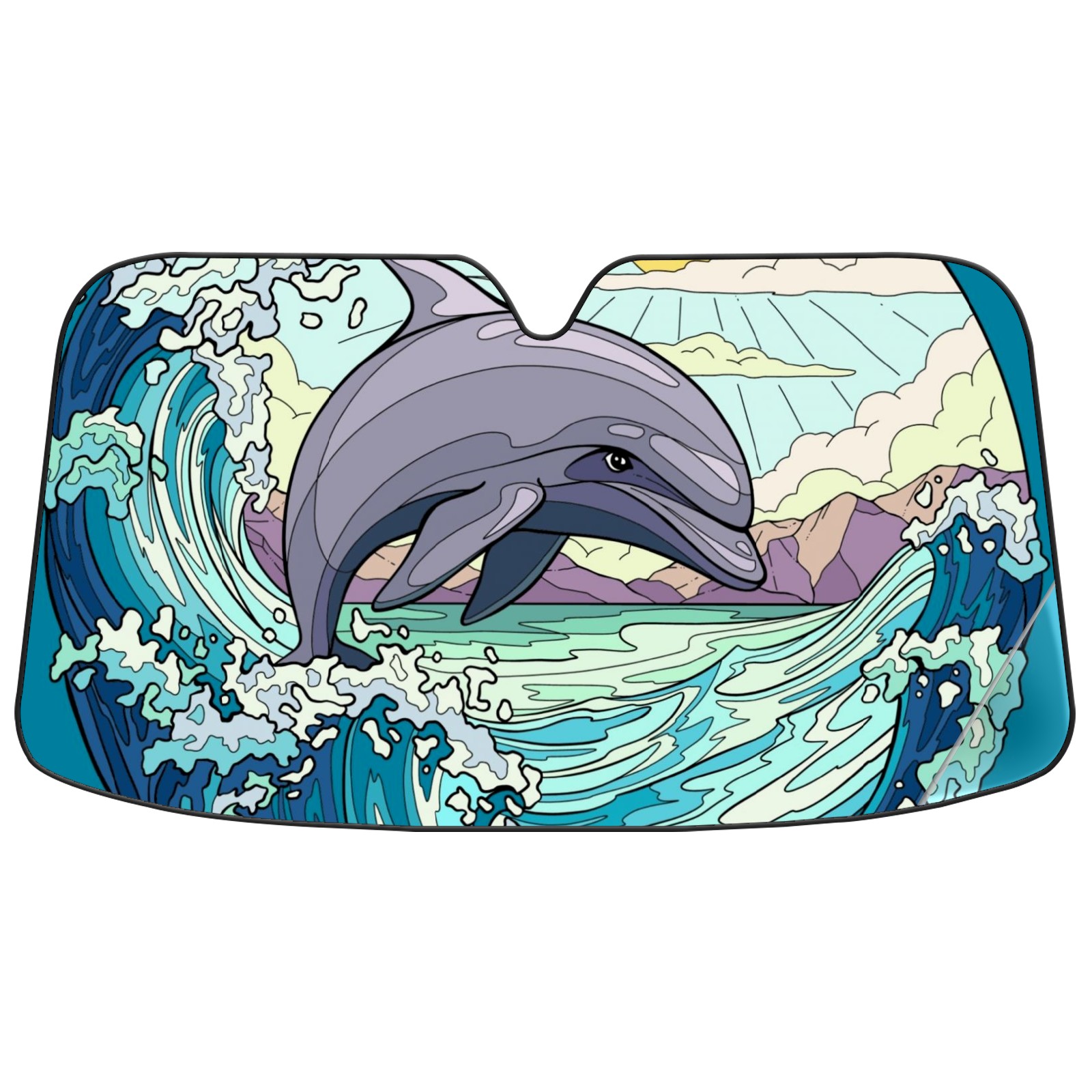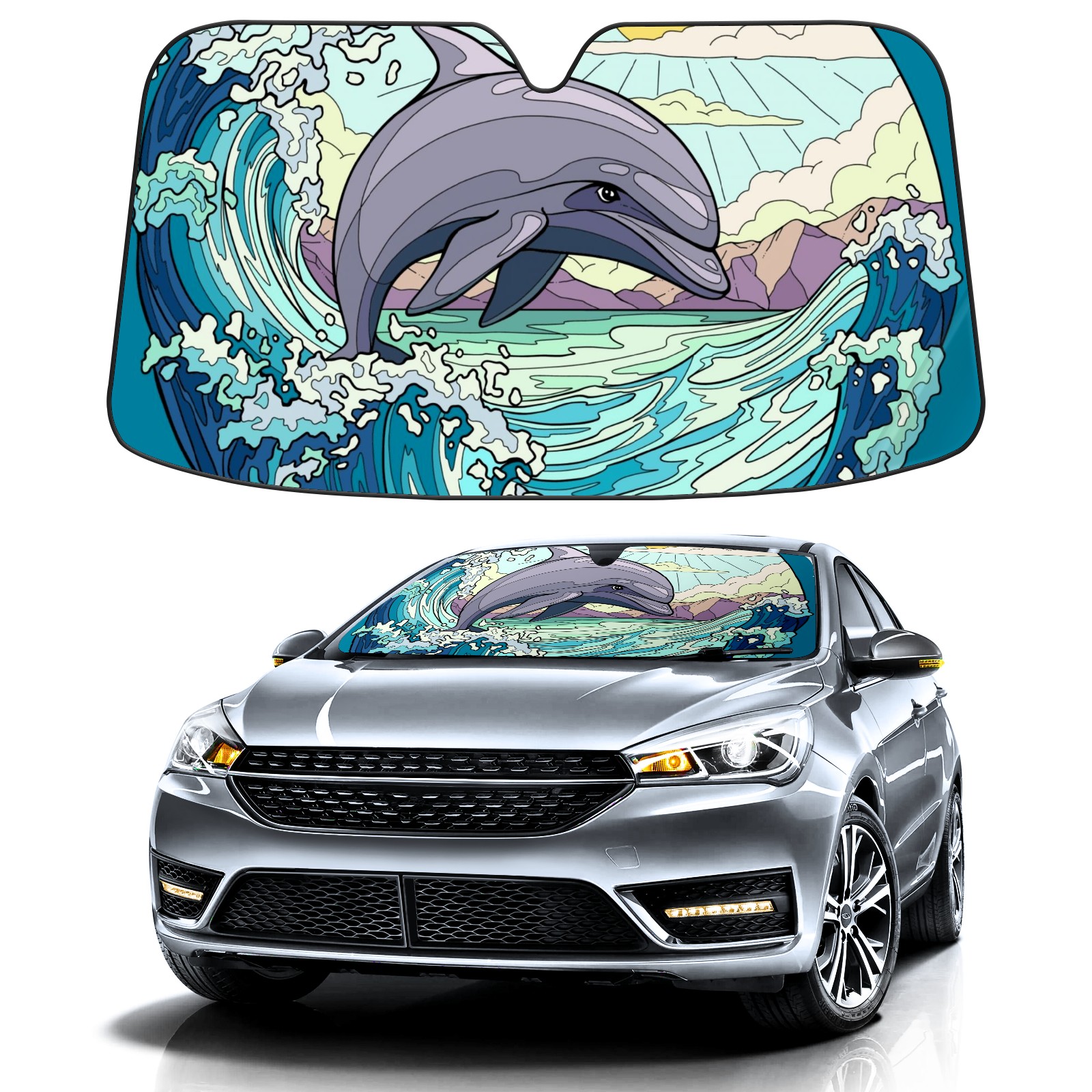 Car Windshield Sun Shade for Front Window Dolphin Waves Sun Foldable Vehicle Windshield Car Sun Visor Covers Automotive Window Protector Car Camping Privacy Sun Blocker