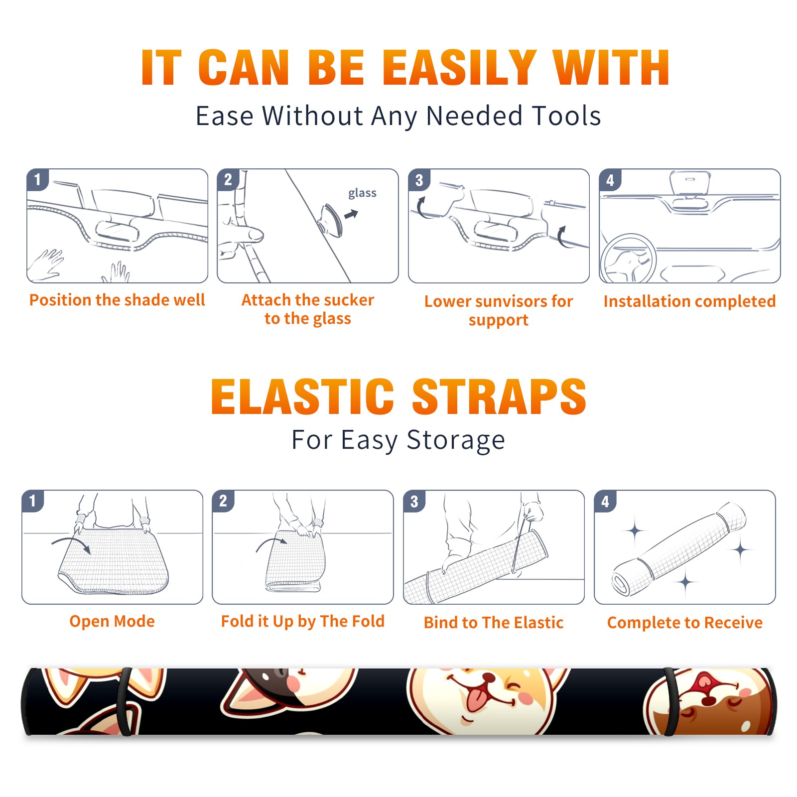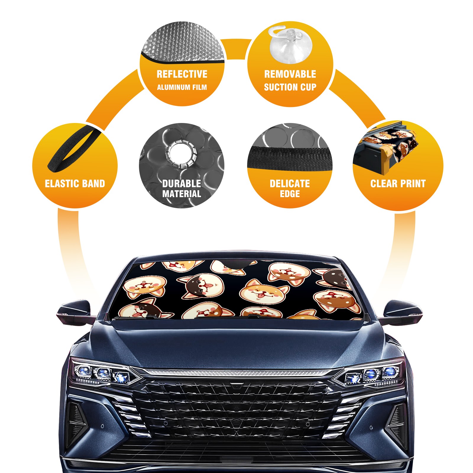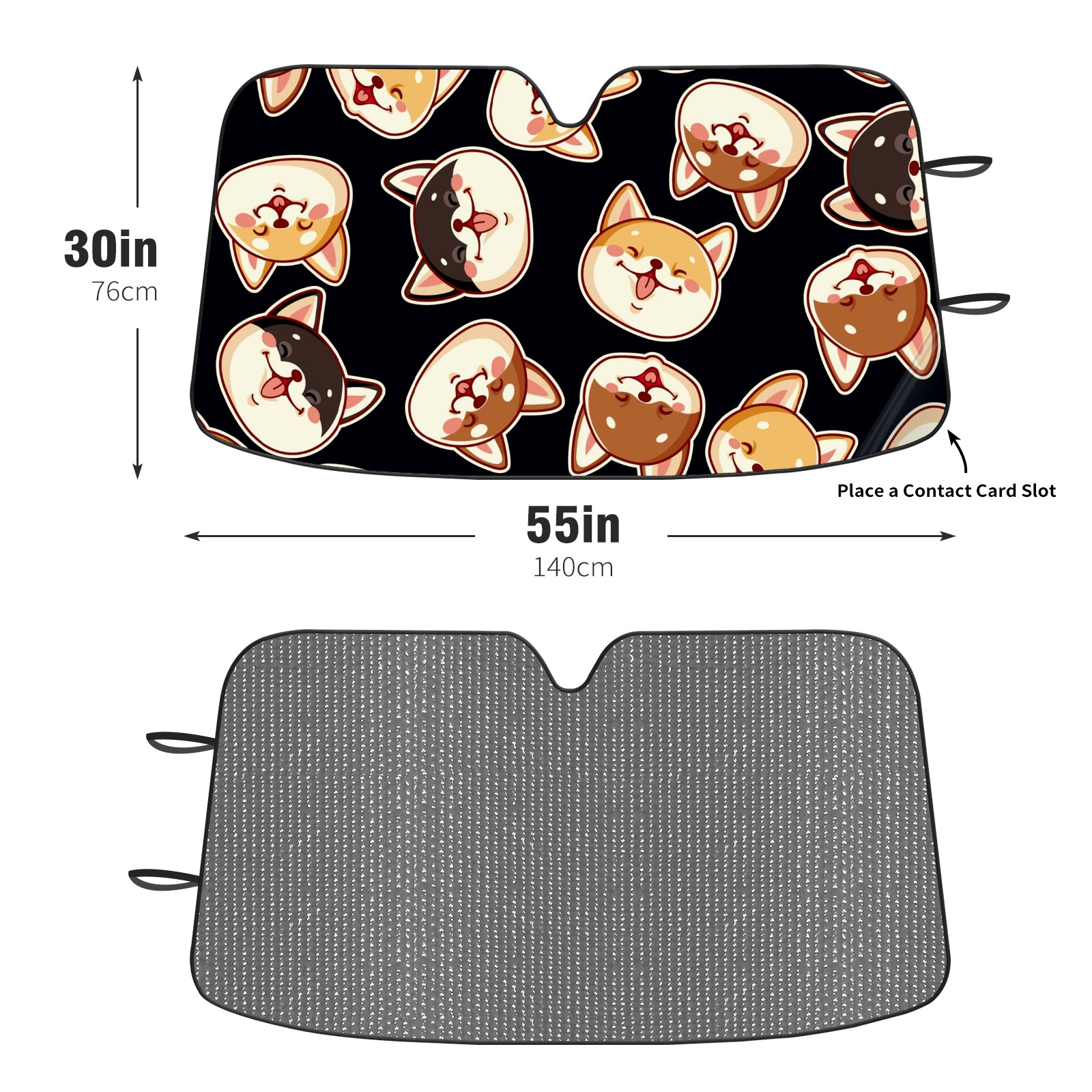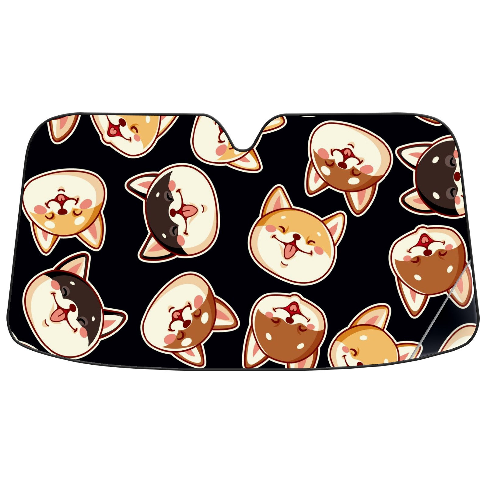 Car Windshield Sun Shade for Front Window Cute Shiba Inu Dog On Black Background Foldable Vehicle Windshield Car Sun Visor Covers Automotive Window Protector Car Camping Privacy Sun Blocker