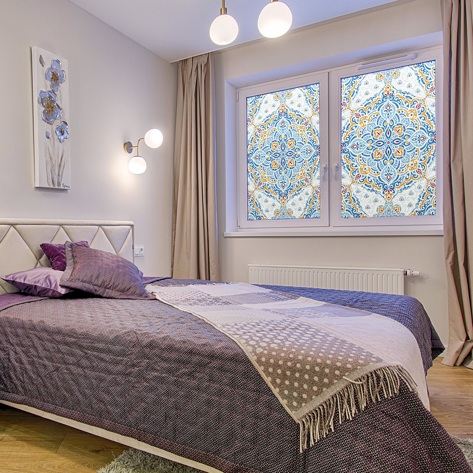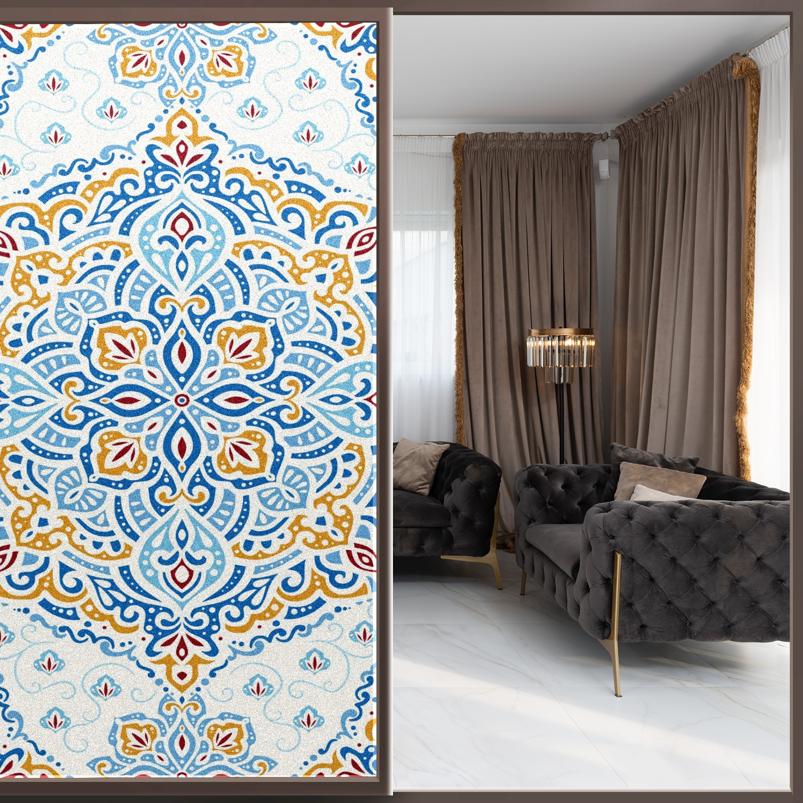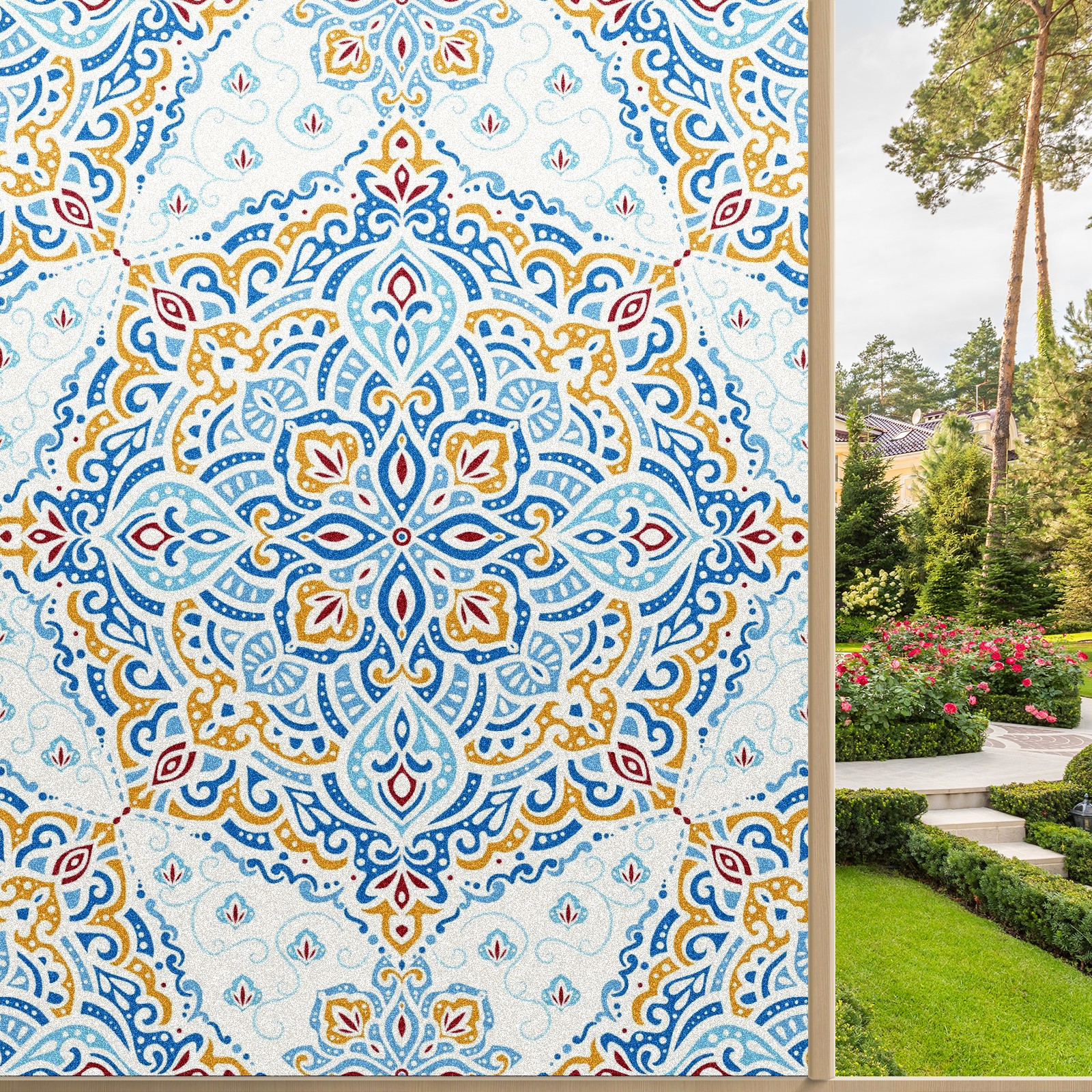 Static Cling Decorative Window Film Frosted Privacy Film Window Clings for Glass Windows No Glue Window Sticker for Bathroom Bedroom Office Blue Ethnic Boho Mandala Flower